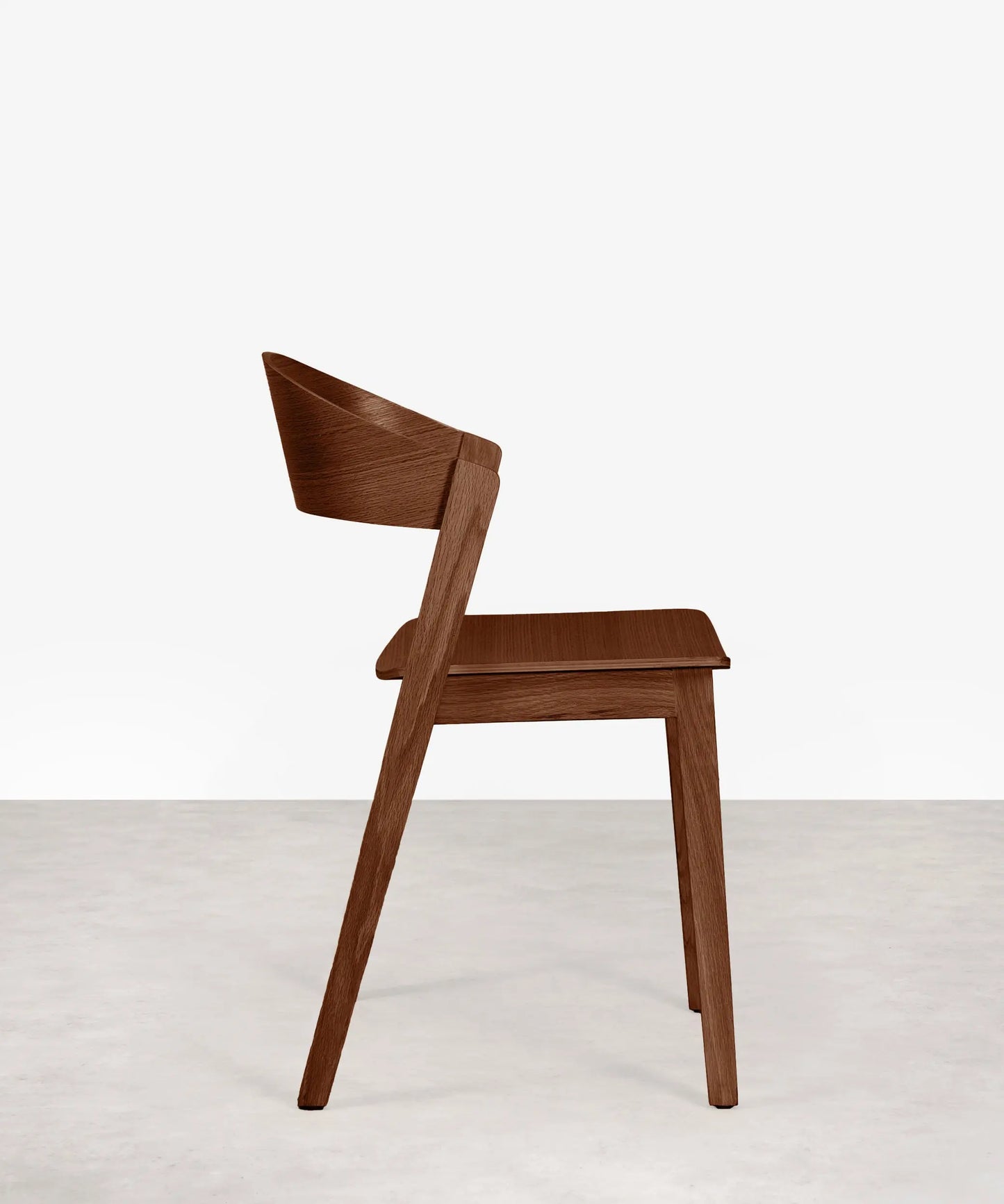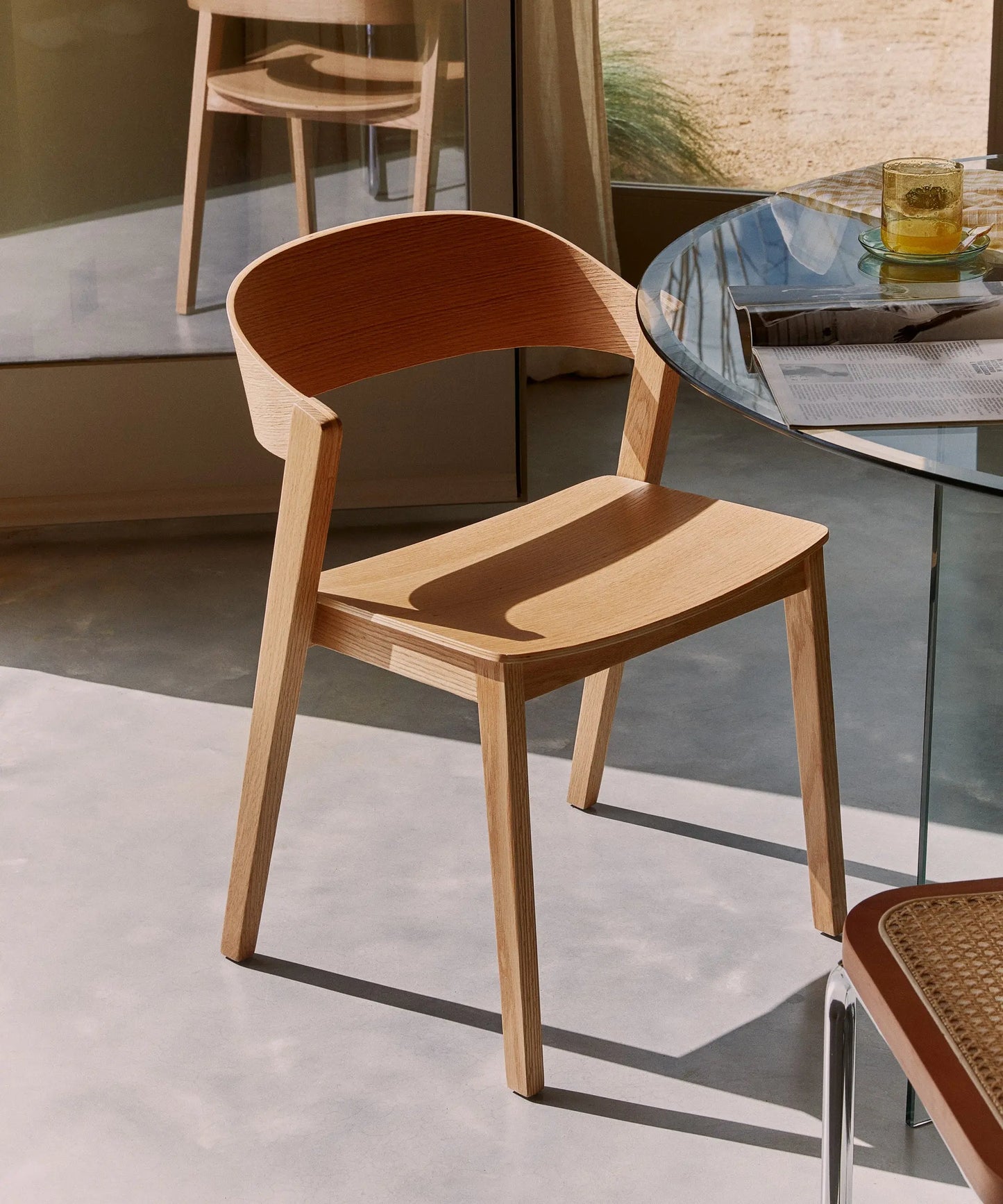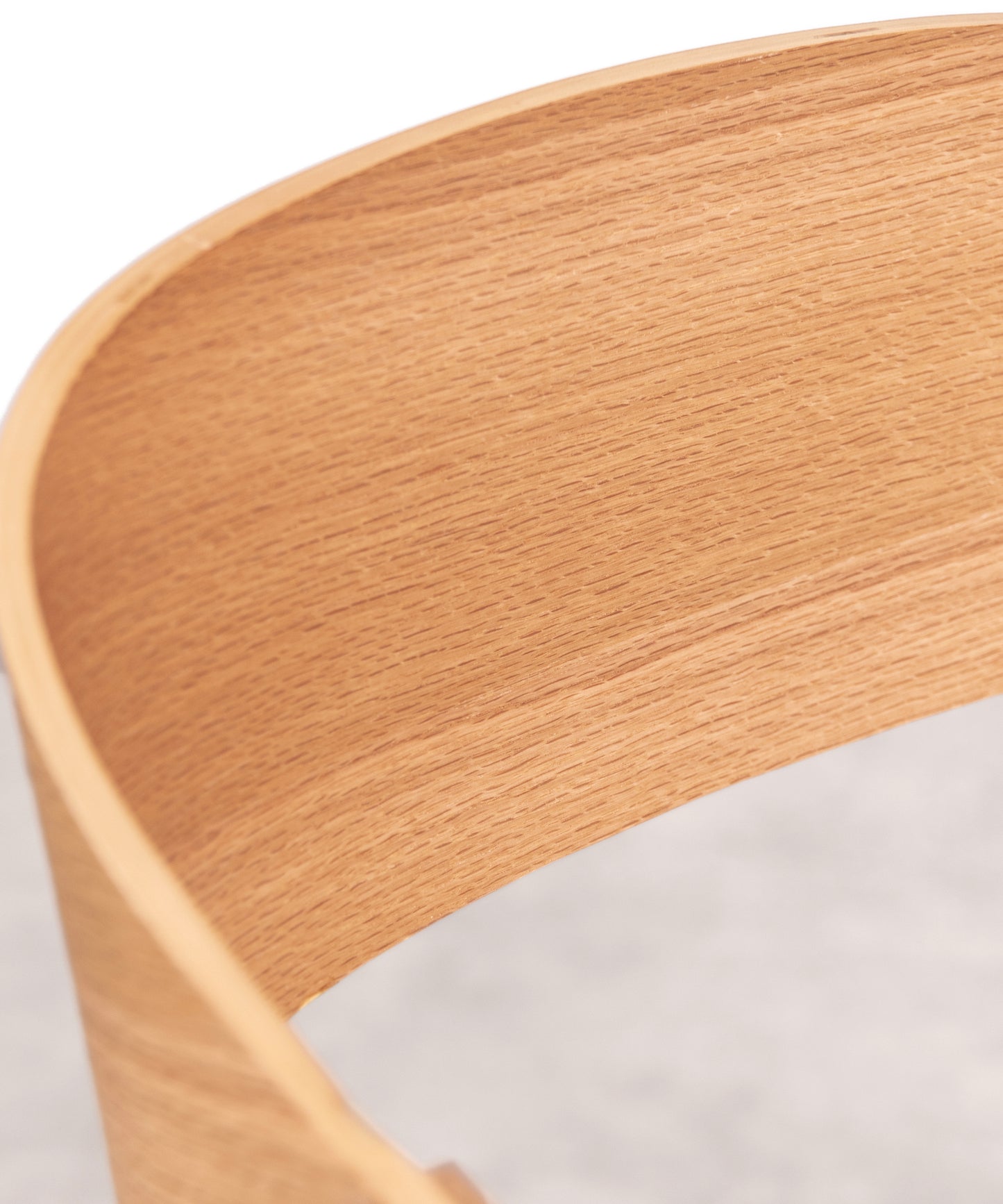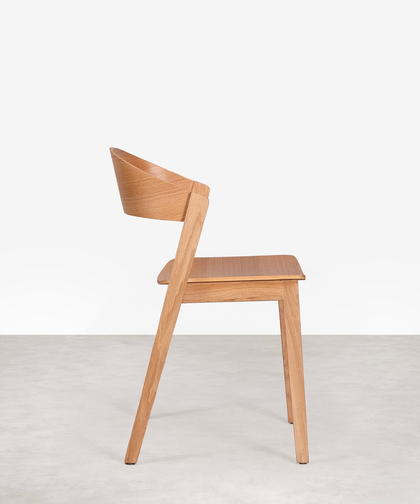 El asiento y respaldo de chapa de roble rojo natural ofrecen una superficie suave y cómoda, mientras que el marco de roble rojo natural proporciona una base sólida y duradera. Estas características se combinan para crear una silla que no solo es hermosa a la vista, sino también cómoda y resistente.