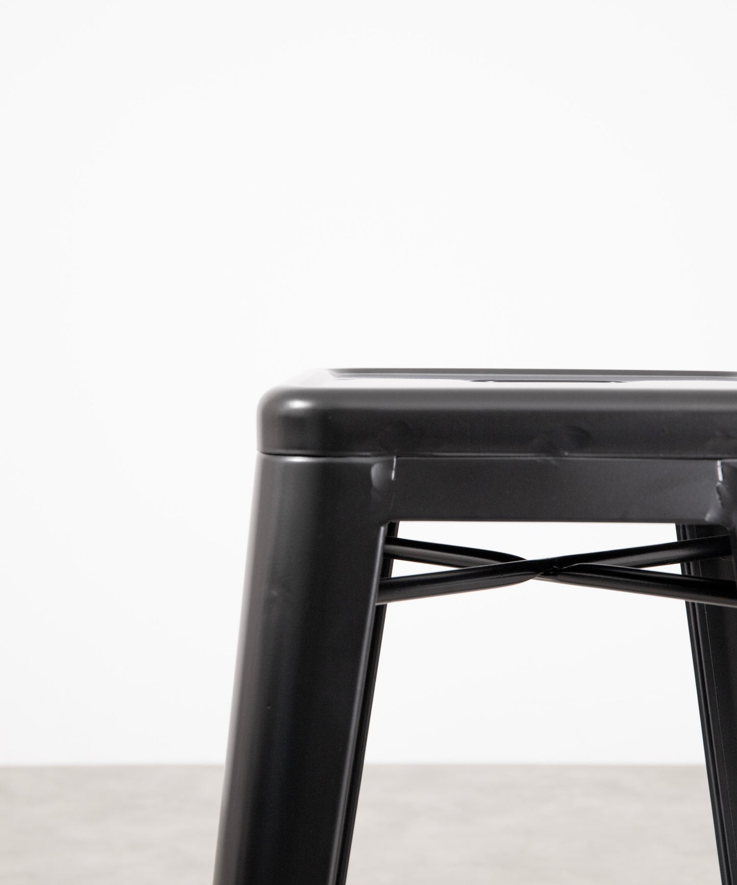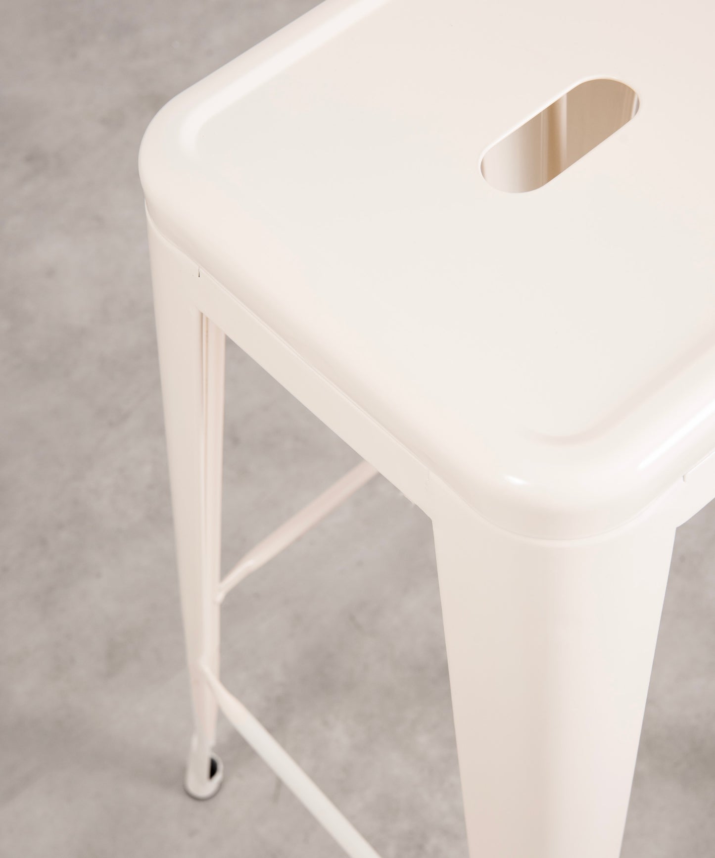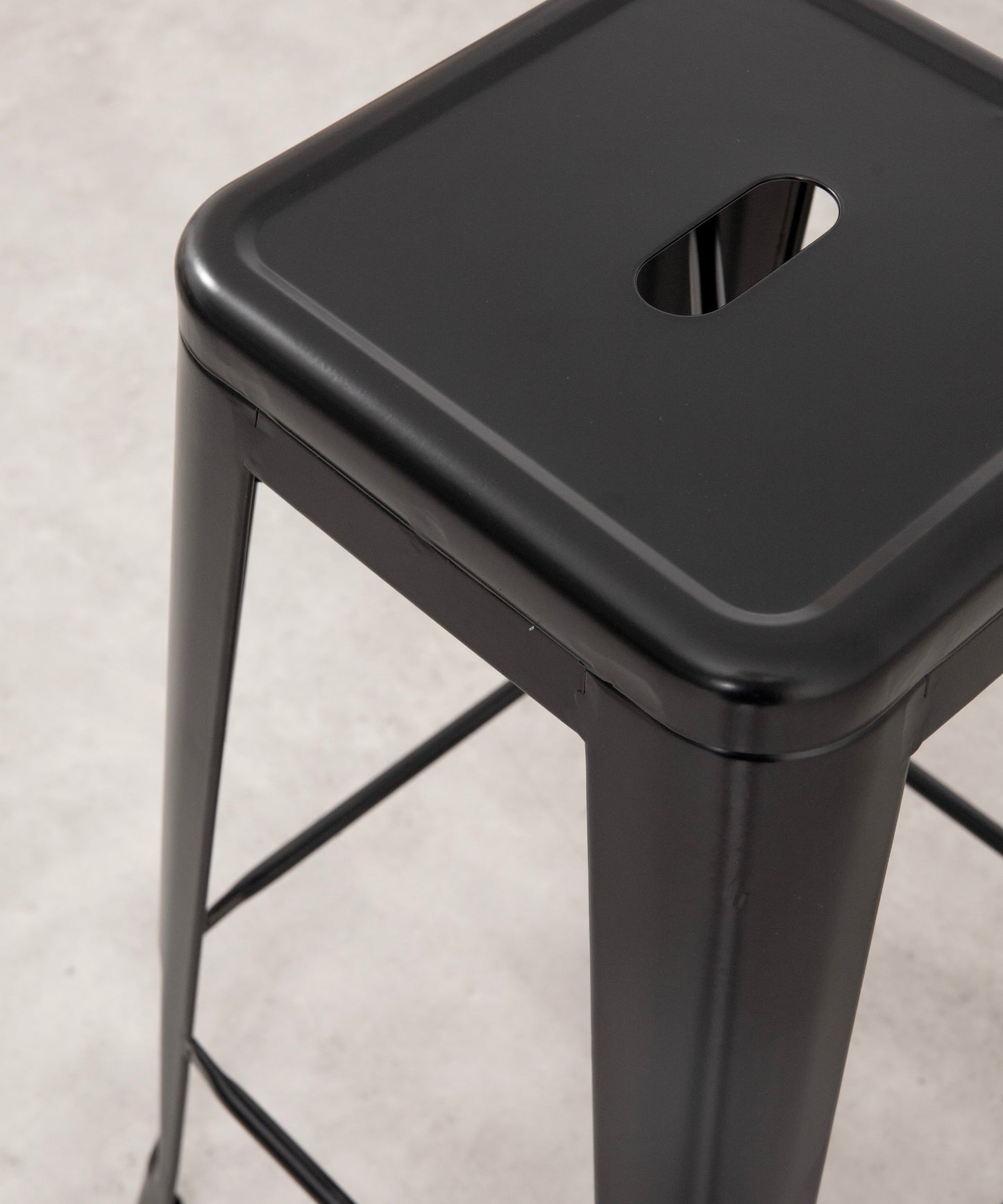 Inspirado en la emblemática Silla Tolix, el Taburete Tolik presenta un diseño simple pero funcional, con su característica silueta estilizada, asiento y respaldo perforados.