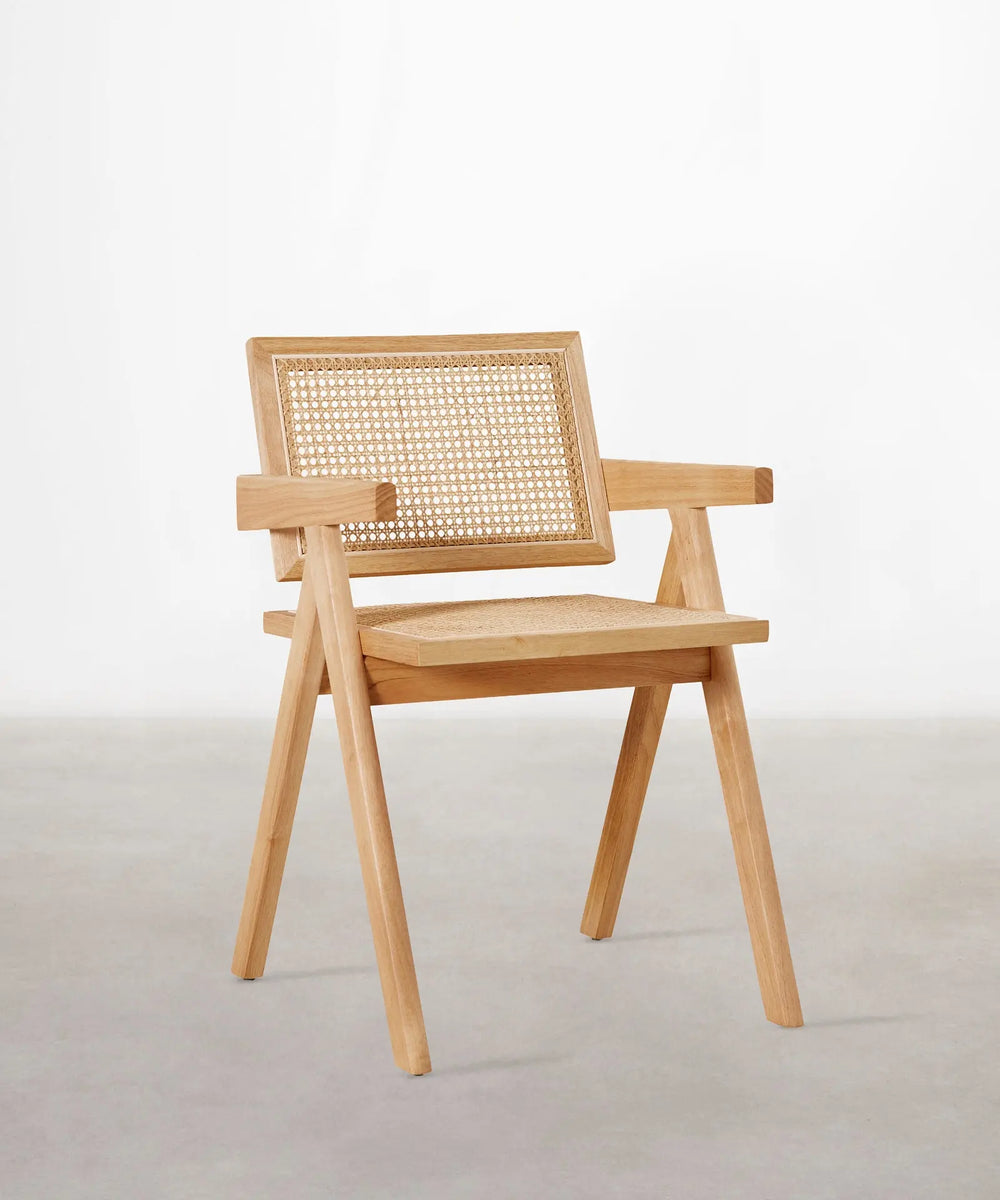 Esszimmerstuhl mit Armlehnen aus Holz und Rattan Chiara Arms