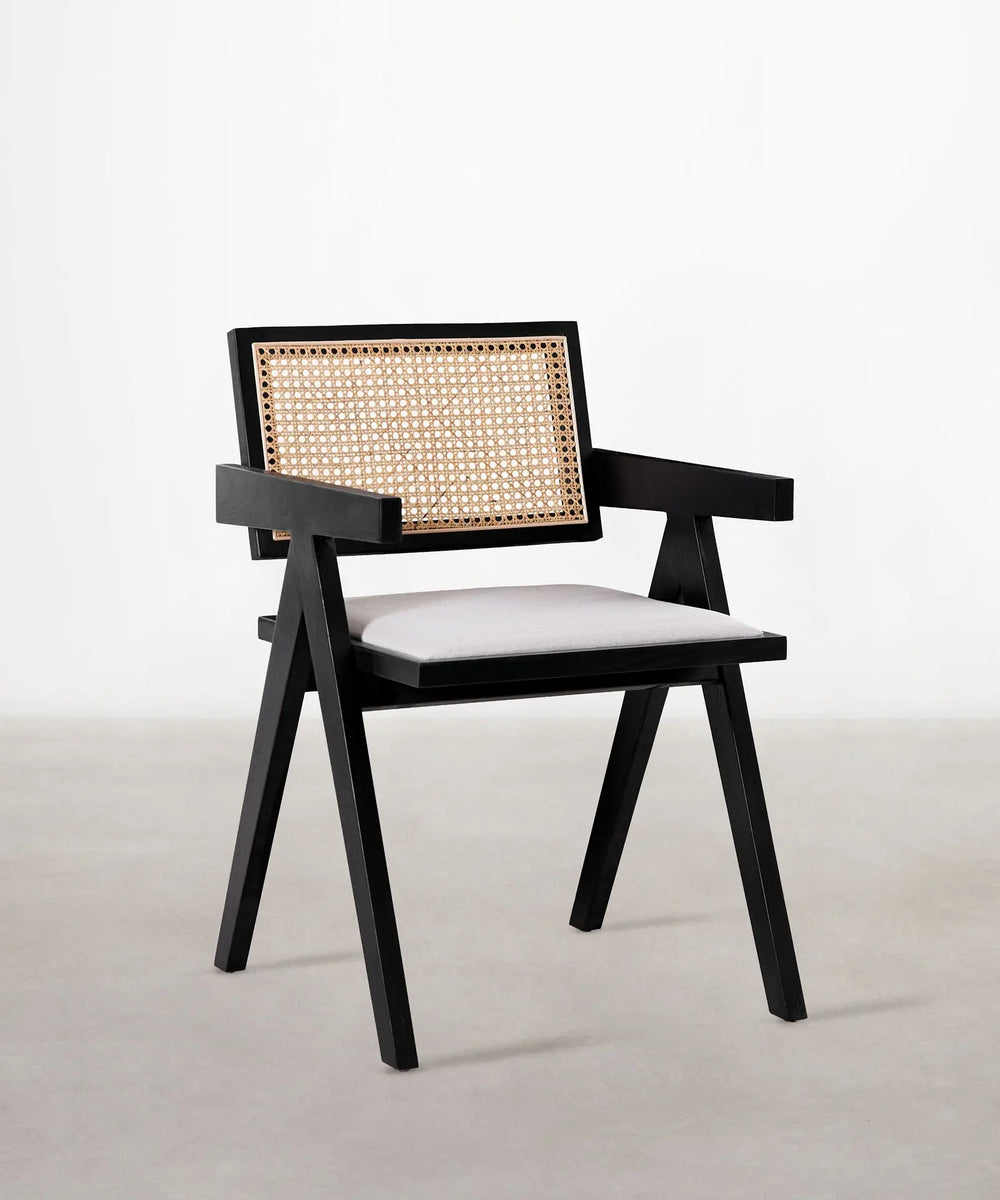 Esszimmerstuhl mit Armlehnen aus Holz und Polster Pauline Arms