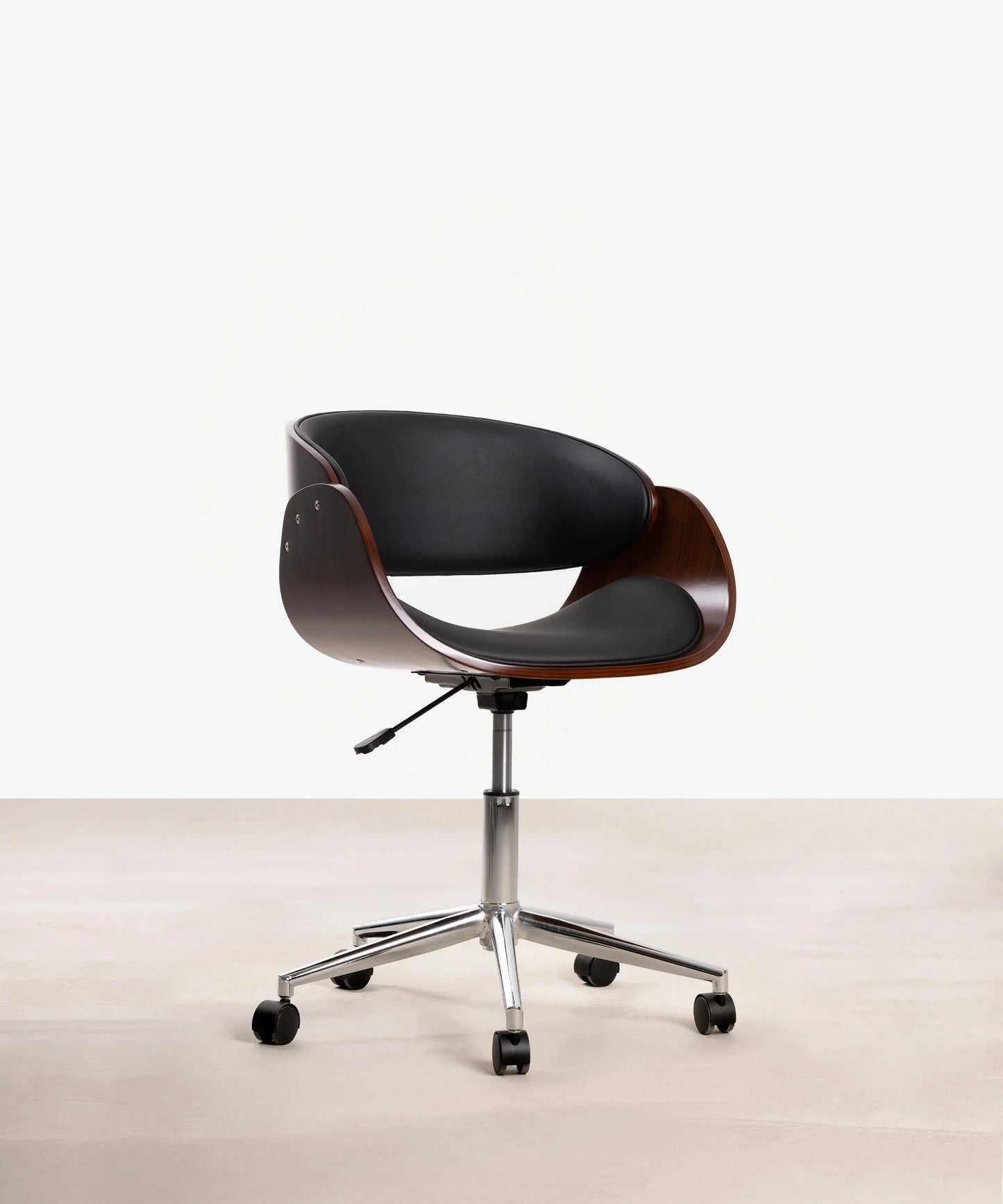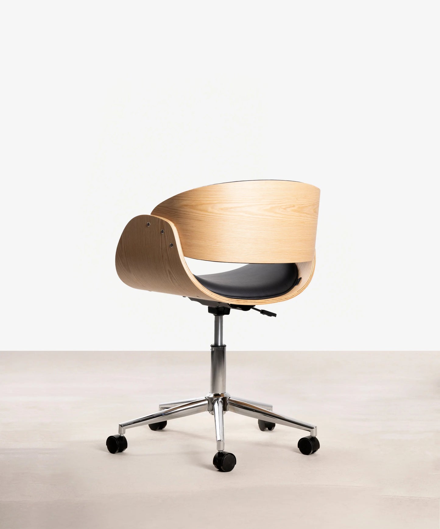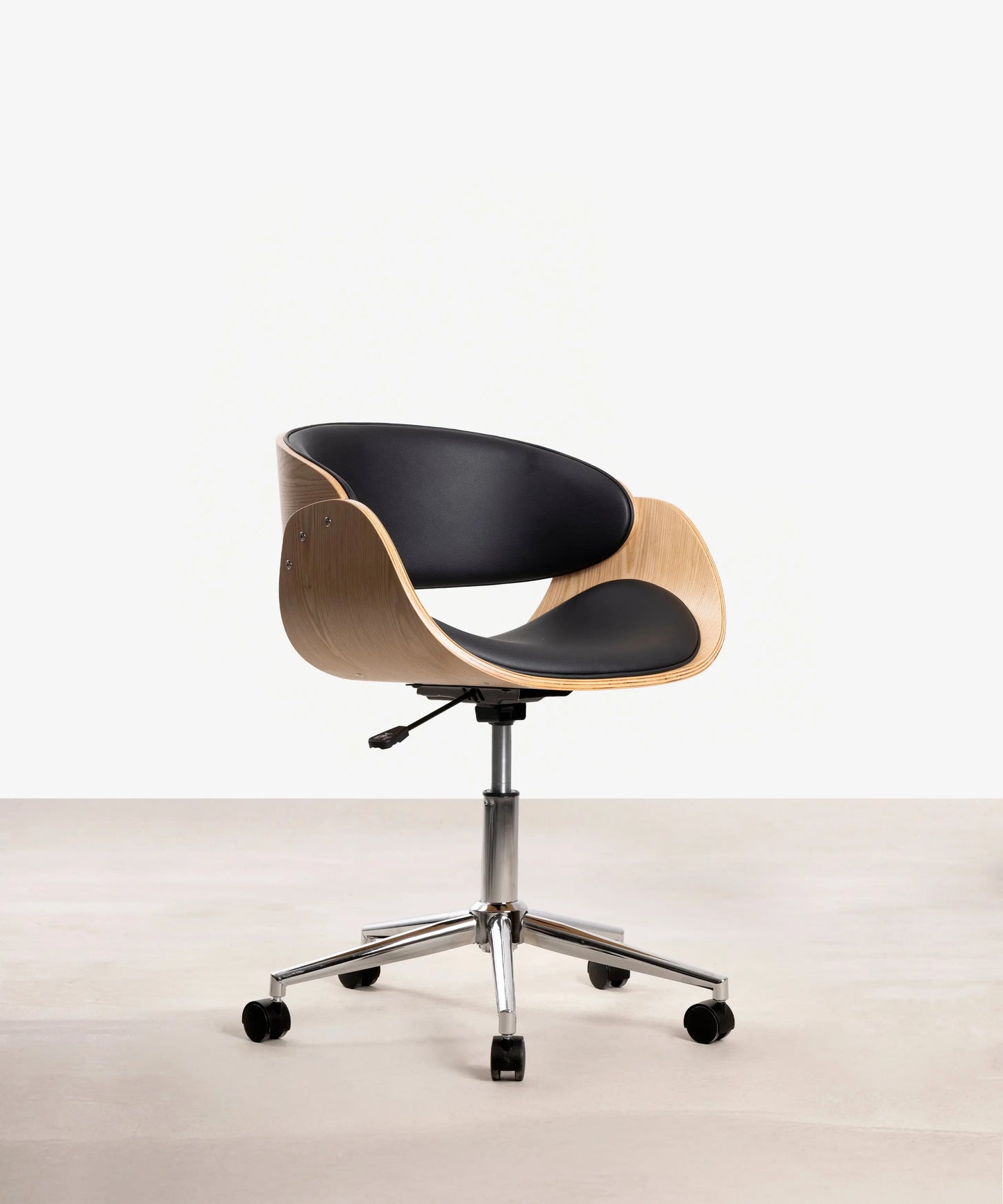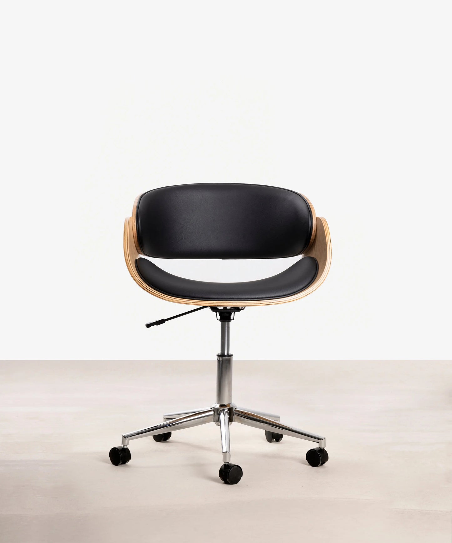 Schreibtischstuhl aus Kunstleder und Holz Debbie