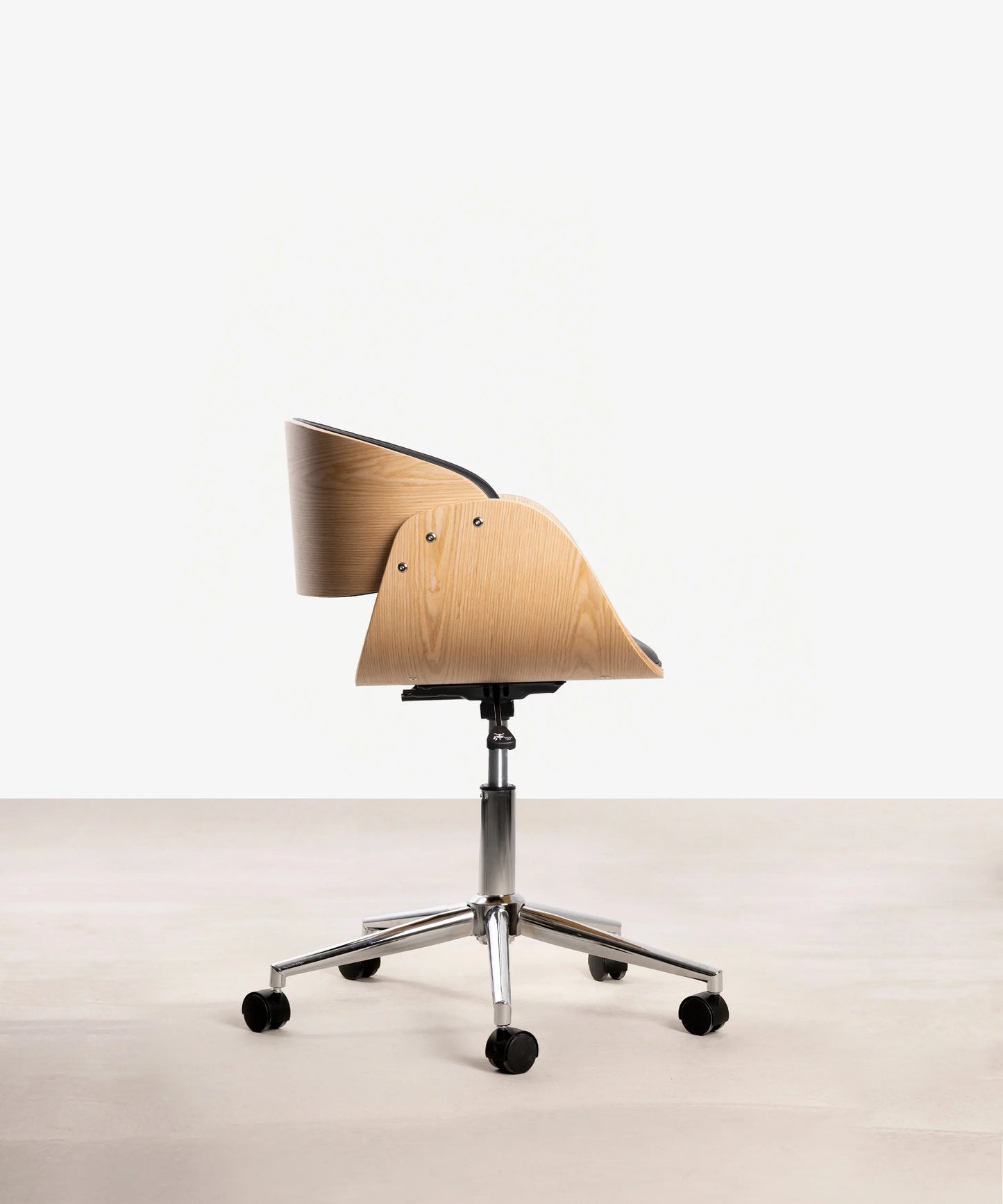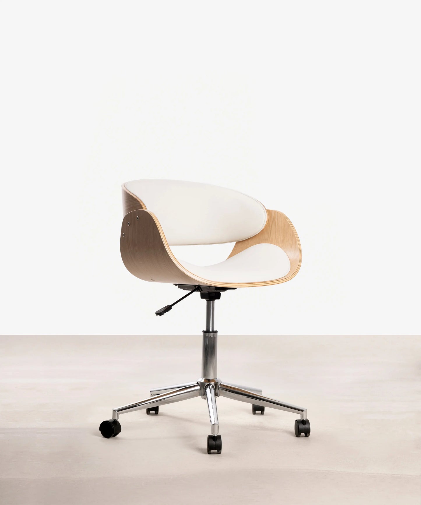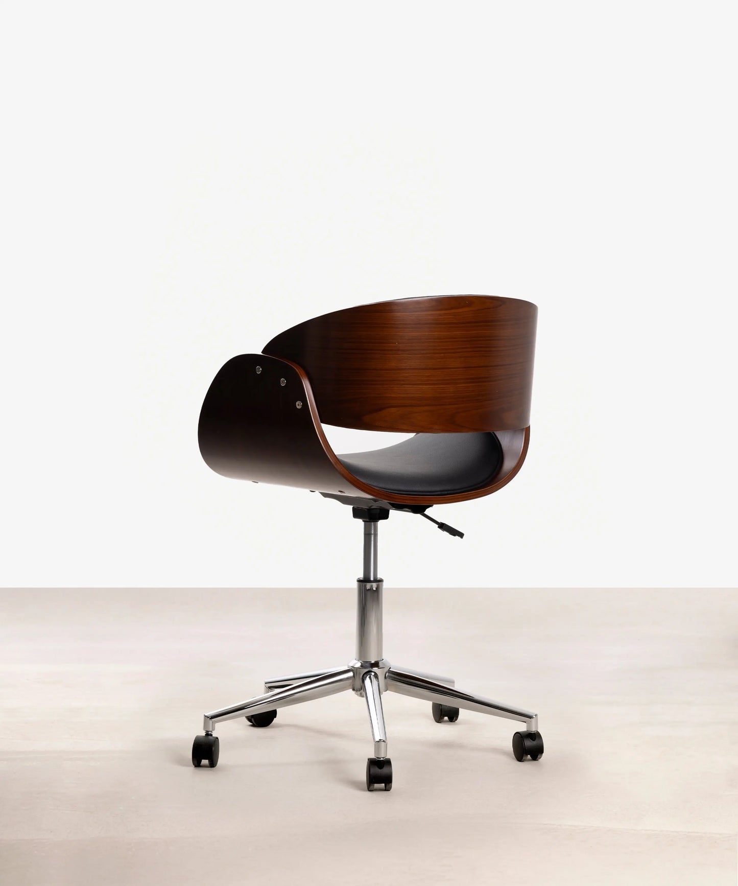 Schreibtischstuhl aus Kunstleder und Holz Debbie