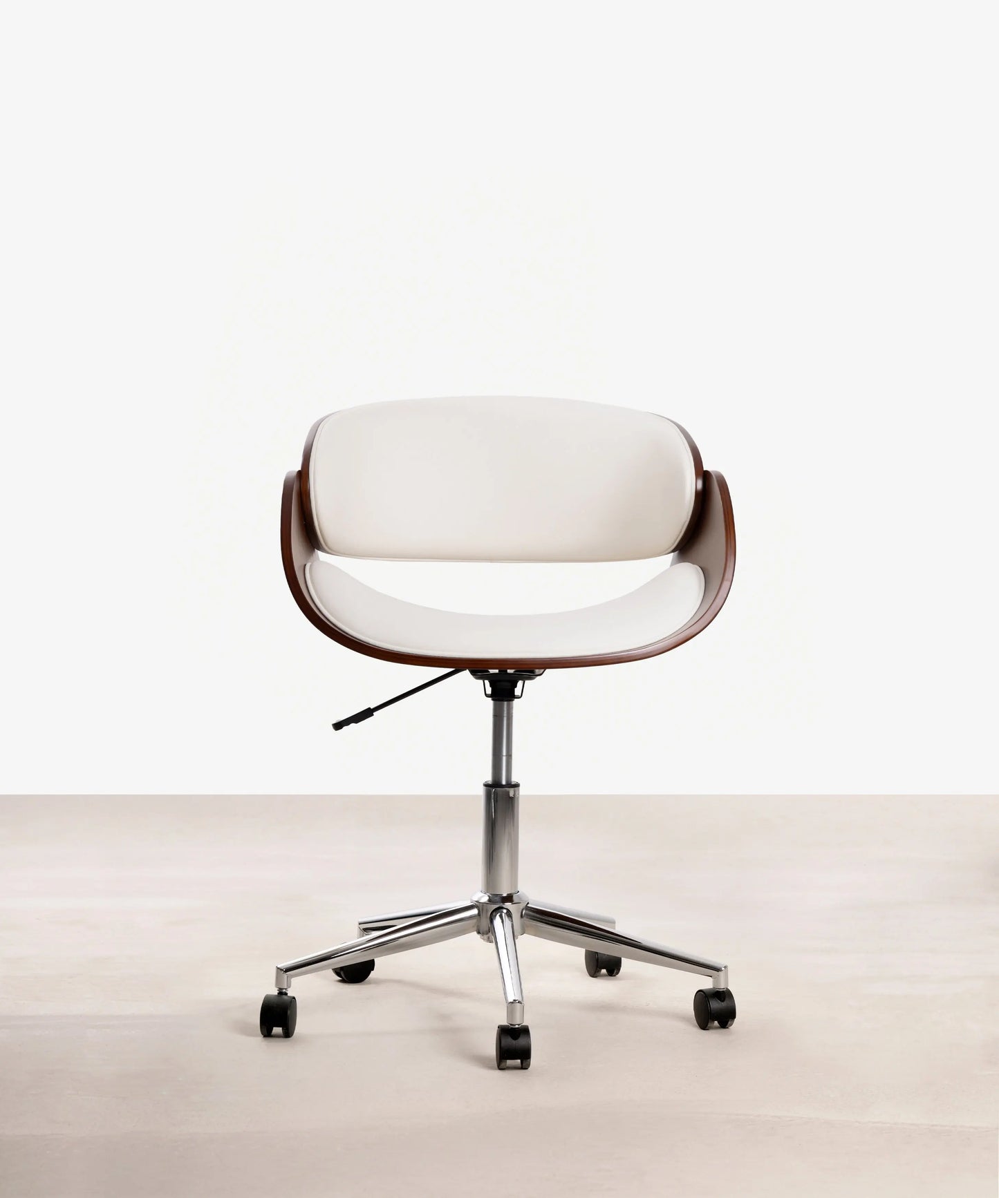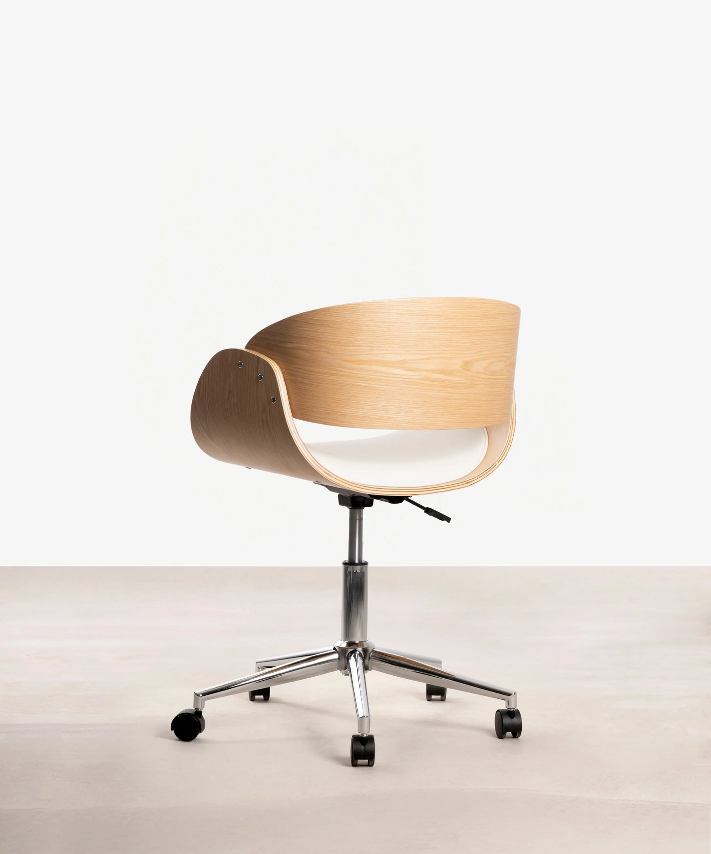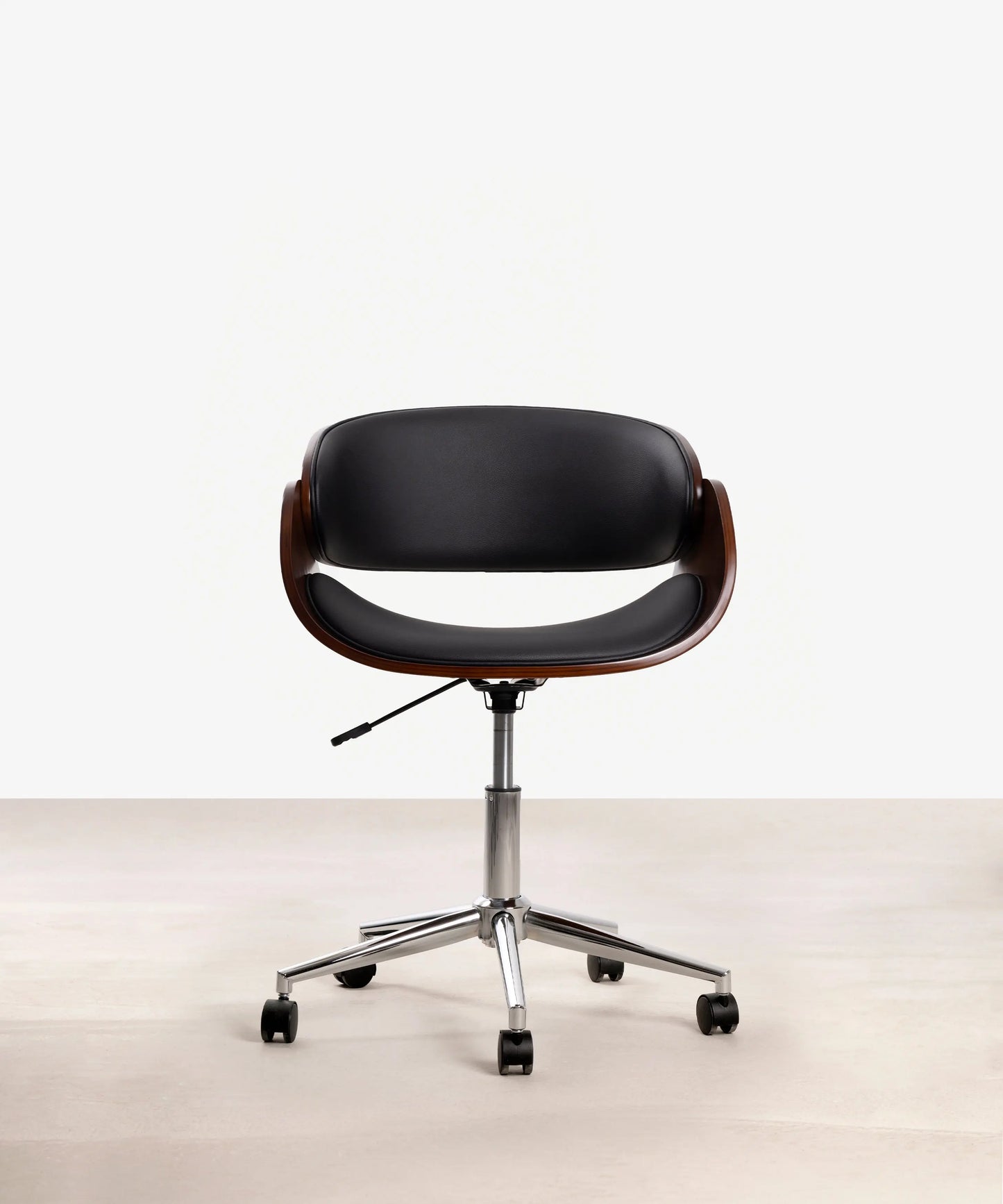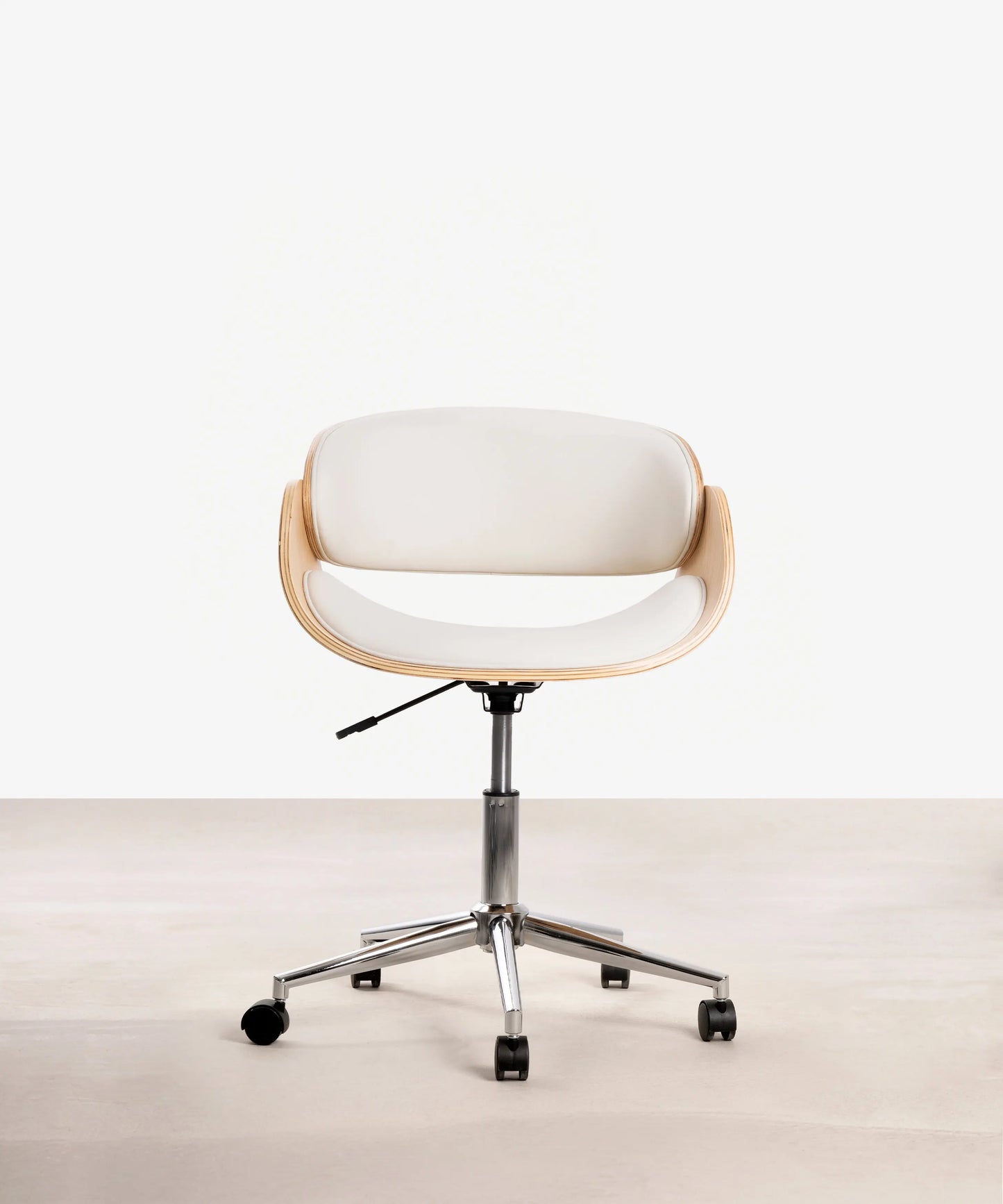 Schreibtischstuhl aus Kunstleder und Holz Debbie