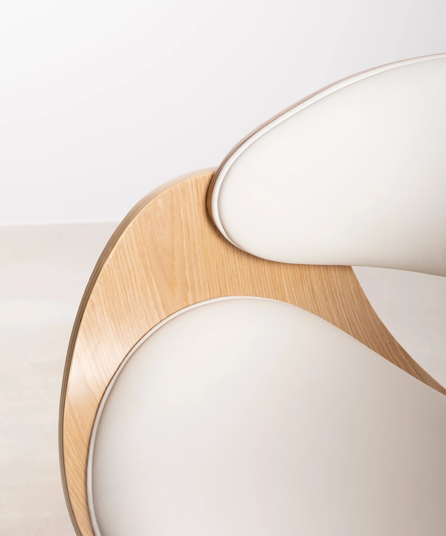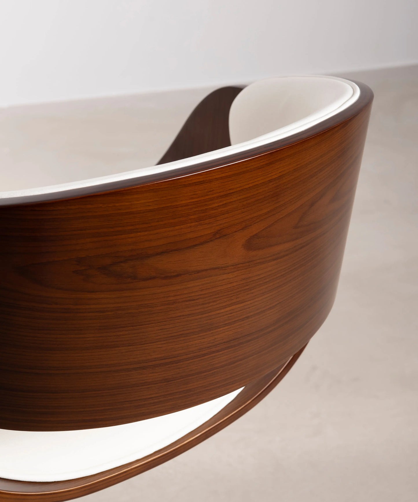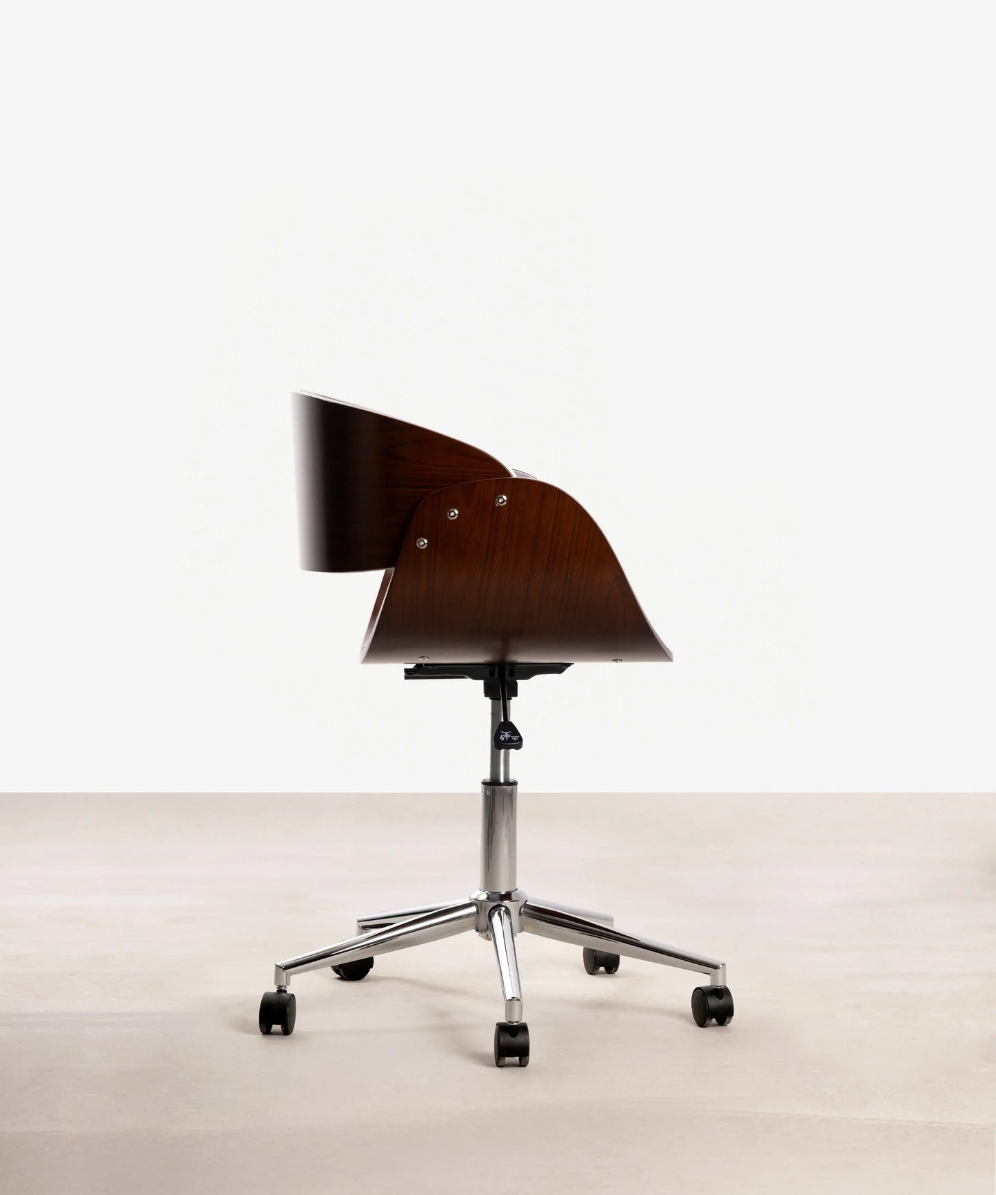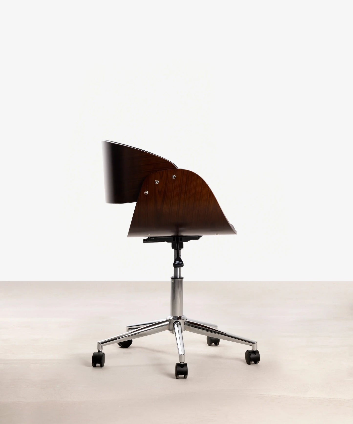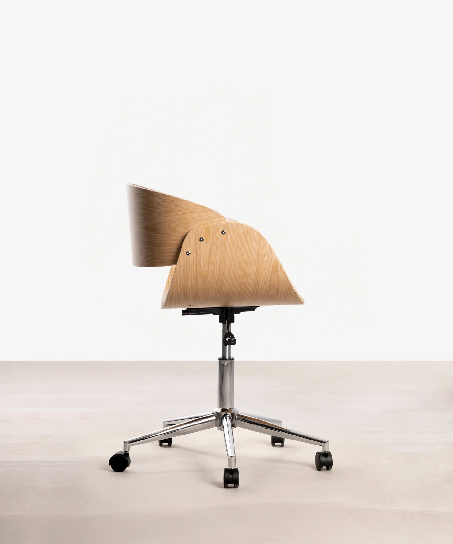 Der Debbie Bürostuhl besteht aus einer natürlichen Holzstruktur, deren sichtbare Maserung ihm ein warmes und natürliches Aussehen verleiht. Sein skandinavischer und Vintage-Stil führt zu atypischen und raffinierten Kurven.
