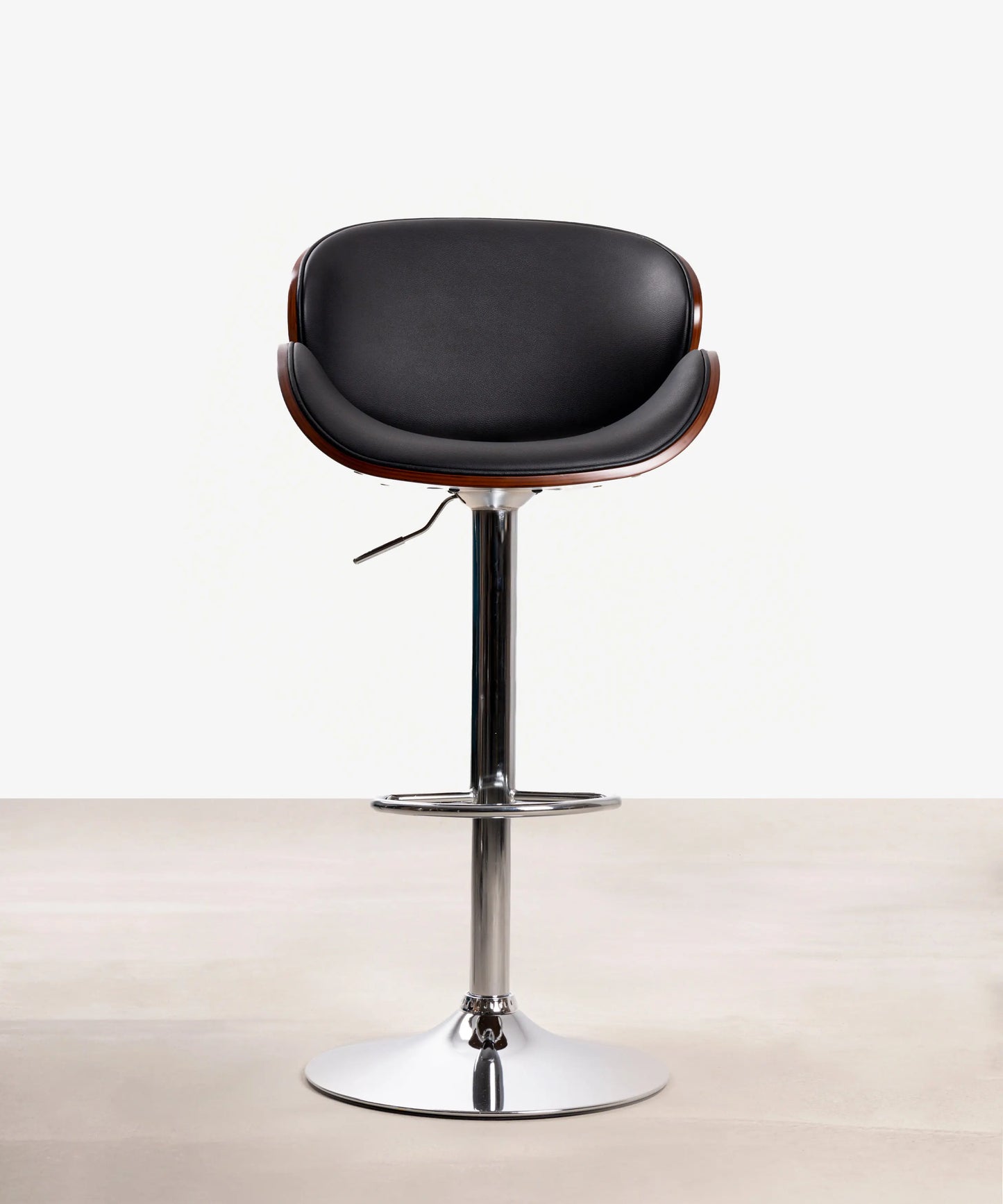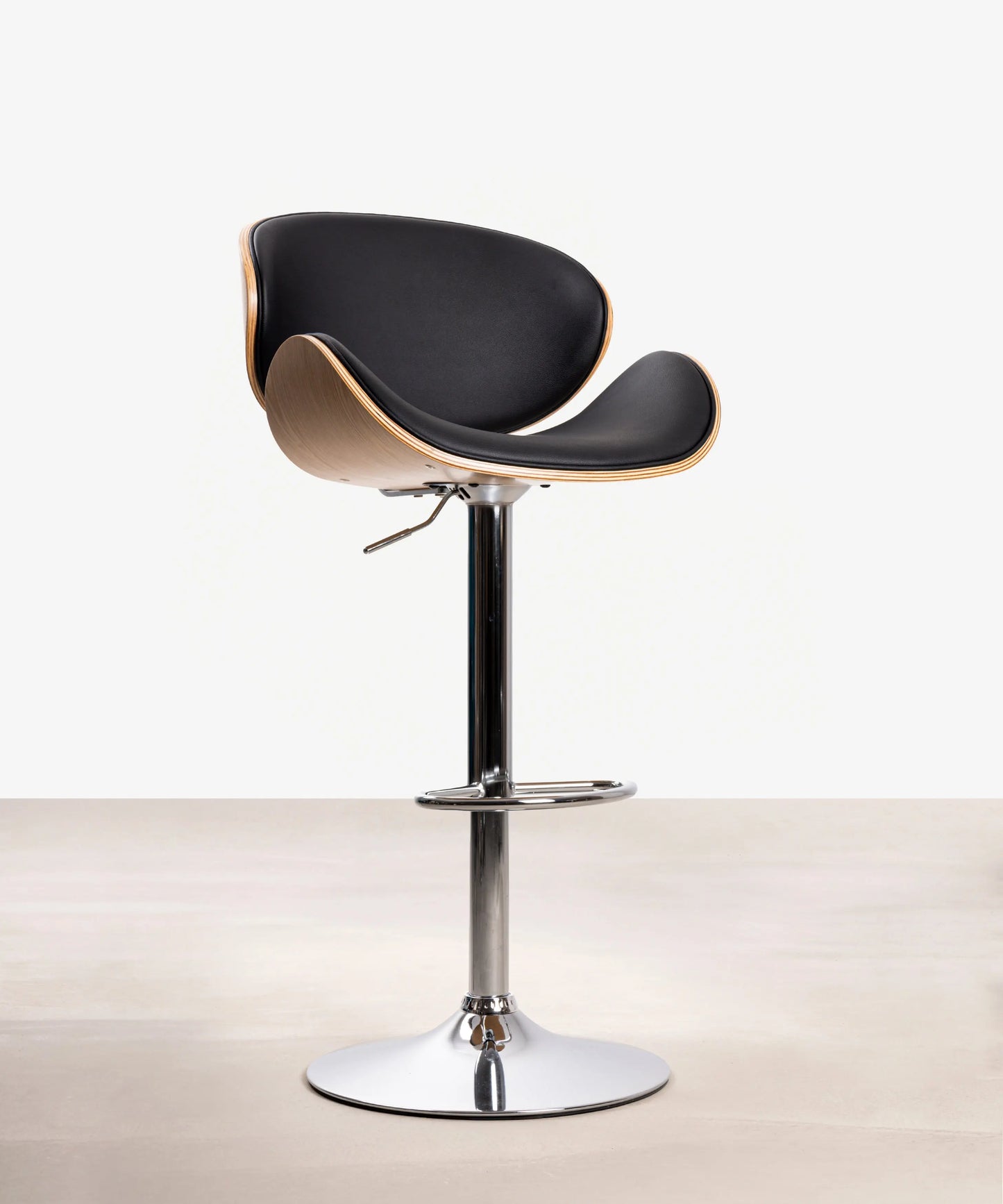Verstellbarer Hocker aus Holz und Kunstleder Shelley