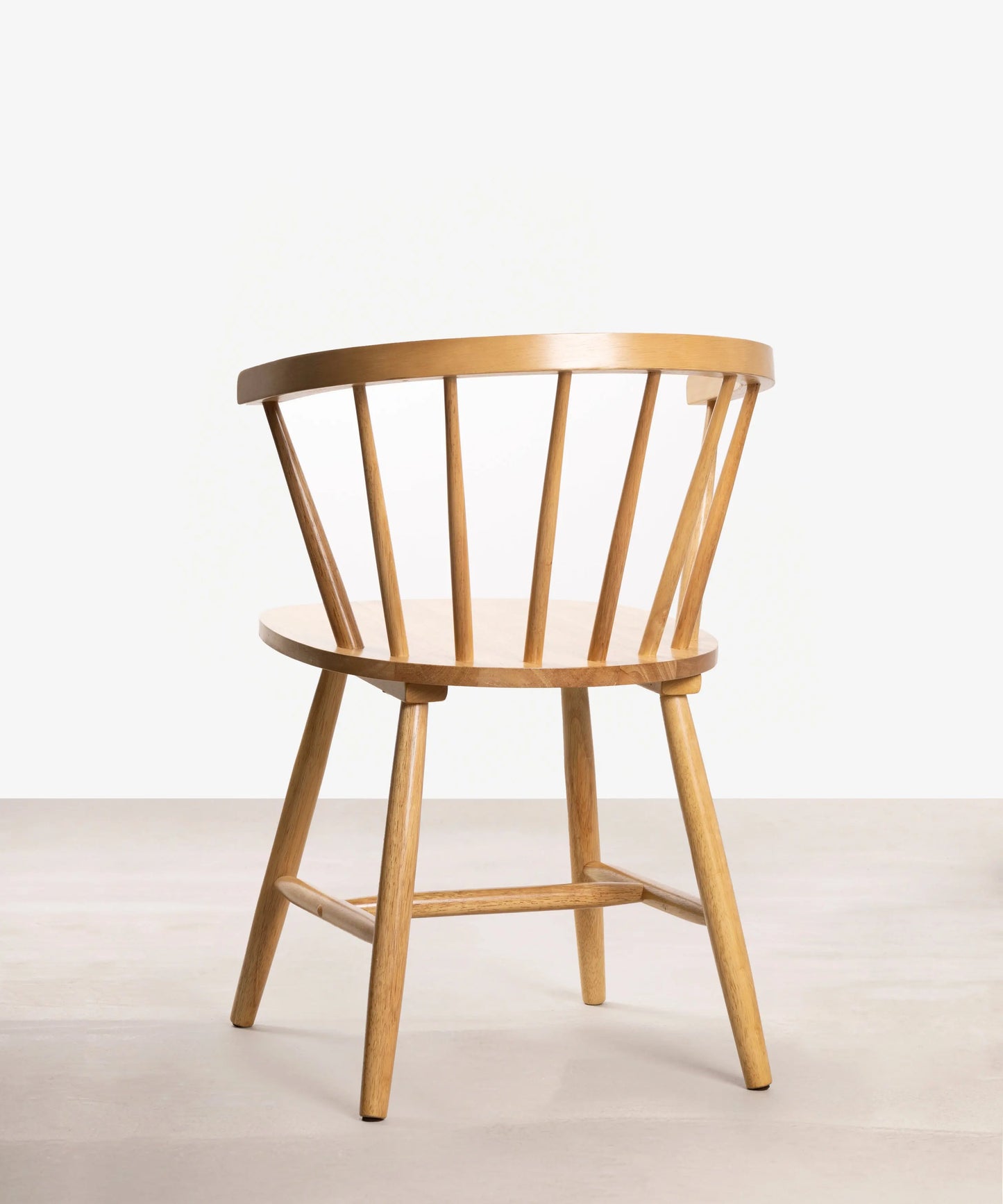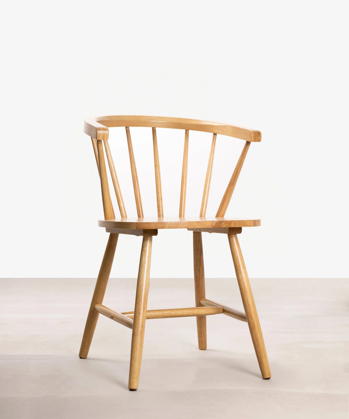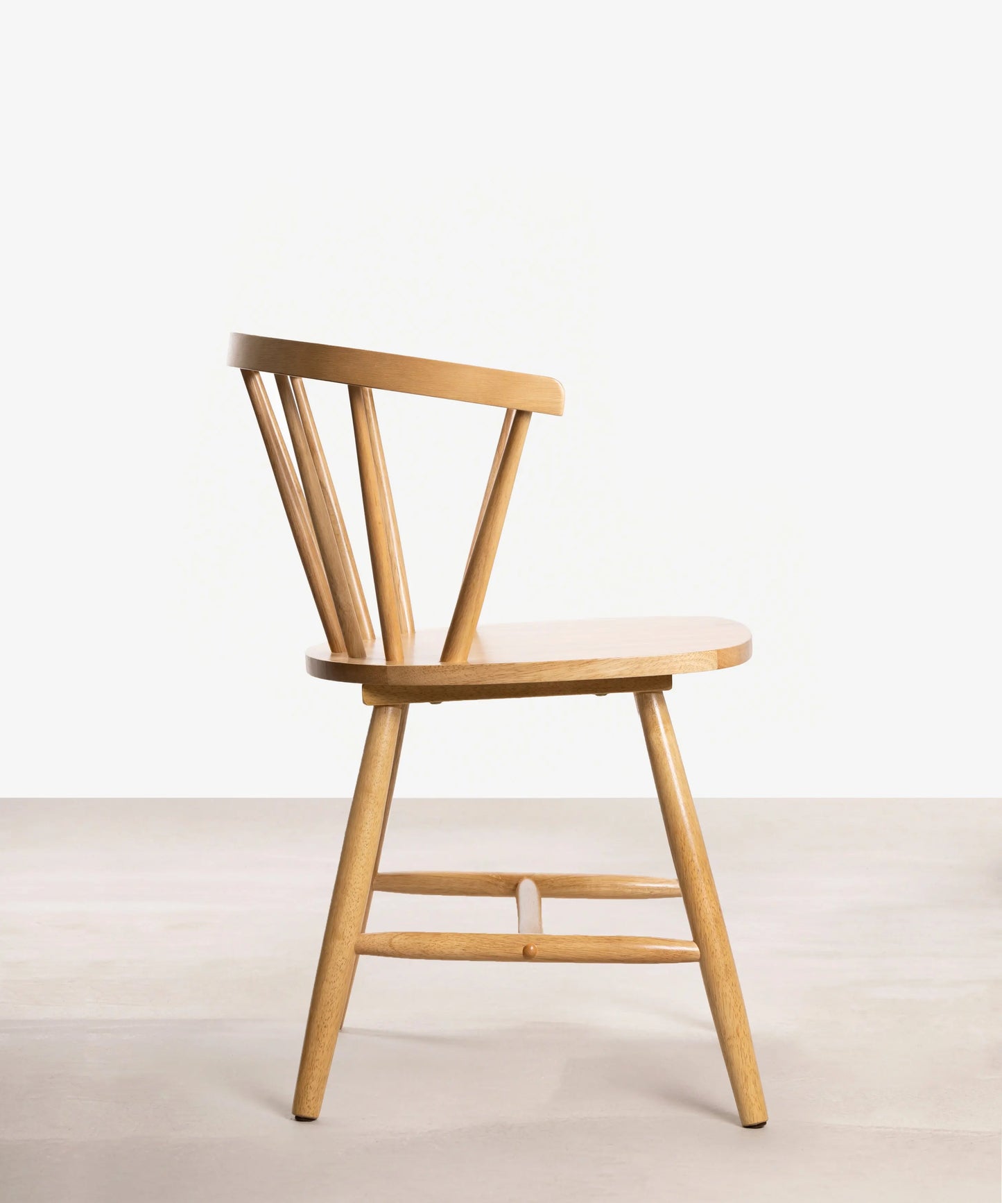 Die Sena Arms Stühle mit ihrem unverwechselbaren Retro-Design werden zweifellos die Hauptakteure in Ihrem Esszimmer sein. Ihre Rückenlehne mit Stäben und ihre charakteristischen Beine erinnern an den nordischen Stil der 50er Jahre. Die Eichenholzstruktur ist leicht und elegant, mit jeder Stange fein handgeschnitzt, was den authentischen Charakter dieser Stühle hervorhebt.