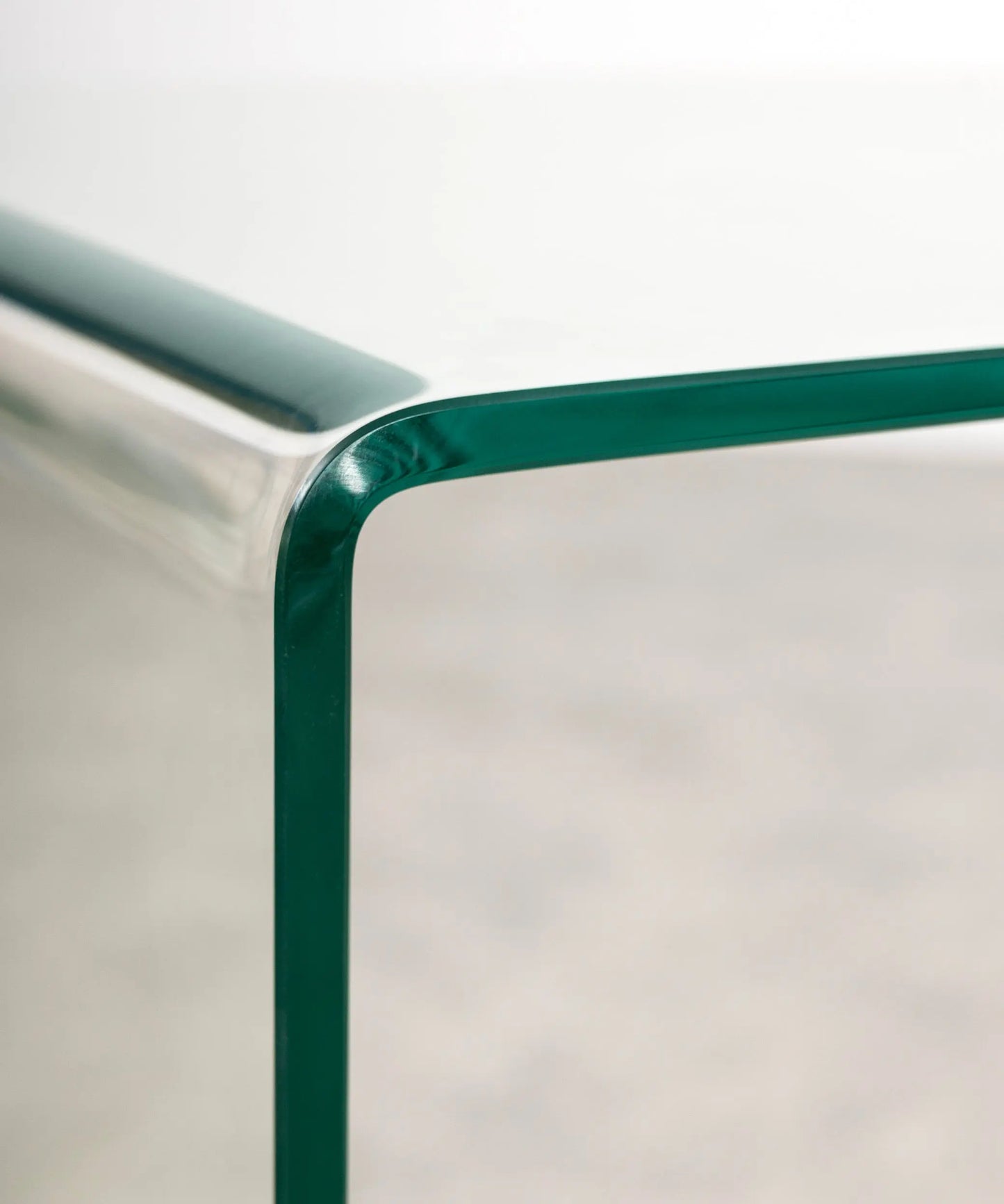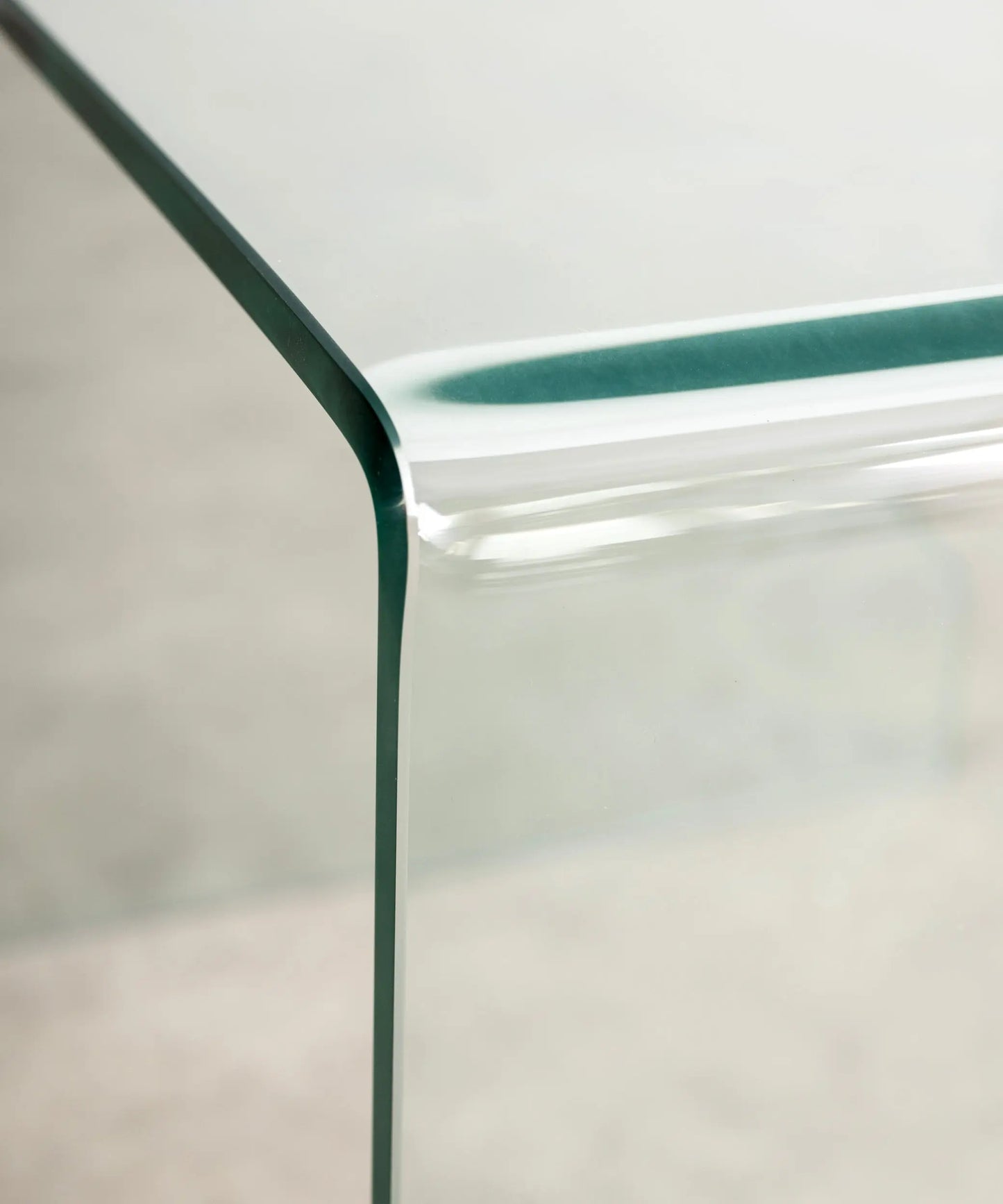 Wir präsentieren Ihnen den neuen nordischen Design-Tisch Jolene. Dieser Glastisch ist vollständig aus gebogenem, gehärtetem Glas gefertigt. Die Oberfläche ist vollständig transparent, und Sie finden sie in verschiedenen trendigen Farbtönen.