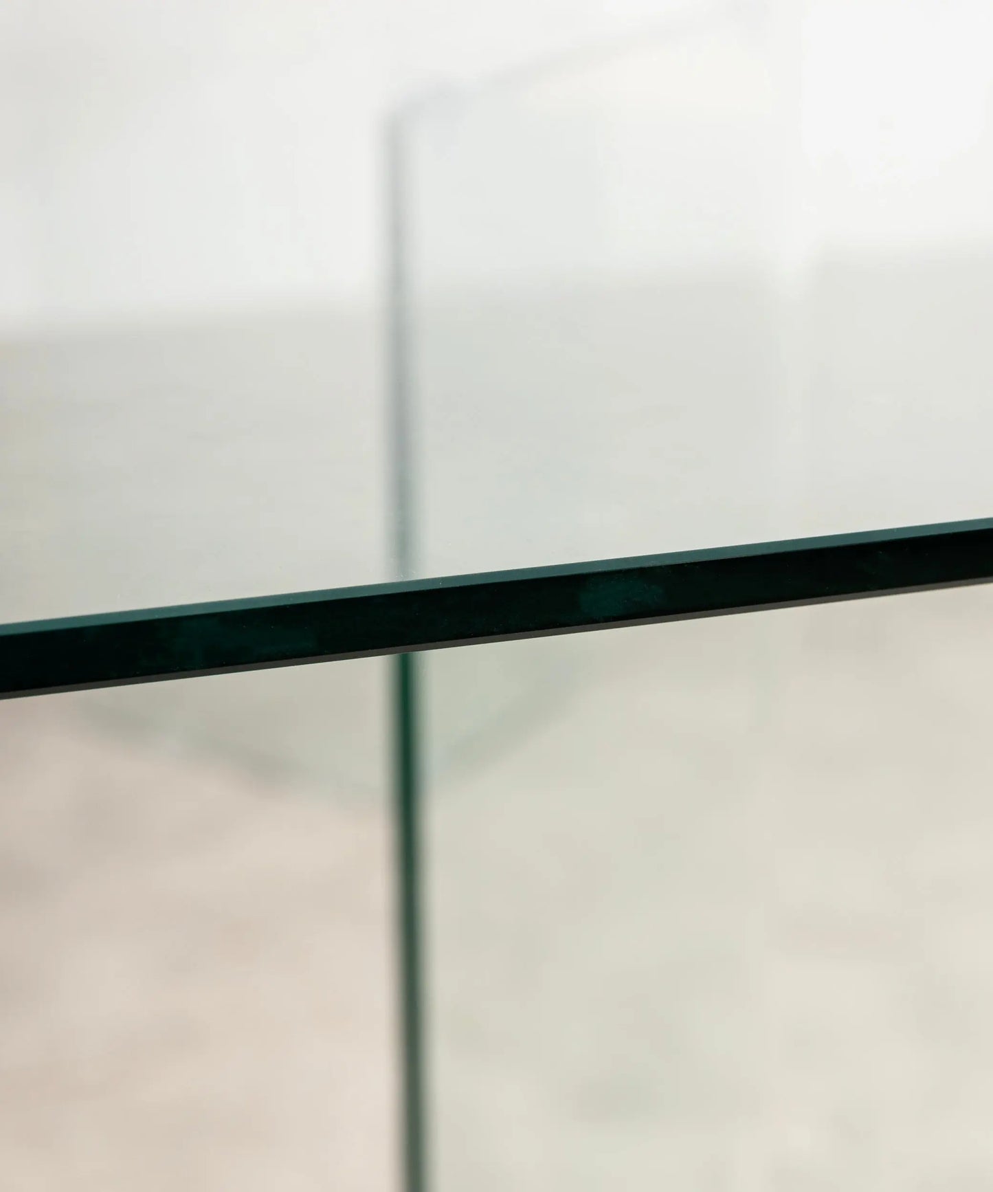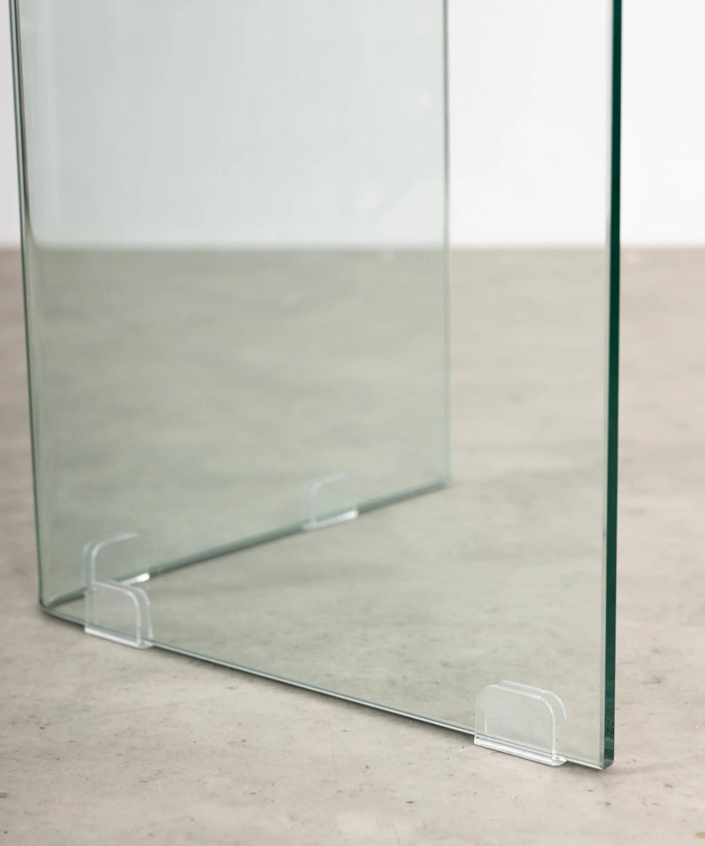 Hergestellt aus gehärtetem Glas mit einer Dicke von 10 mm und transparentem Finish, verleiht er Ihren Lieblingsräumen Leichtigkeit und Weite. Sie werden sein einzigartiges Design lieben!