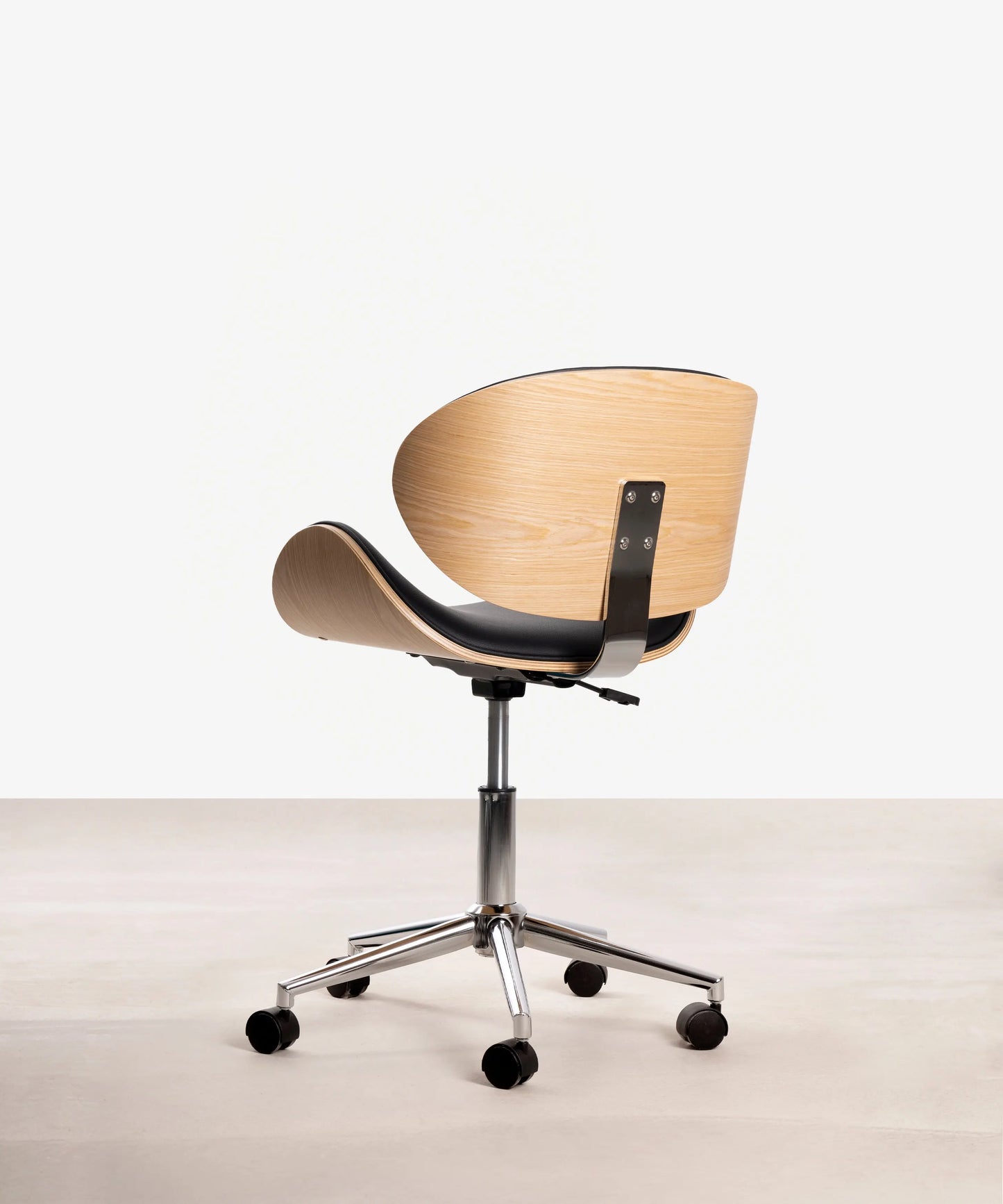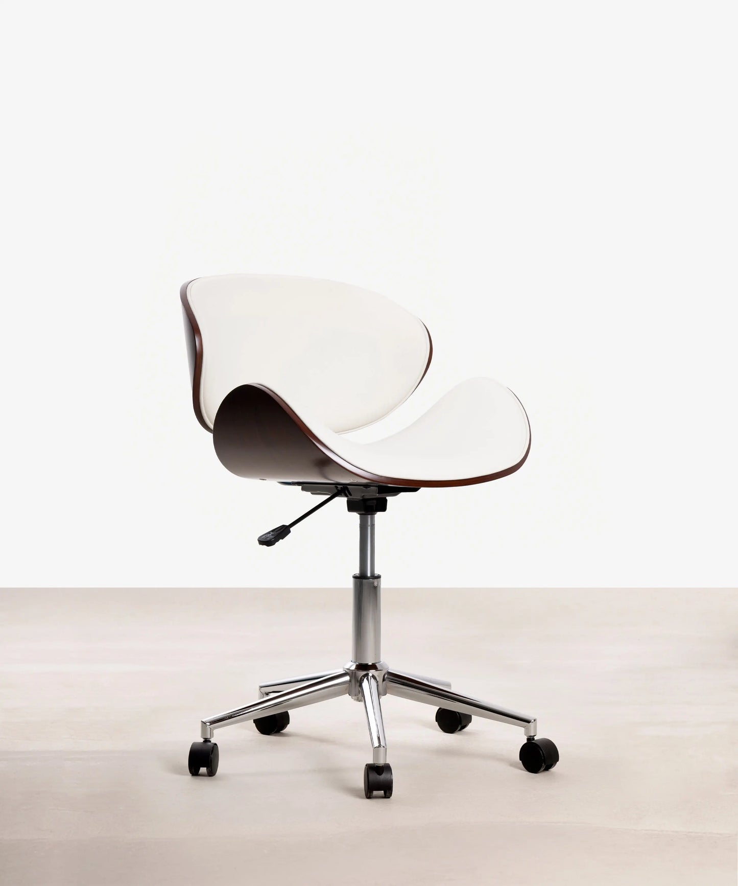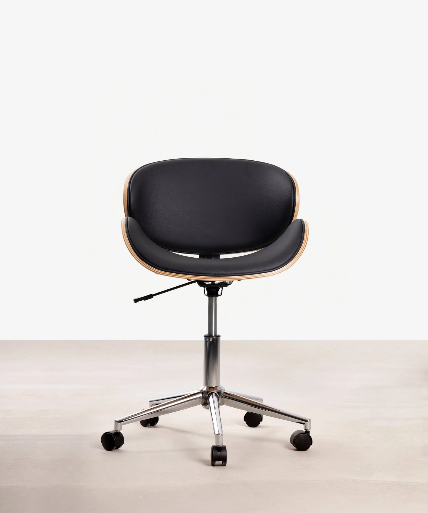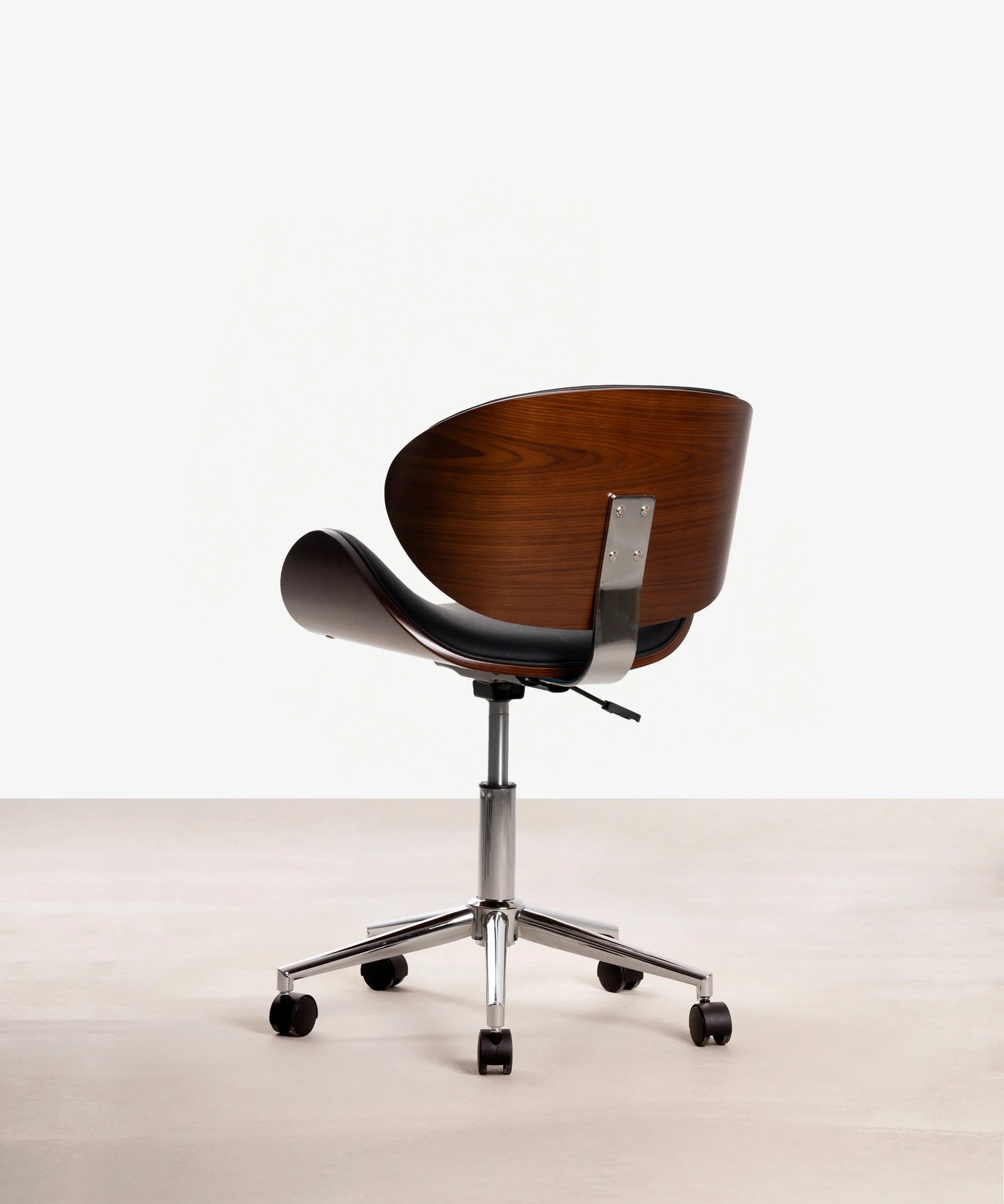 Schreibtischstuhl aus Kunstleder und Holz Shelley