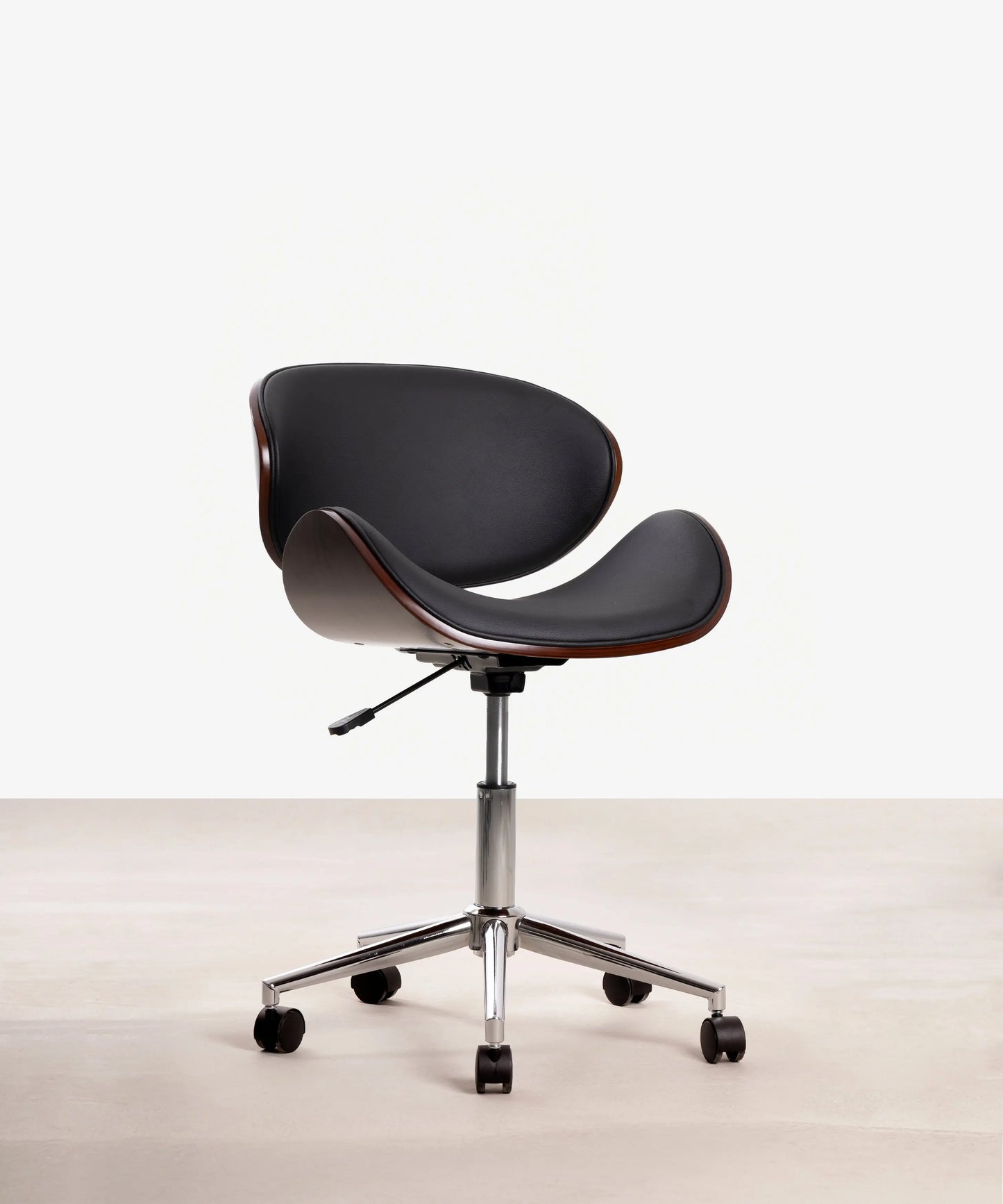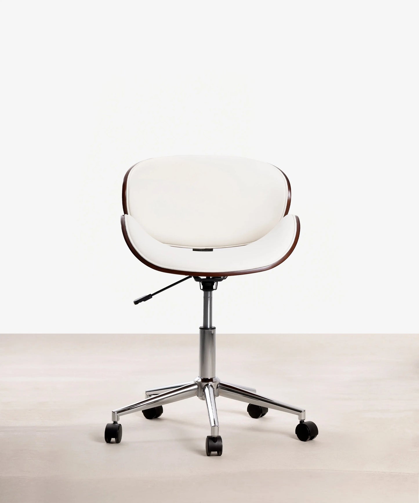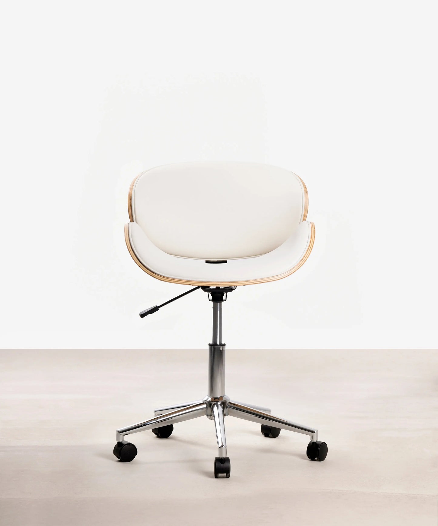 Schreibtischstuhl aus Kunstleder und Holz Shelley