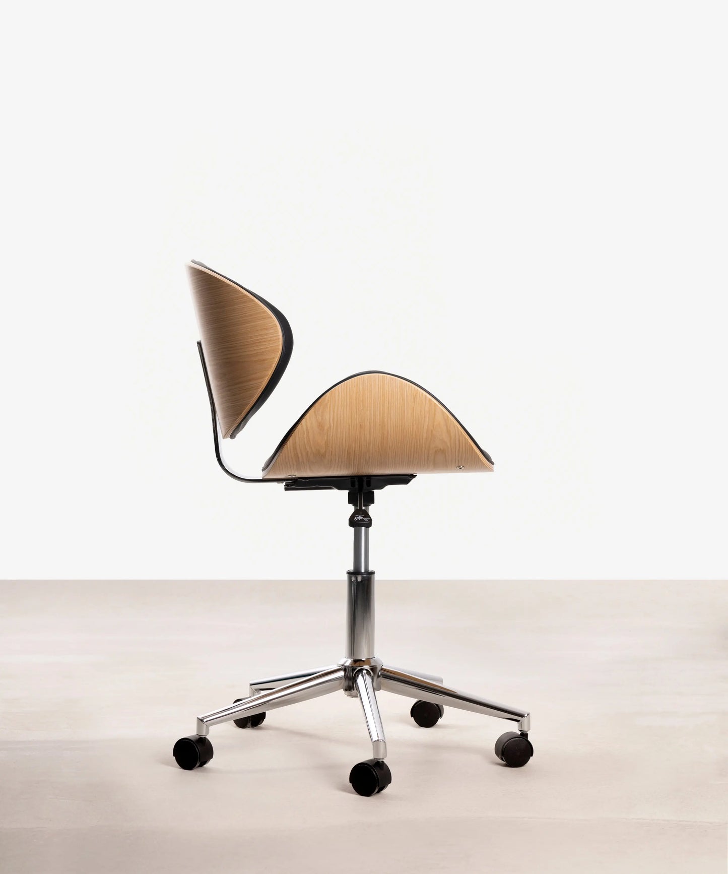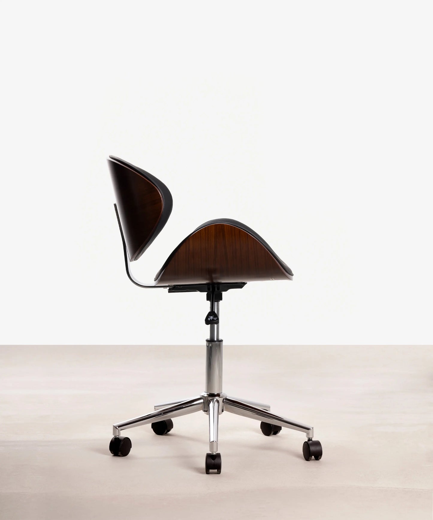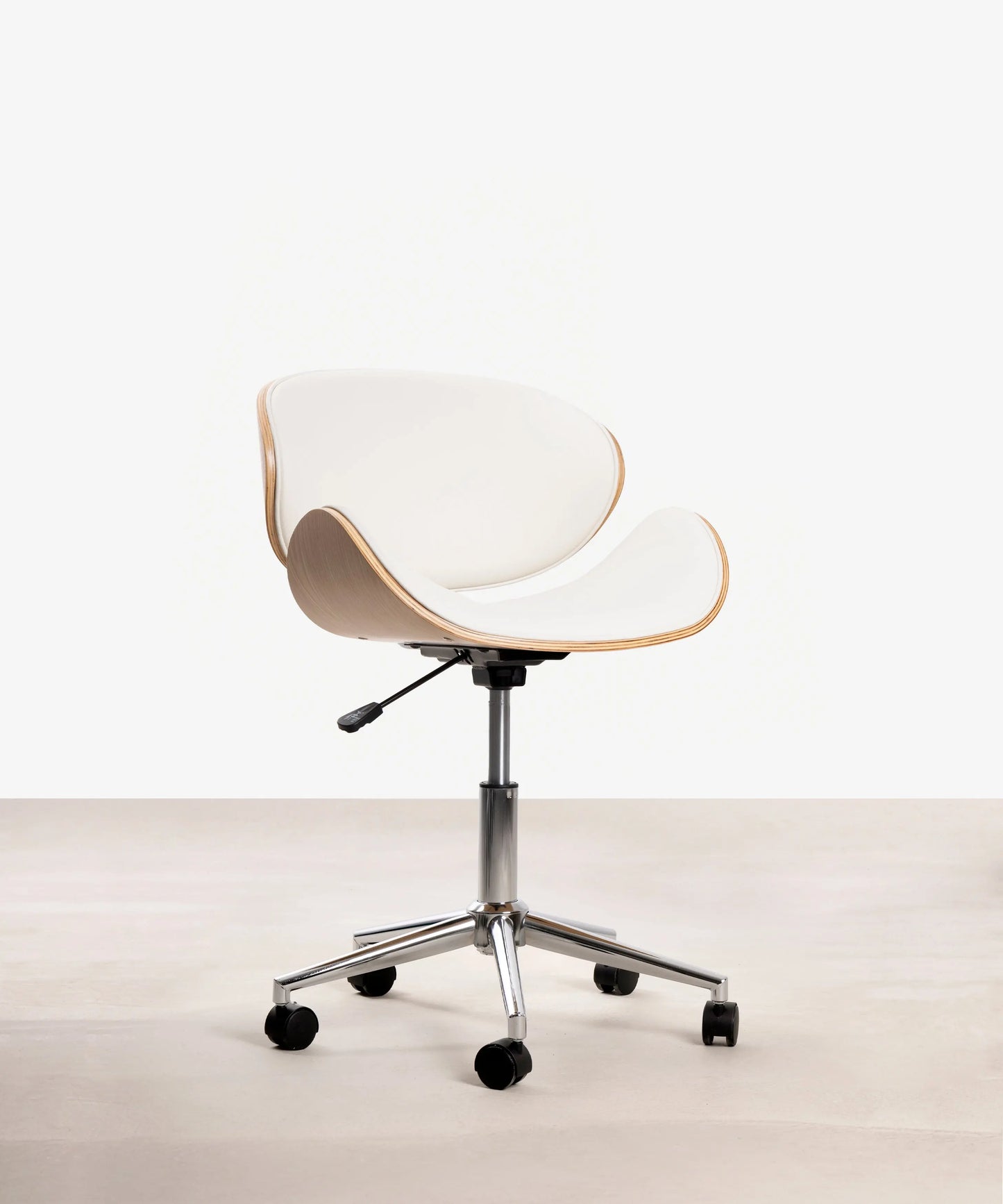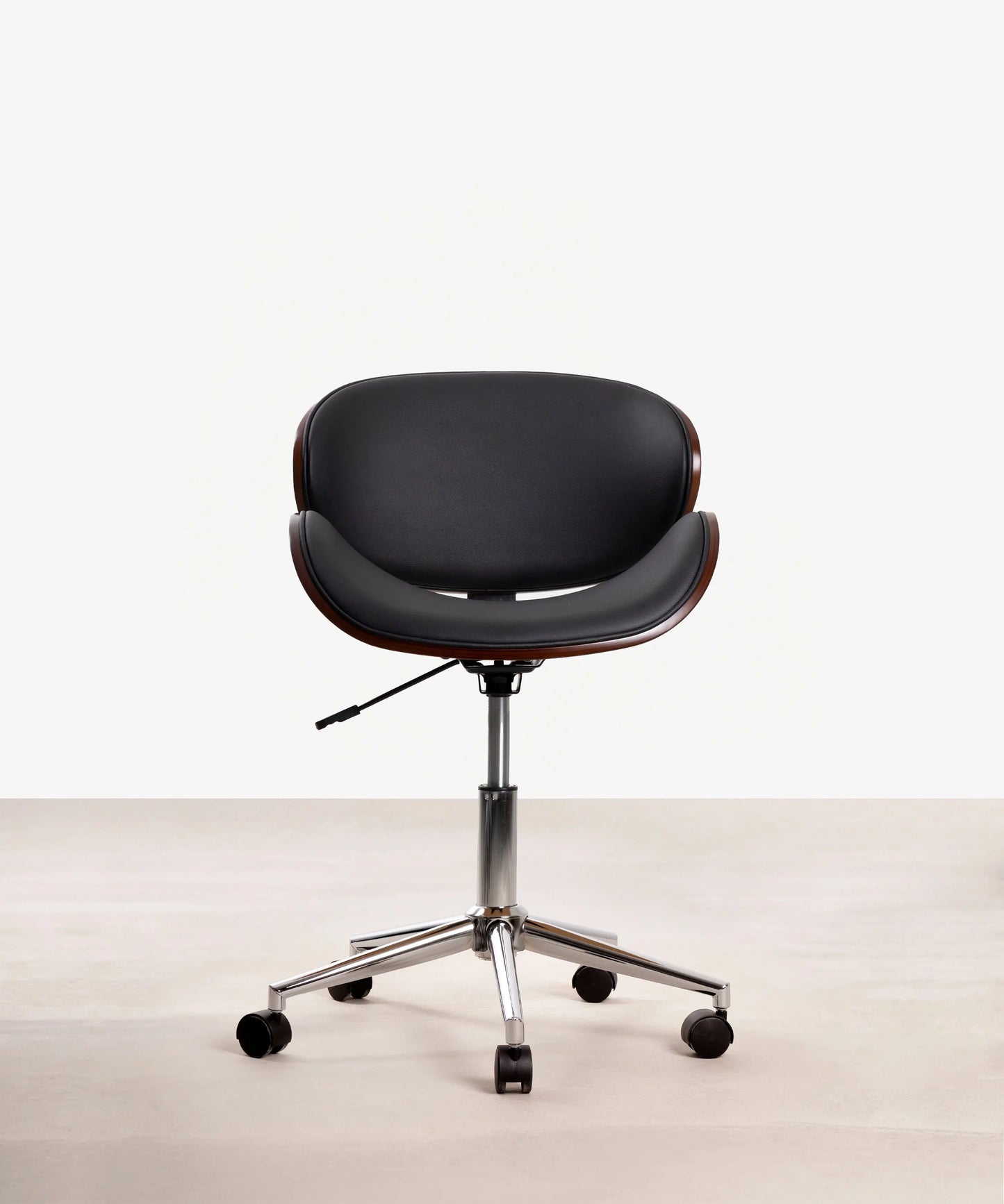 Schreibtischstuhl aus Kunstleder und Holz Shelley