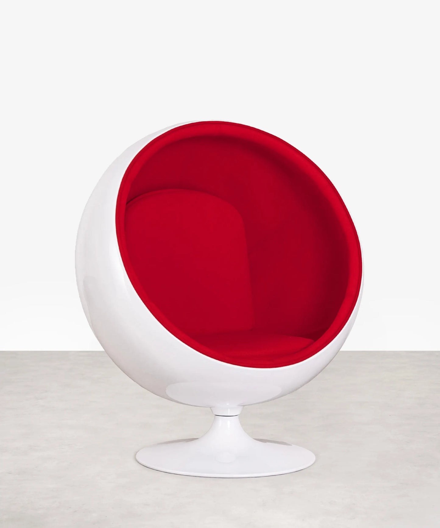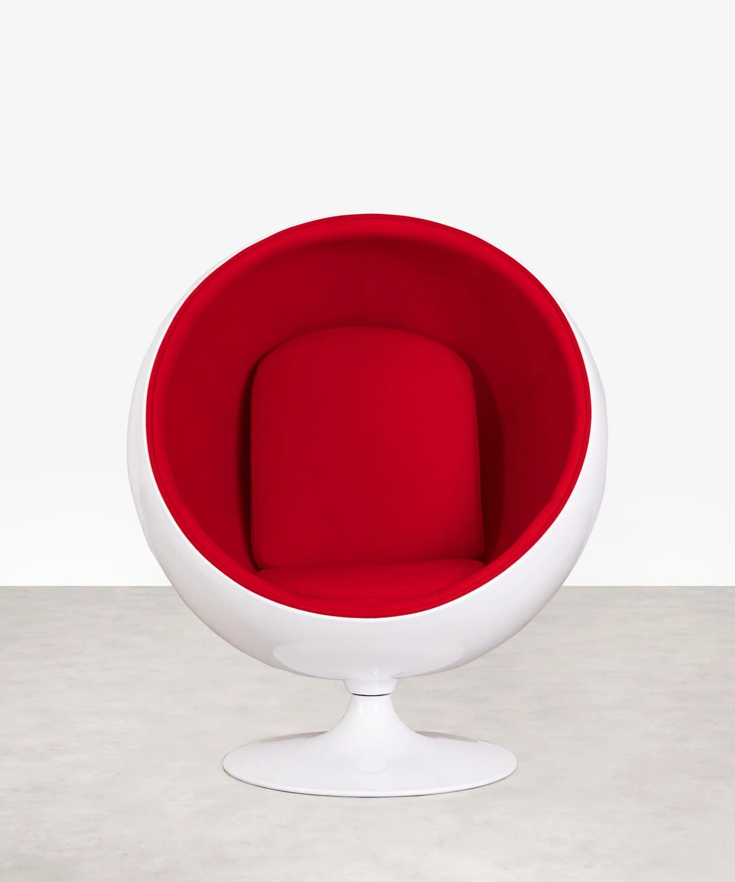 Seine Glasfaserstruktur und sein Inneres sind mit hochwertigem Kaschmirstoff bezogen, der in Rot erhältlich ist. Seine runde Form macht ihn zu einem originellen und einzigartigen Sessel.
