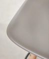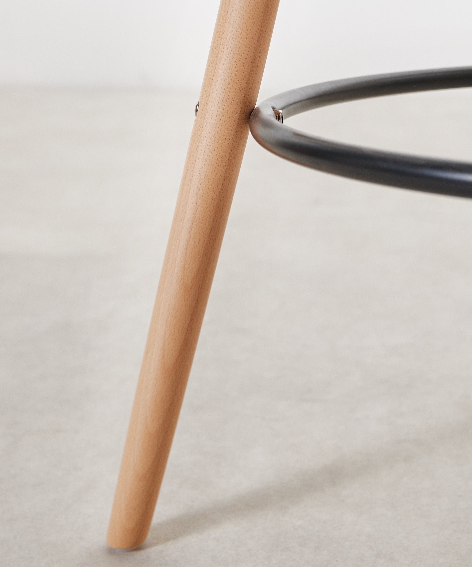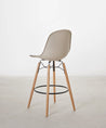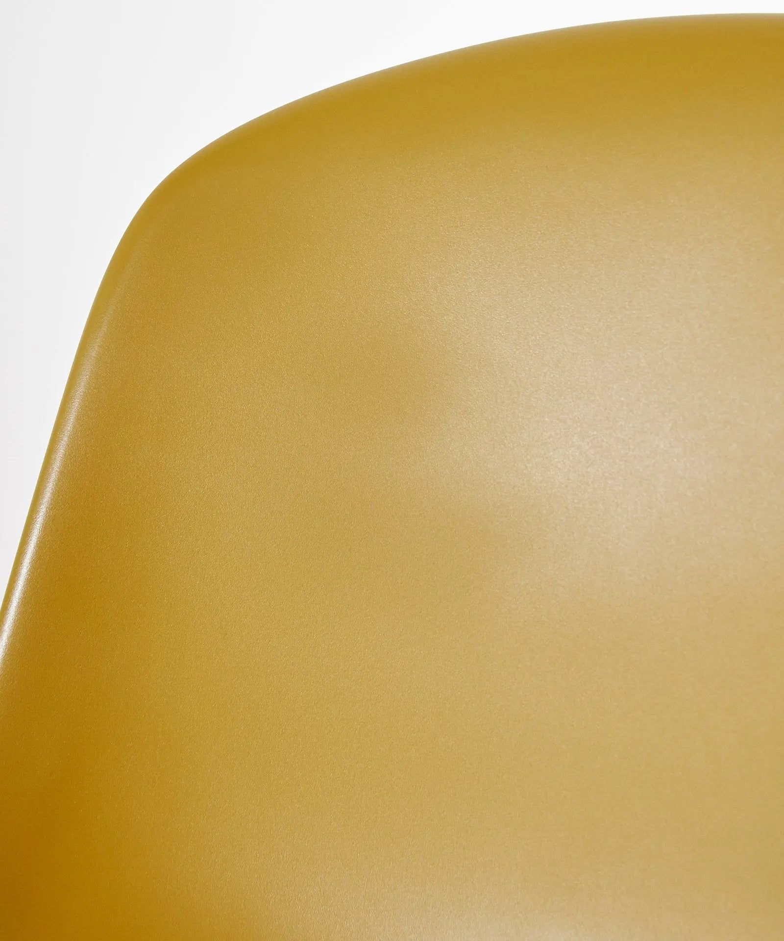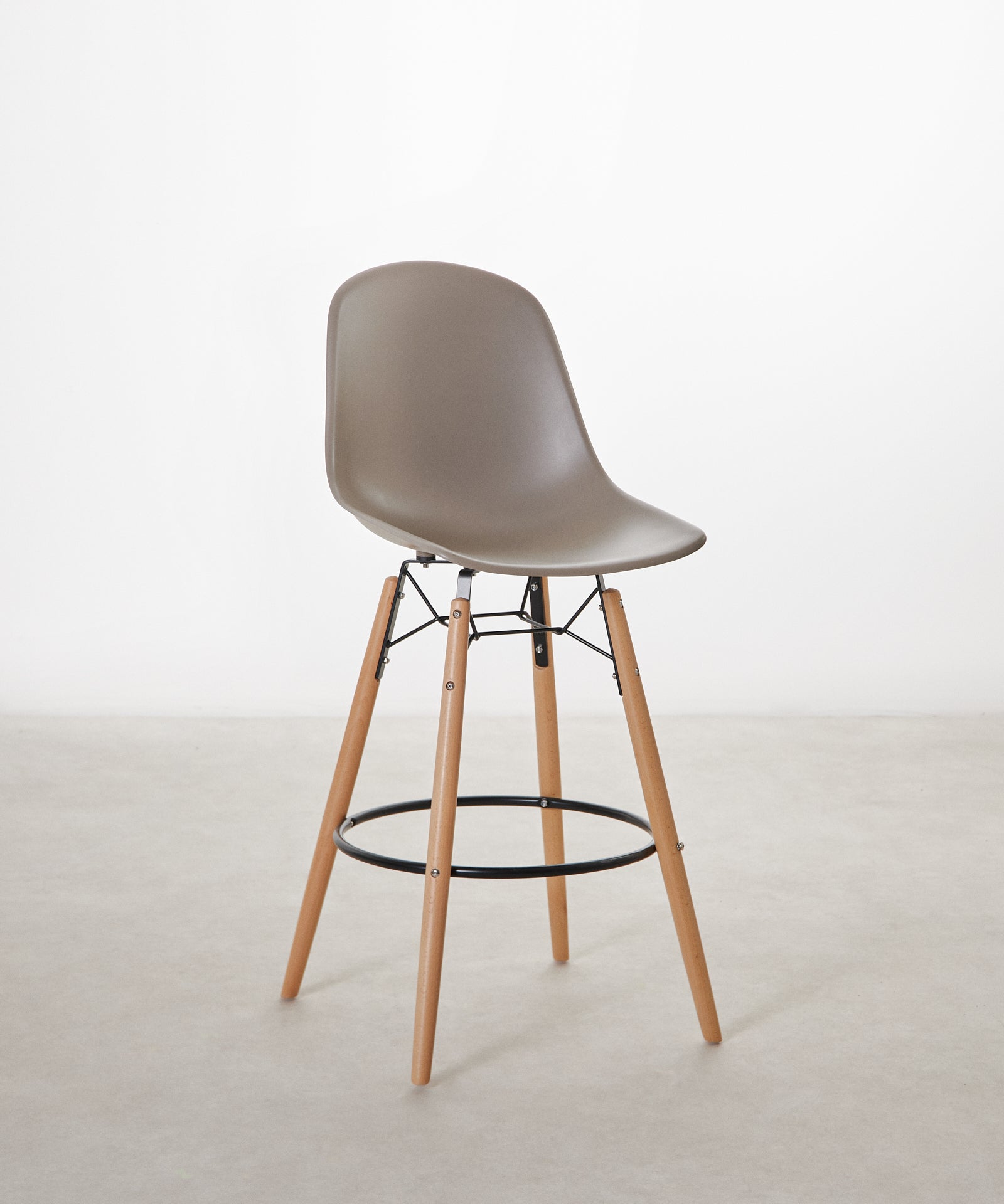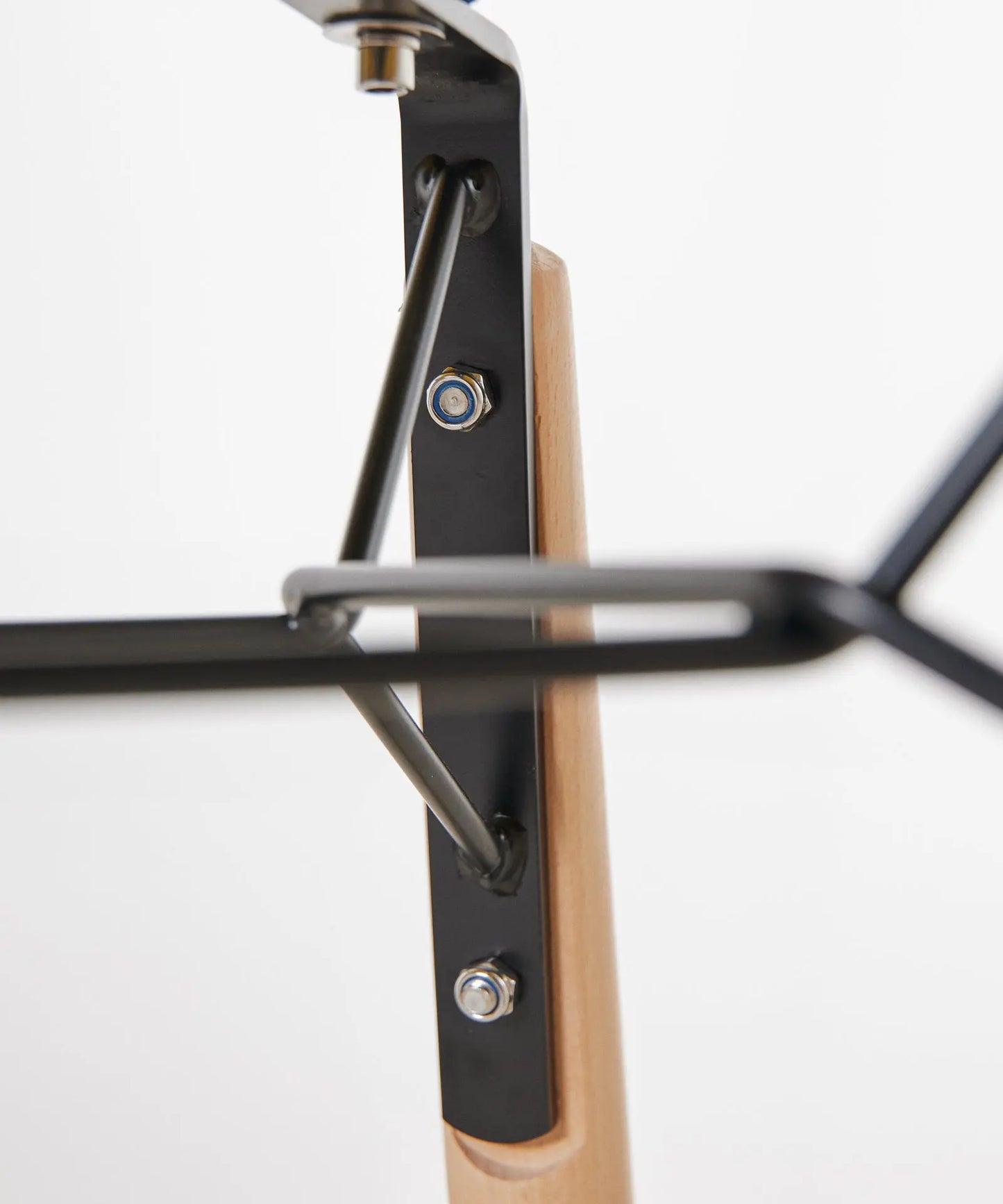 Seine Struktur aus Polypropylen bietet Robustheit und einfache Pflege. Die Beine sind aus hochwertigem Buchenholz mit Walnuss-Finish gefertigt und mit schwarzen Stahlstangen kombiniert.