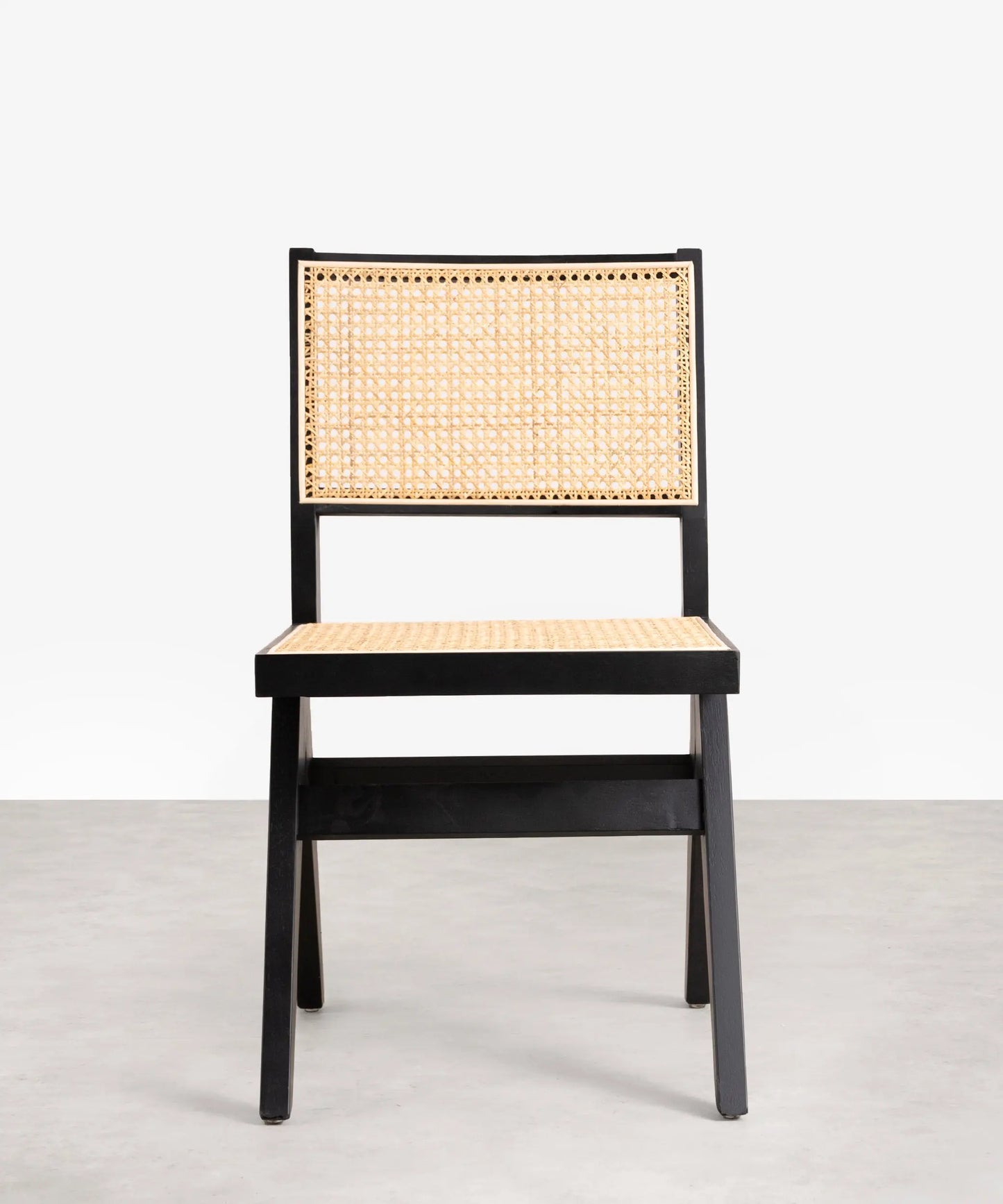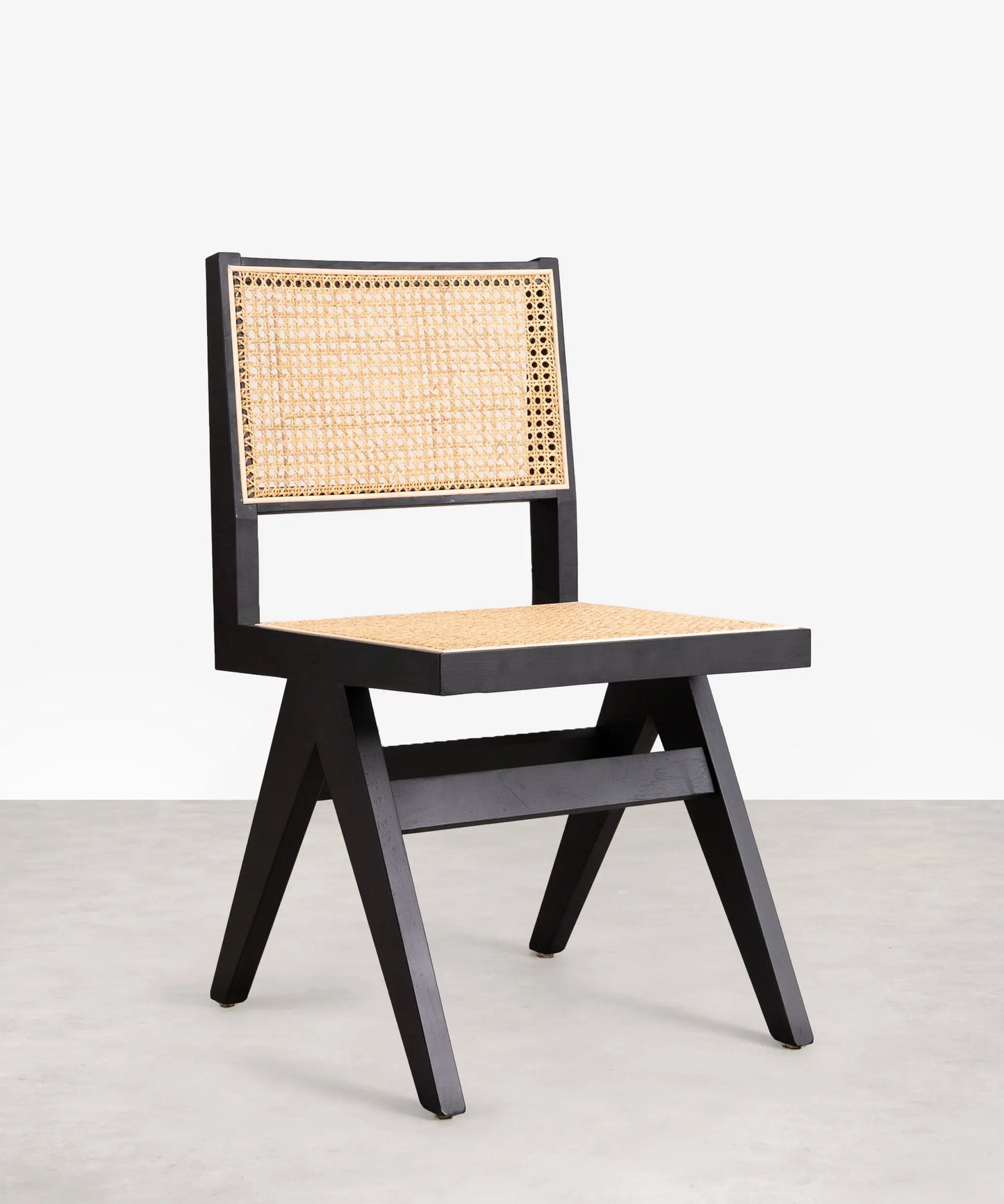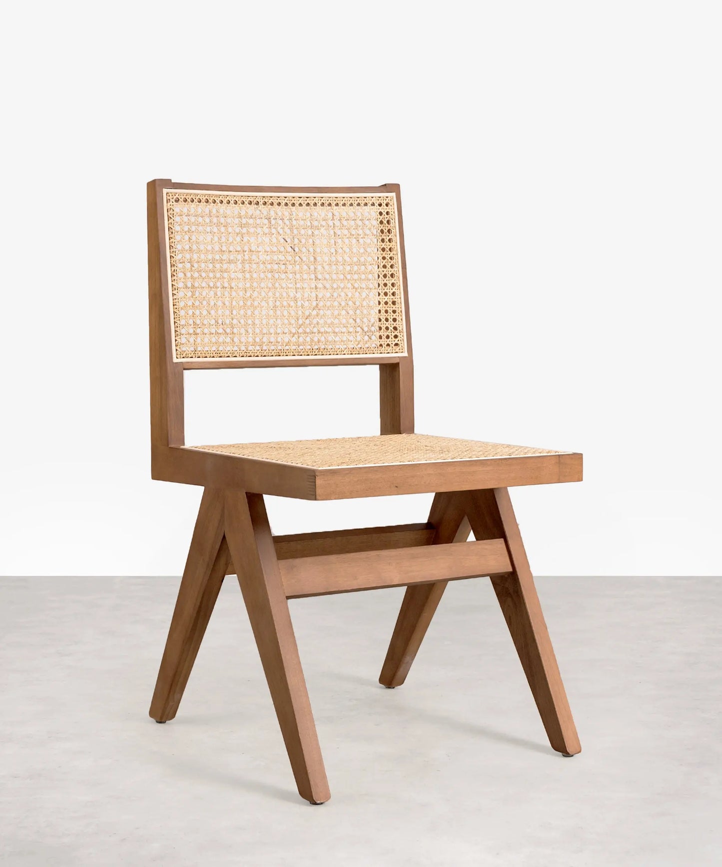 Esszimmerstuhl aus Holz und Rattan Chiara