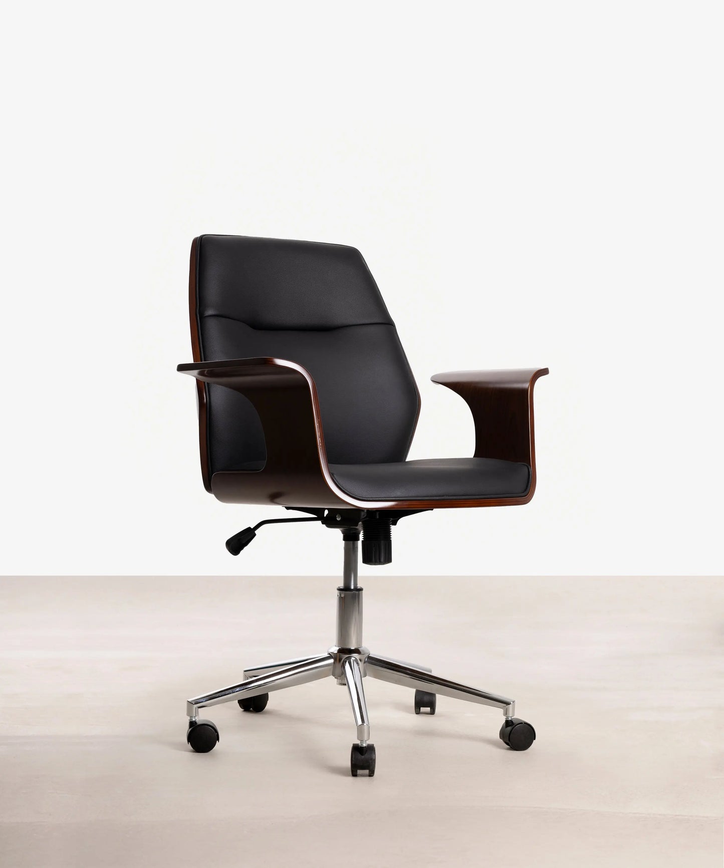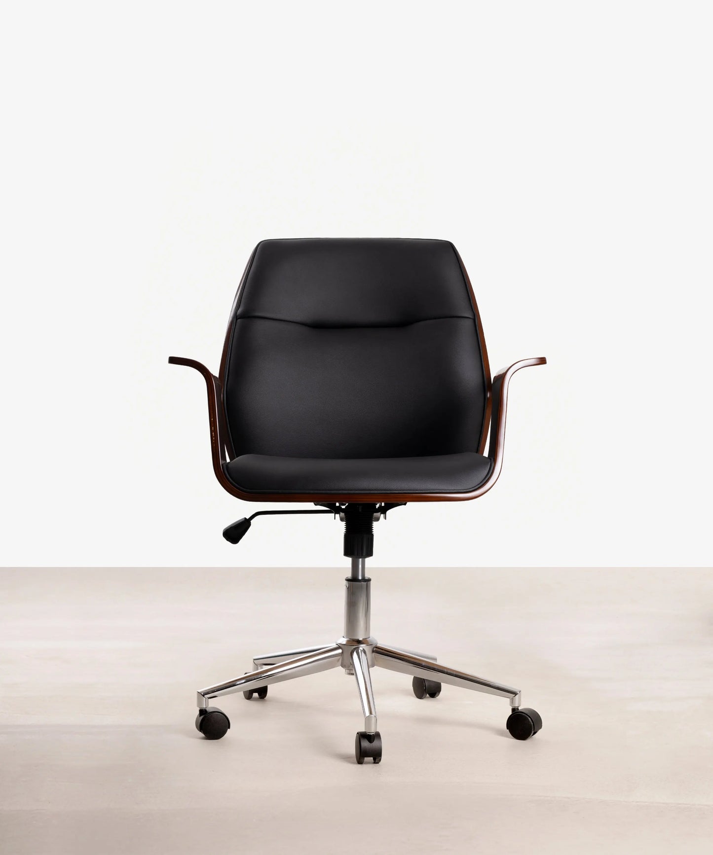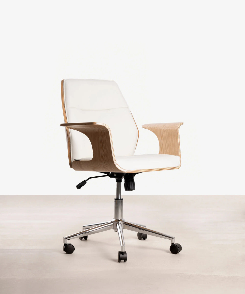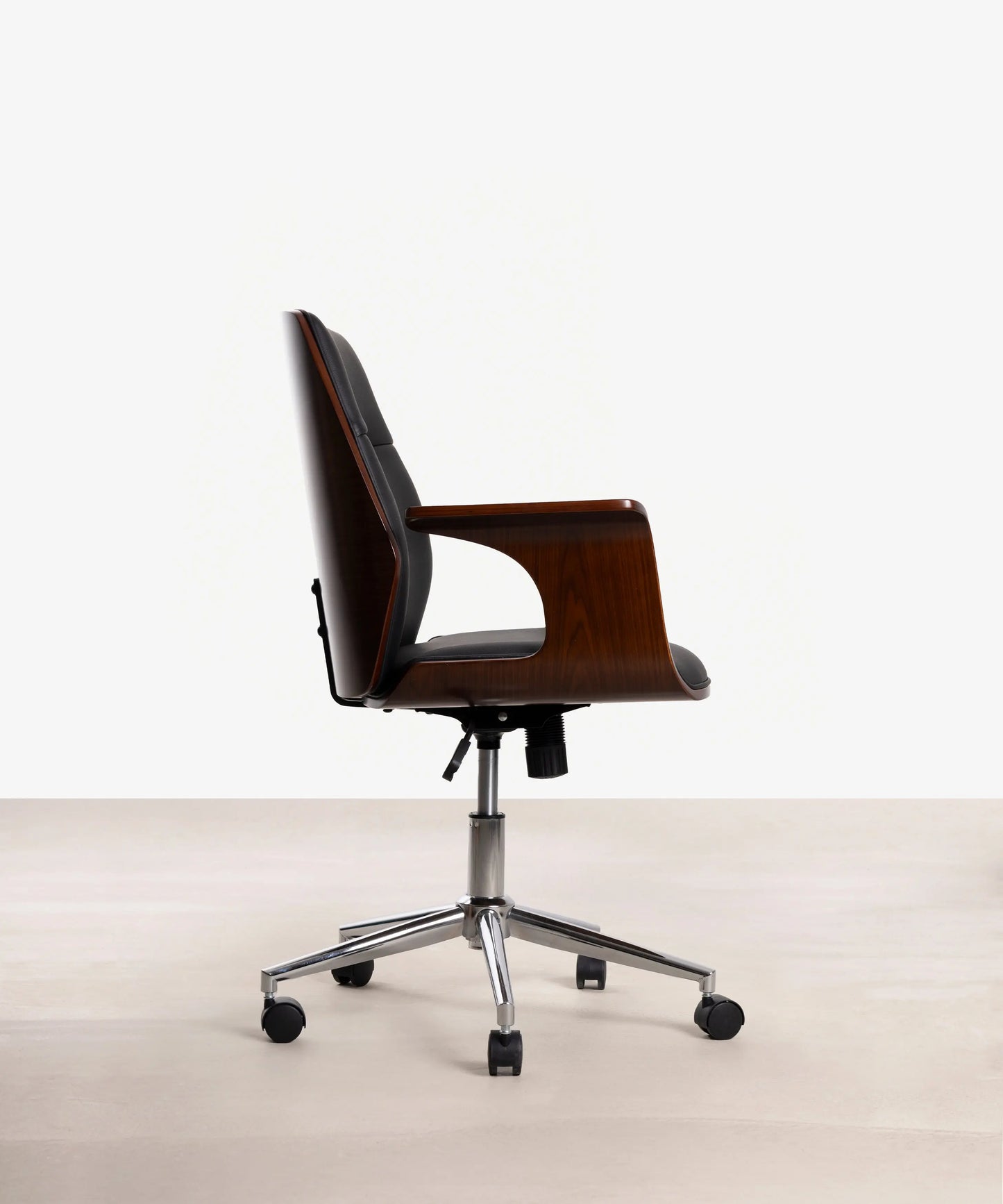 Schreibtischstuhl aus Kunstleder und Holz Malibuu