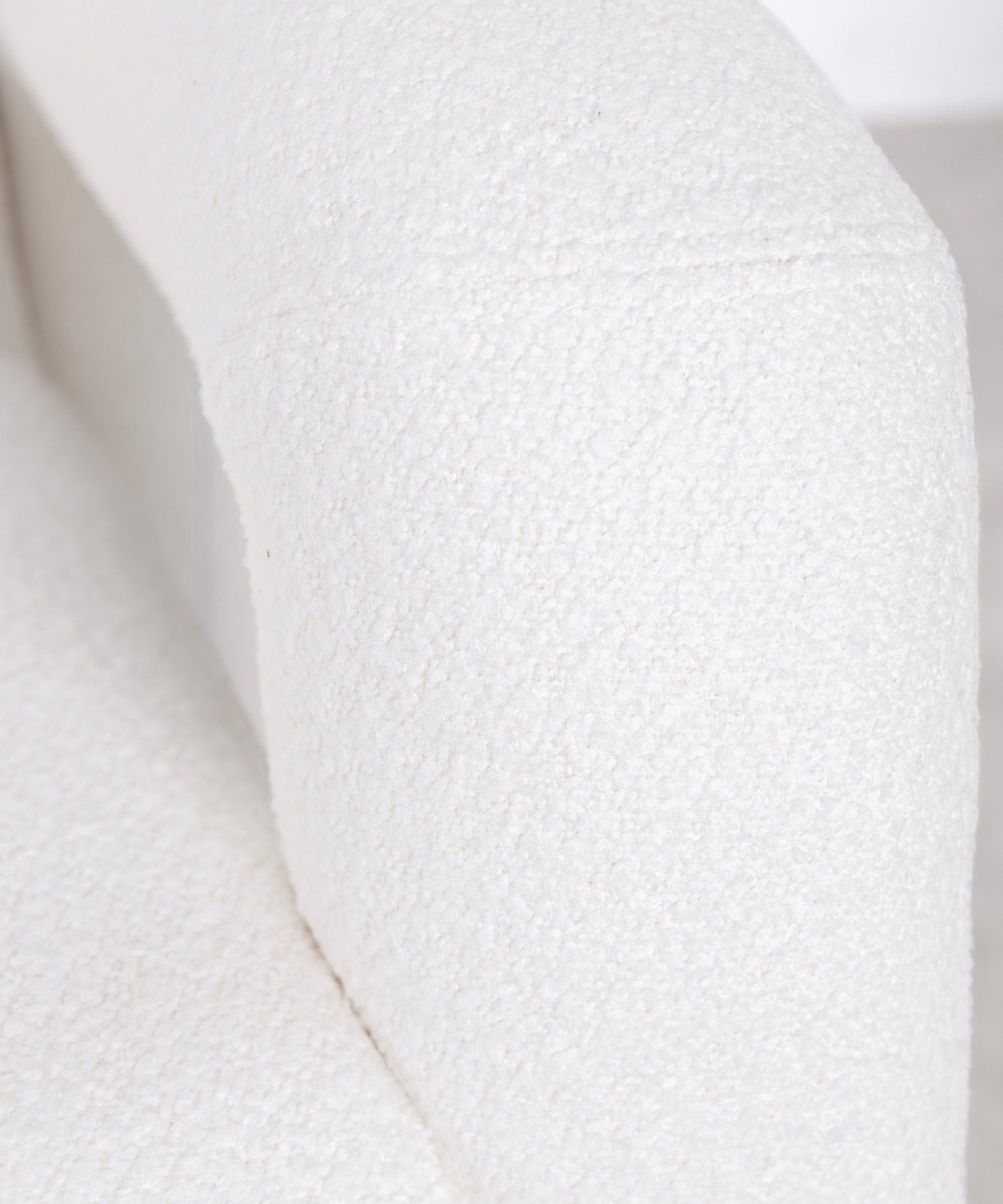 Bezogen mit einem texturierten Bouclé-Stoff, macht seine neutrale Farbe ihn zu einem vielseitigen Möbelstück, das sich mühelos in verschiedene Einrichtungsstile einfügt.