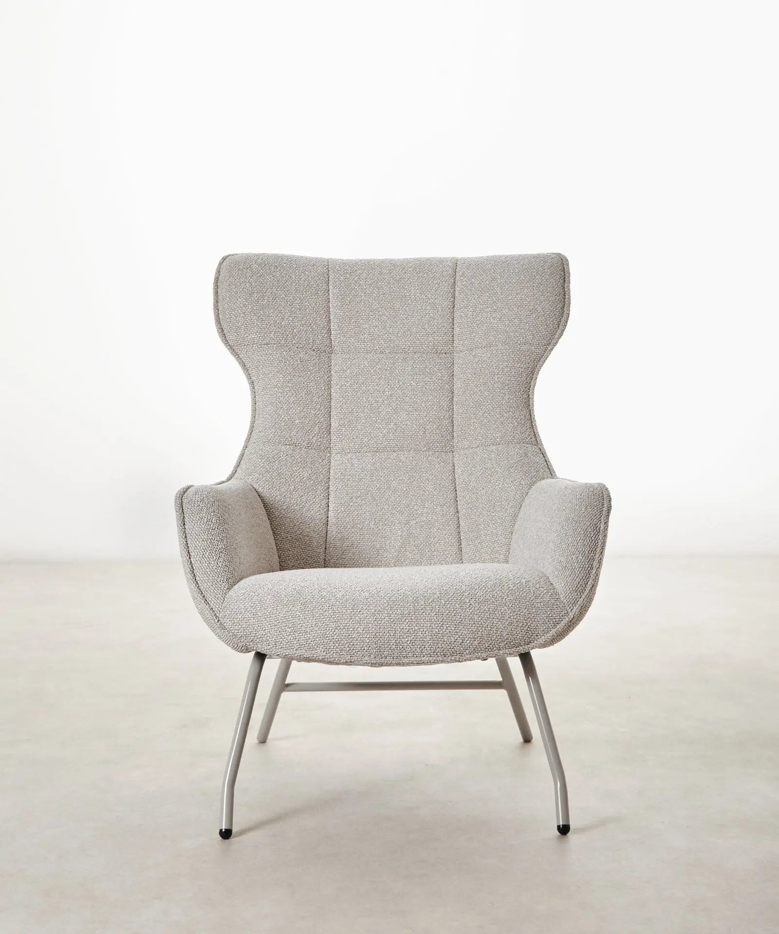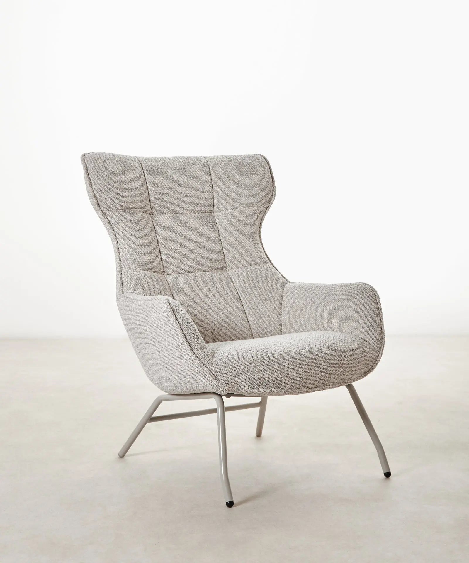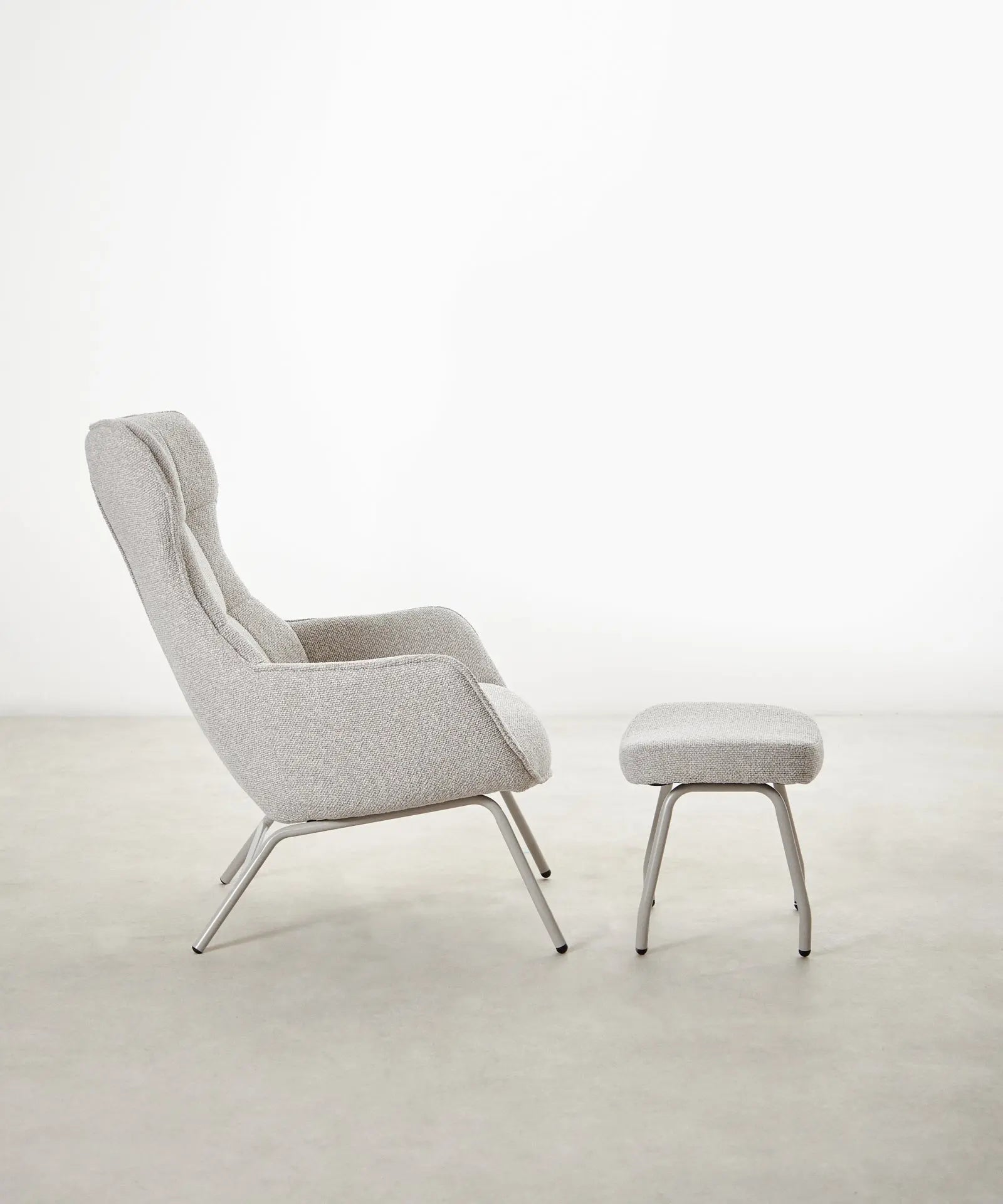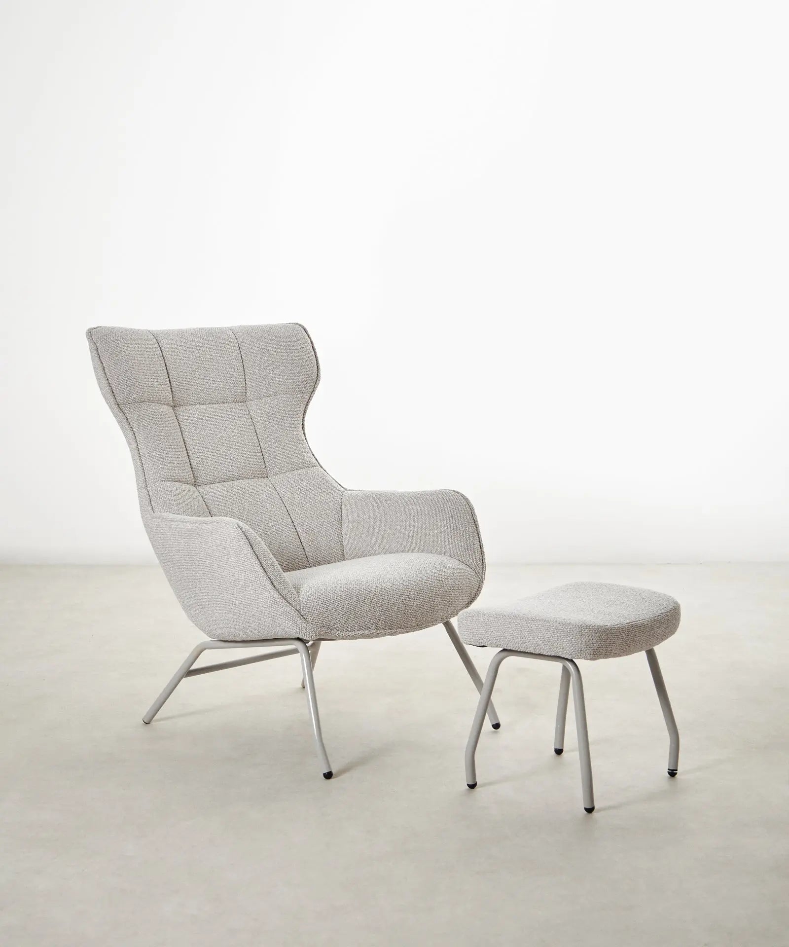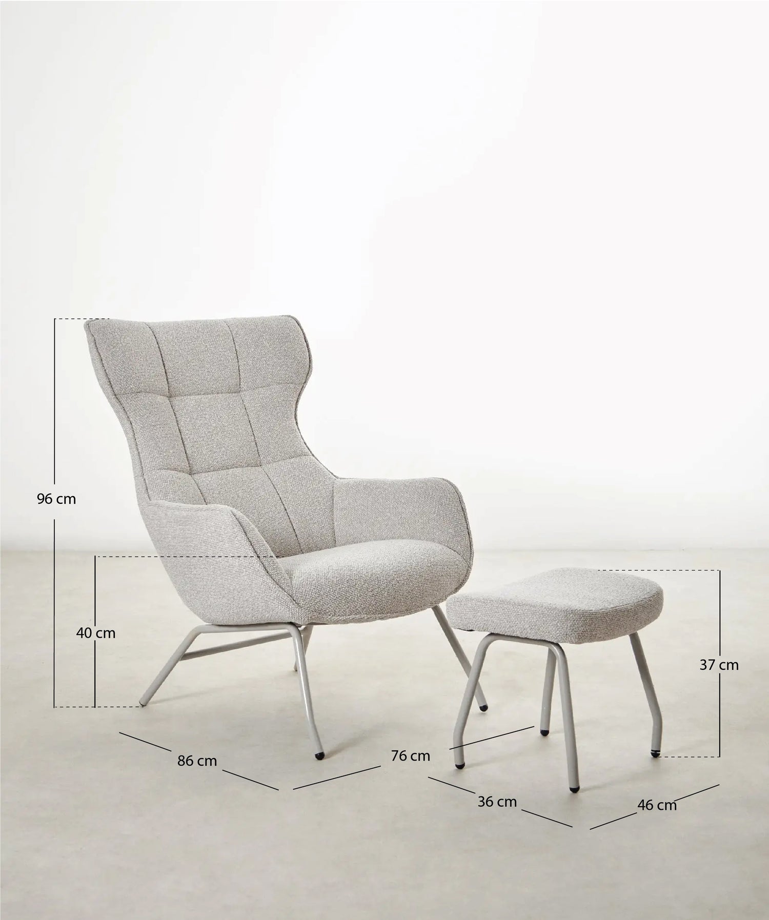 Gepolsterter Sessel aus Bouclé-Stoff mit Hocker Elska