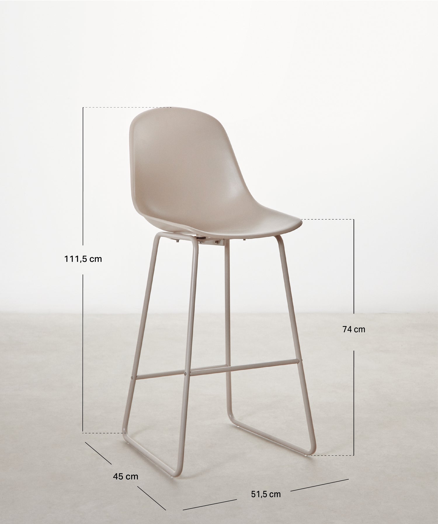 Der Barhocker Veko ist ideal für moderne Küchen, Theken oder industriell gestaltete Räume. Seine klare, schlanke Silhouette macht ihn zu einem vielseitigen Möbelstück, das sich leicht kombinieren lässt.