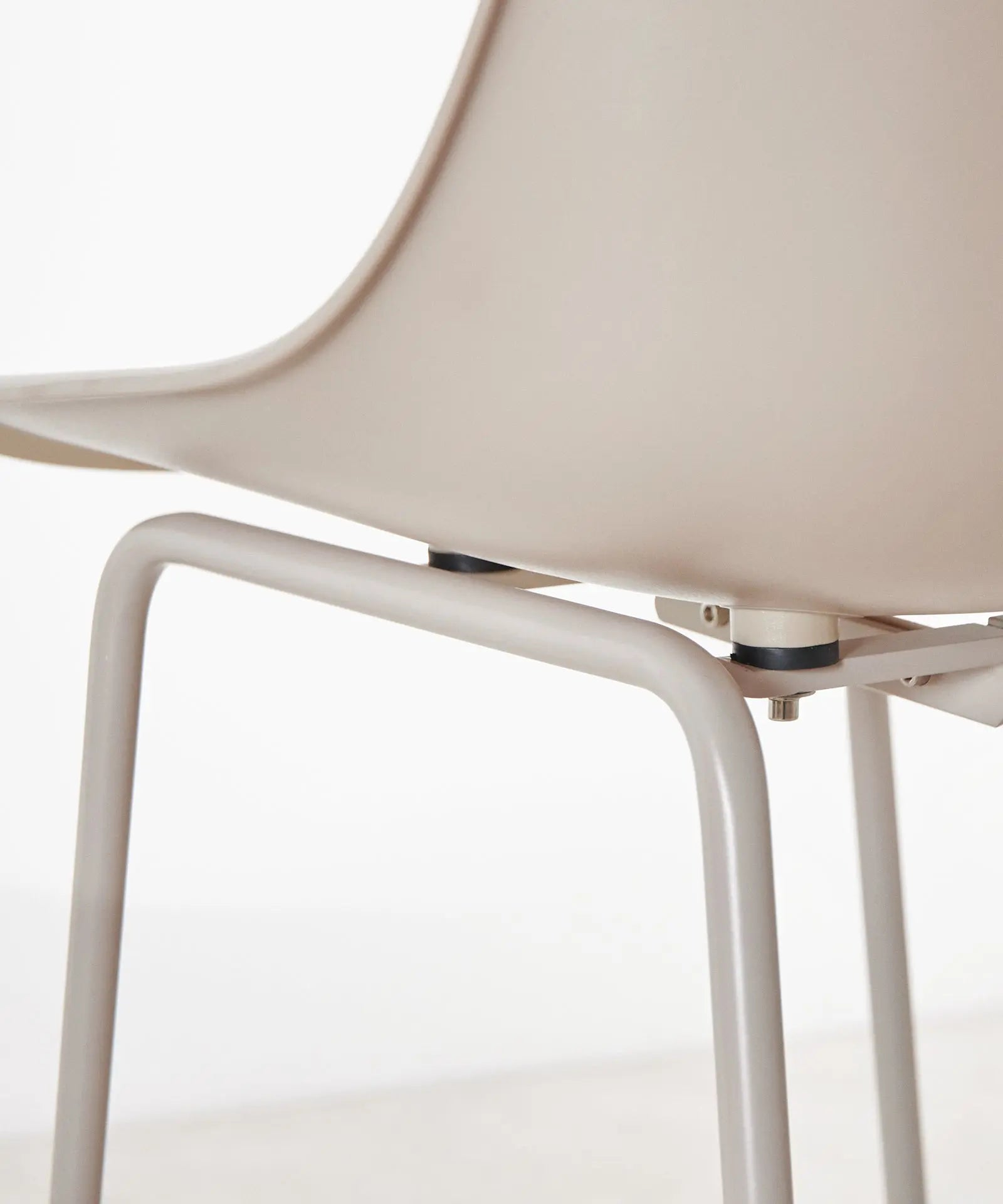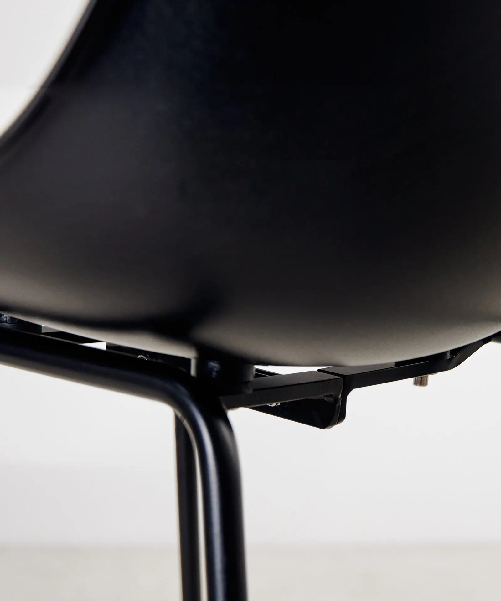 Er verfügt über eine bequeme, ergonomische Sitzfläche aus Polypropylen. Das Metallgestell mit Kufengestell sorgt für Stabilität und verleiht ihm einen zeitgemäßen, minimalistischen Look.