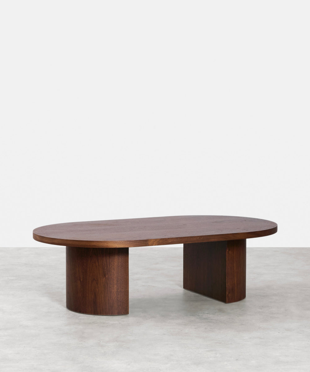 Crafted from wood, it features a solid structure and two half-circle-shaped legs that add both character and stability.