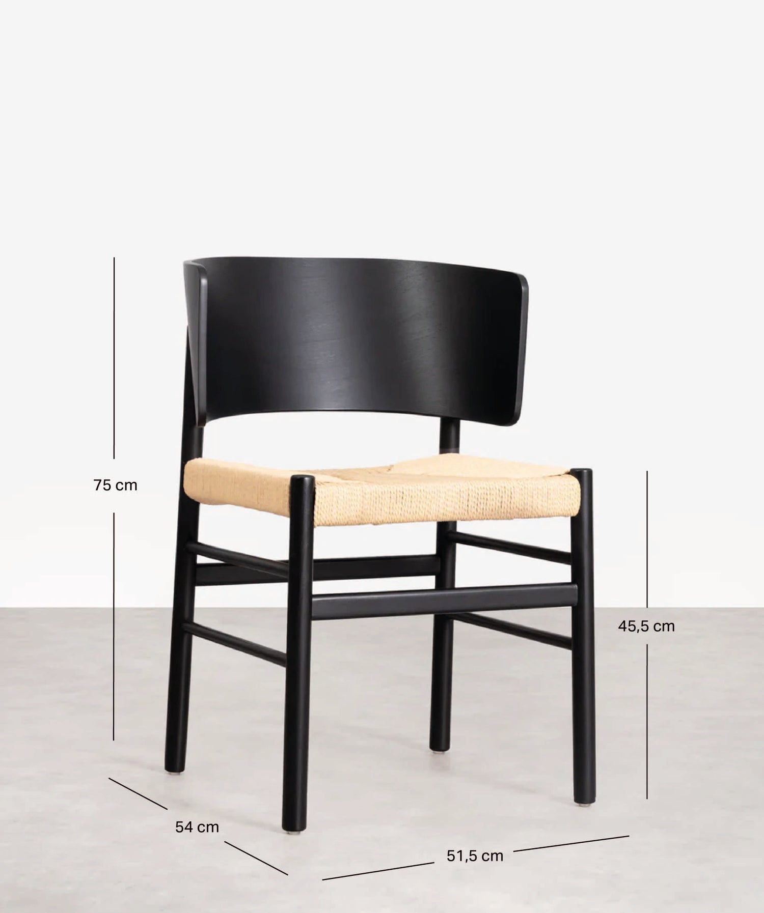 Our Vesper chair is a perfect blend of style and comfort. With its black structure and seat woven with natural paper rope, this chair offers a modern and elegant design for any space.