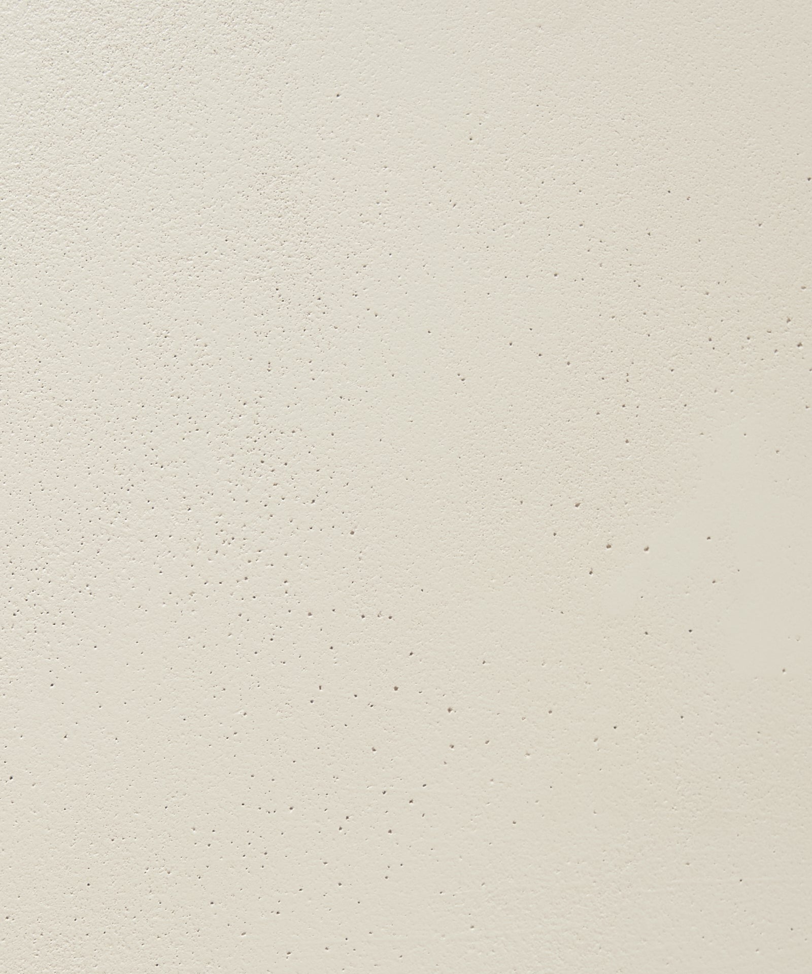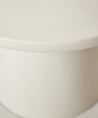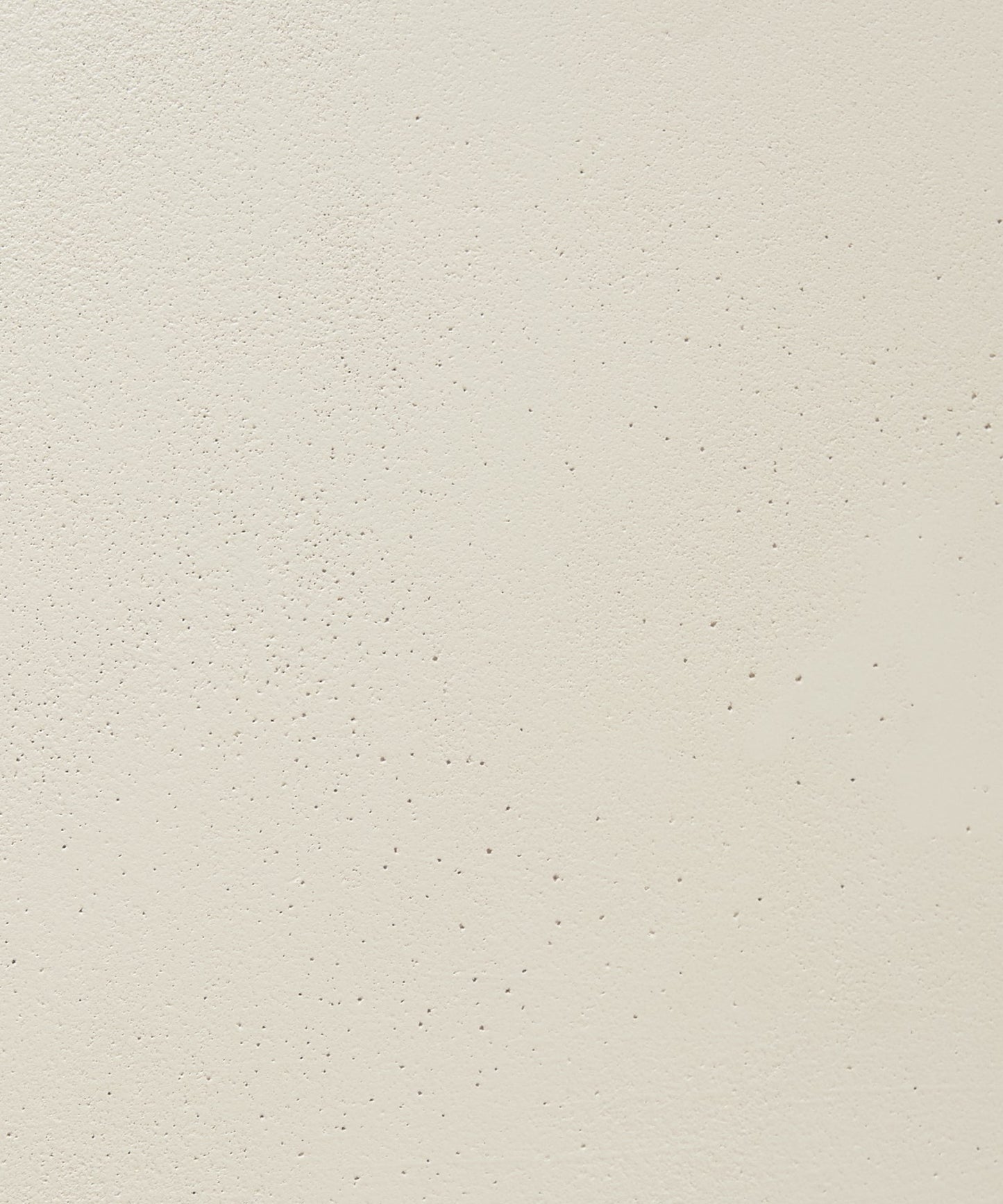 It is made of microcement with an off-white finish, giving it a calm, handcrafted look. Its continuous surface and smooth texture reinforce its minimalist and timeless character. In addition, its materials are resistant, durable, and easy to maintain.