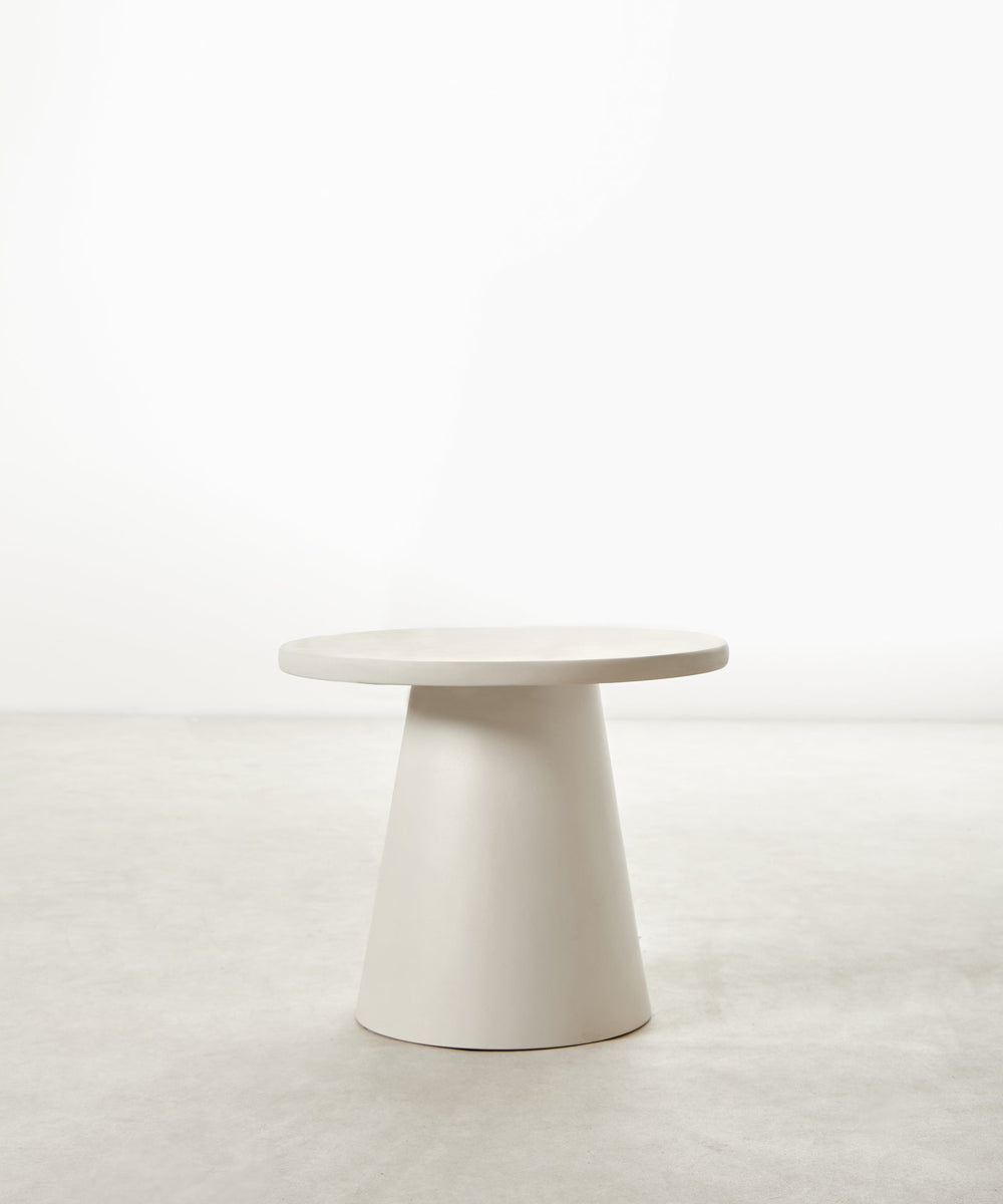 The Eren side table is defined by its simple and geometric design. It stands out with a conical base and a round top. It fits perfectly in modern, minimalist, or industrial-style environments.