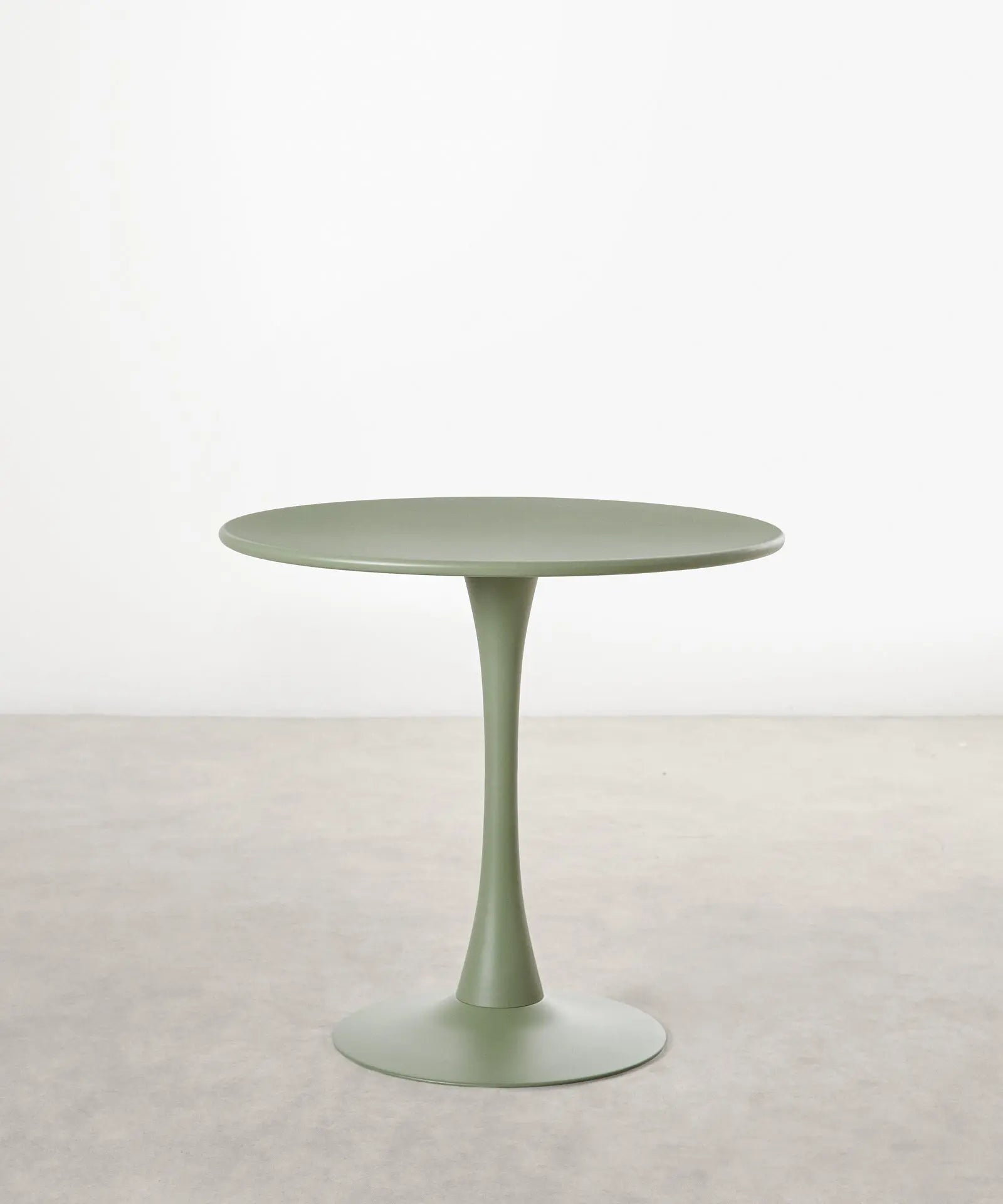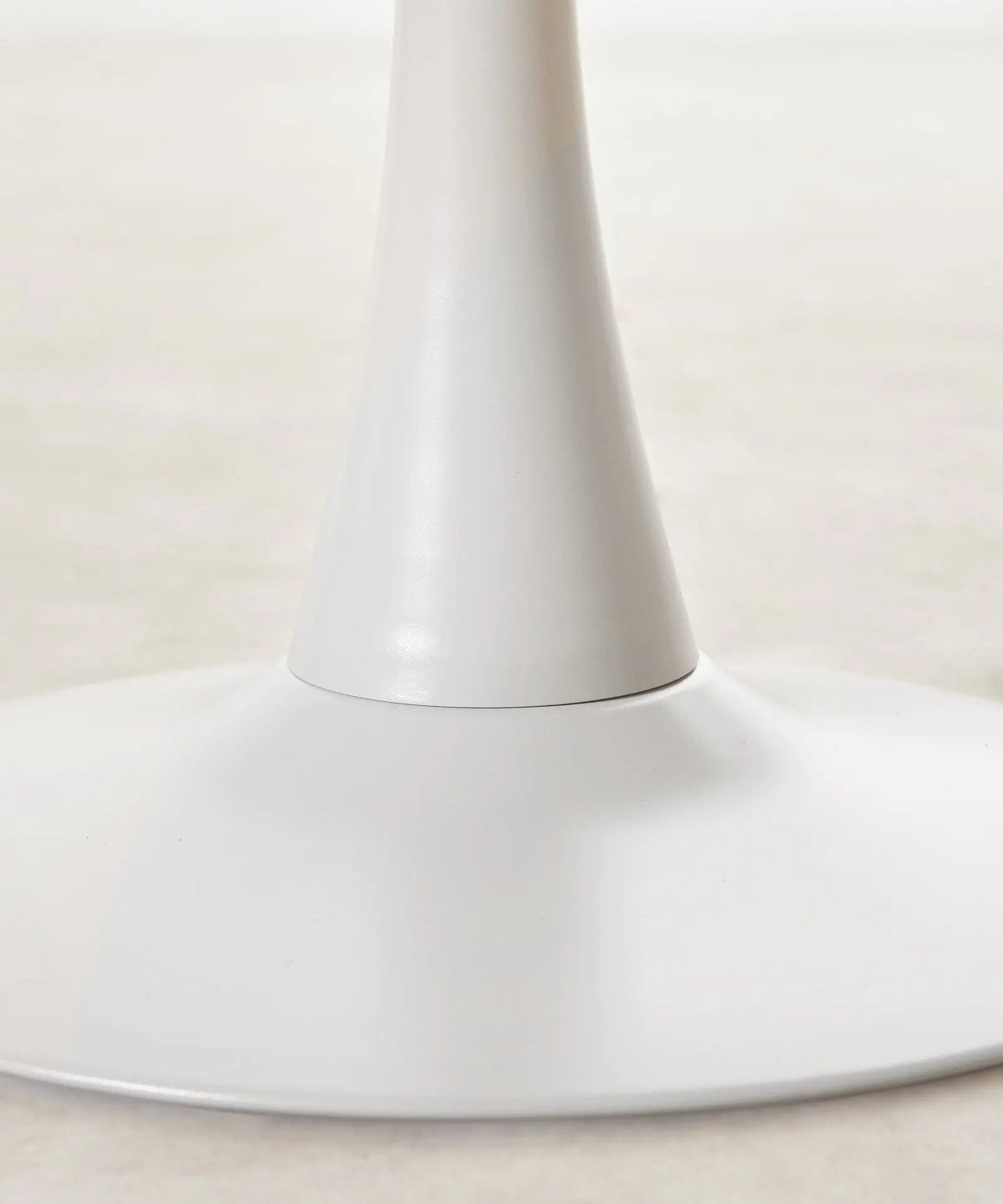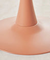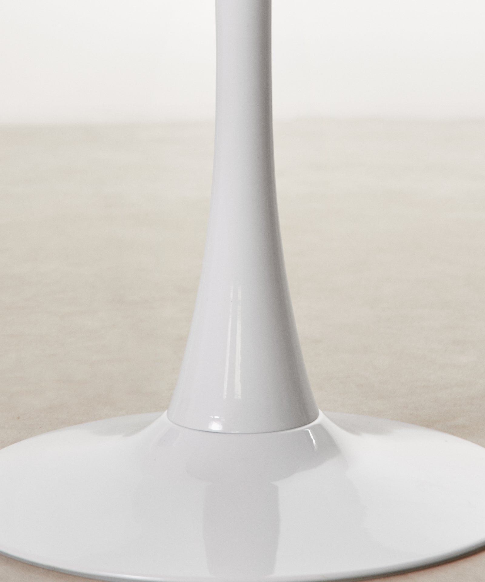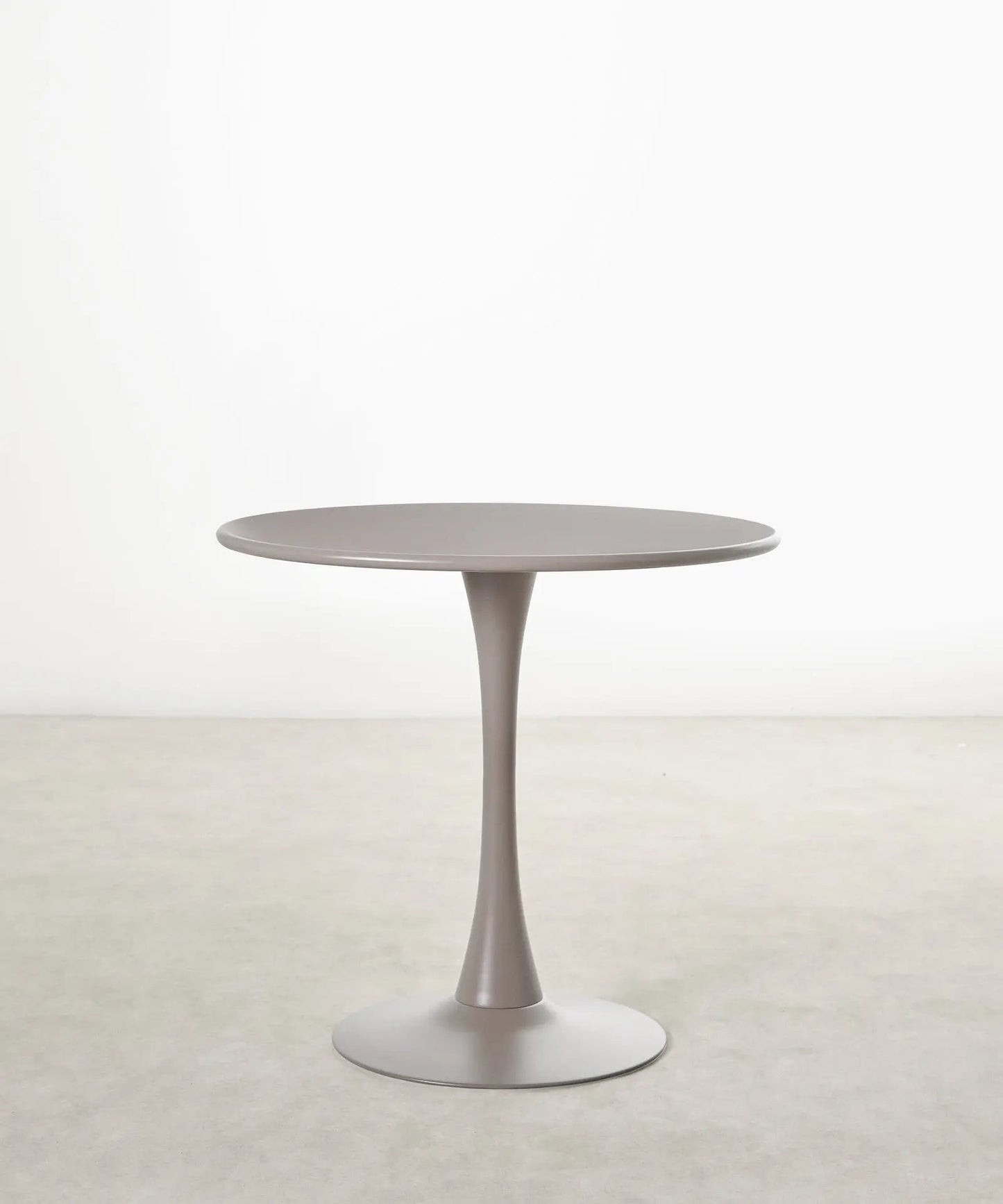 It is made of metal, coated in white lacquered fiberglass, with a smooth, glossy top. Ideal for dining rooms, kitchens, or contemporary spaces, its round surface encourages conversation and creates a warm, balanced atmosphere.
