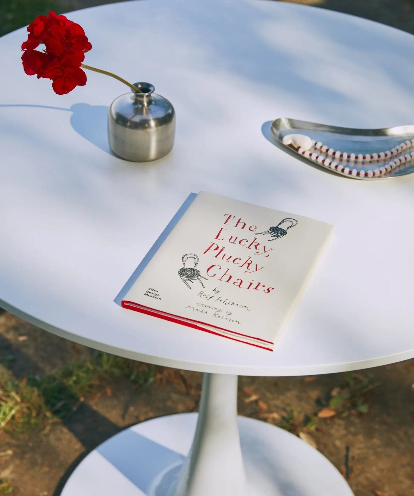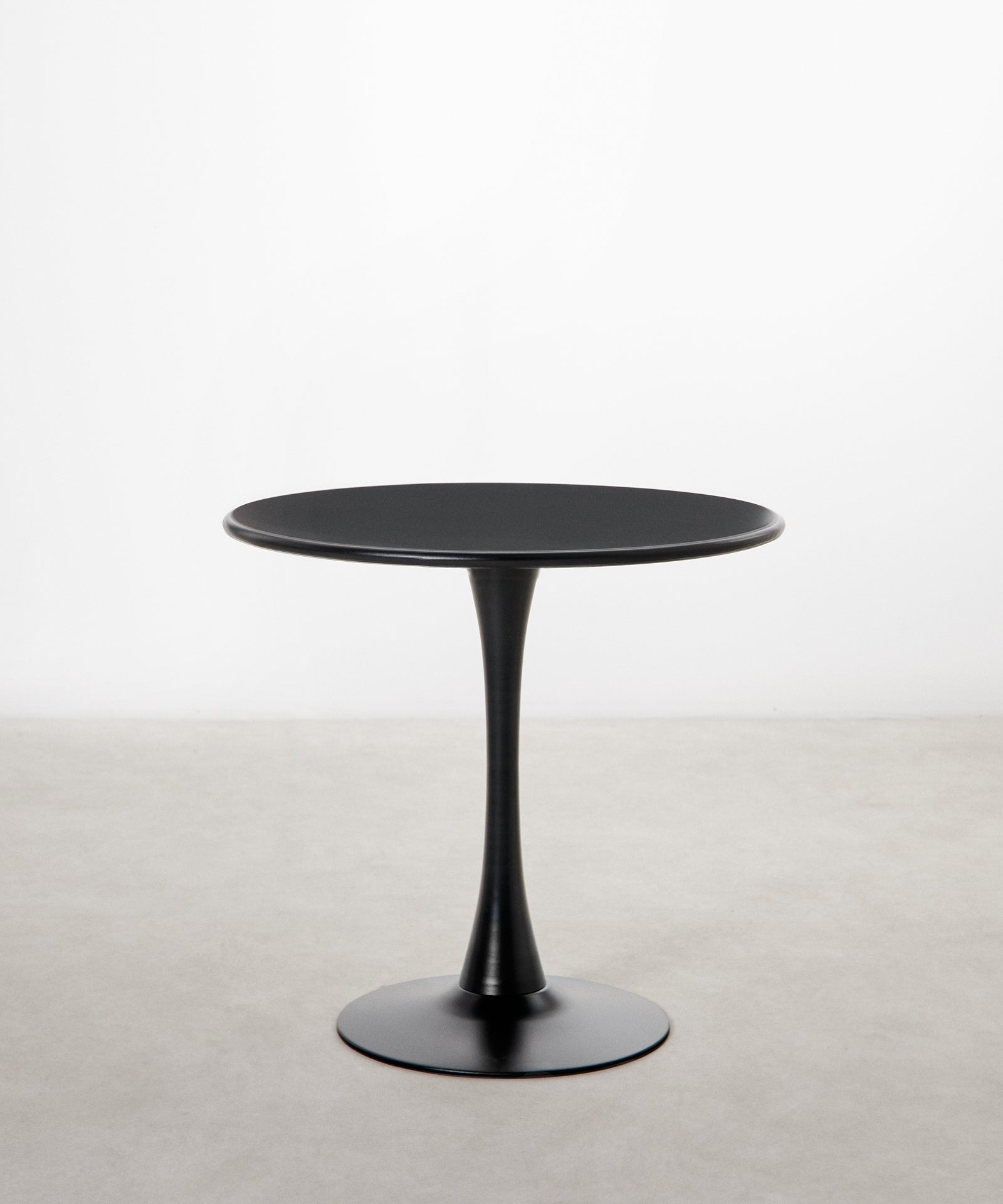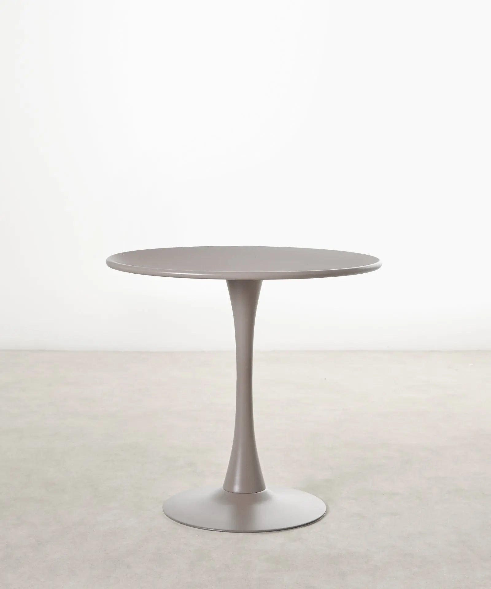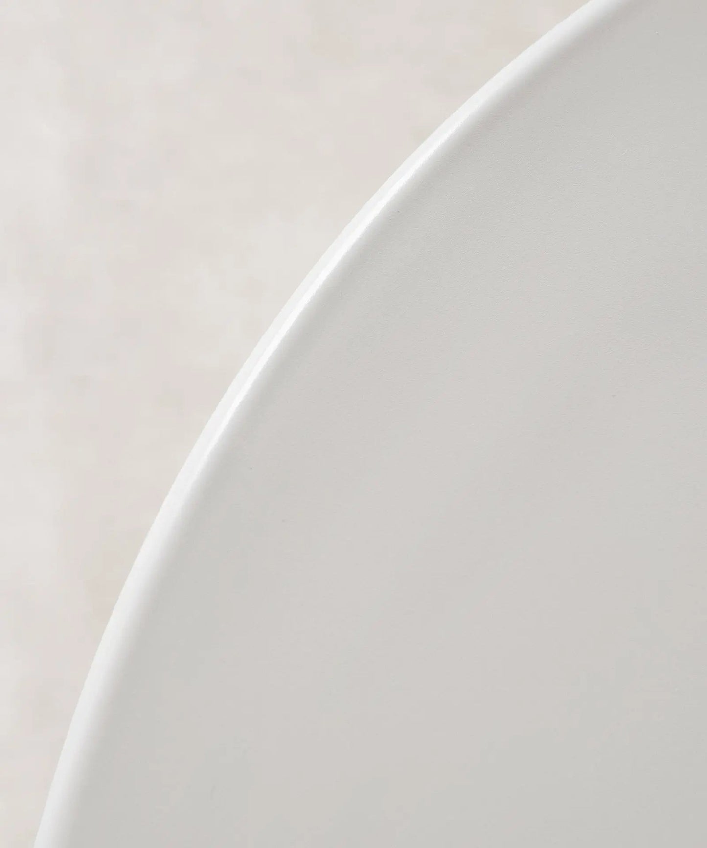 It is made of metal, coated in white lacquered fiberglass, with a smooth, glossy top. Ideal for dining rooms, kitchens, or contemporary spaces, its round surface encourages conversation and creates a warm, balanced atmosphere.