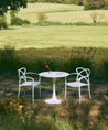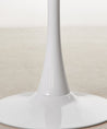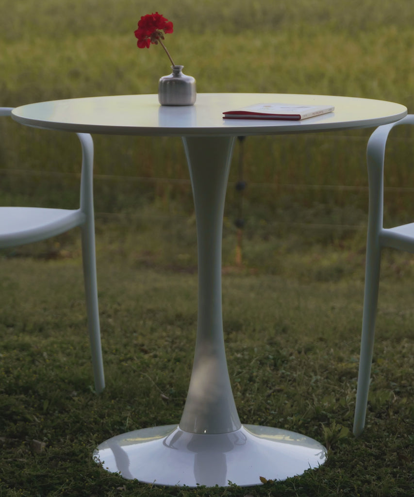 The Tulia round table is an icon of modern design, recognizable by its stylized central base shaped like a chalice. Its minimalist and fluid aesthetic eliminates traditional legs, offering visual lightness and greater comfort when seated.