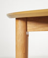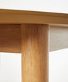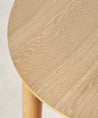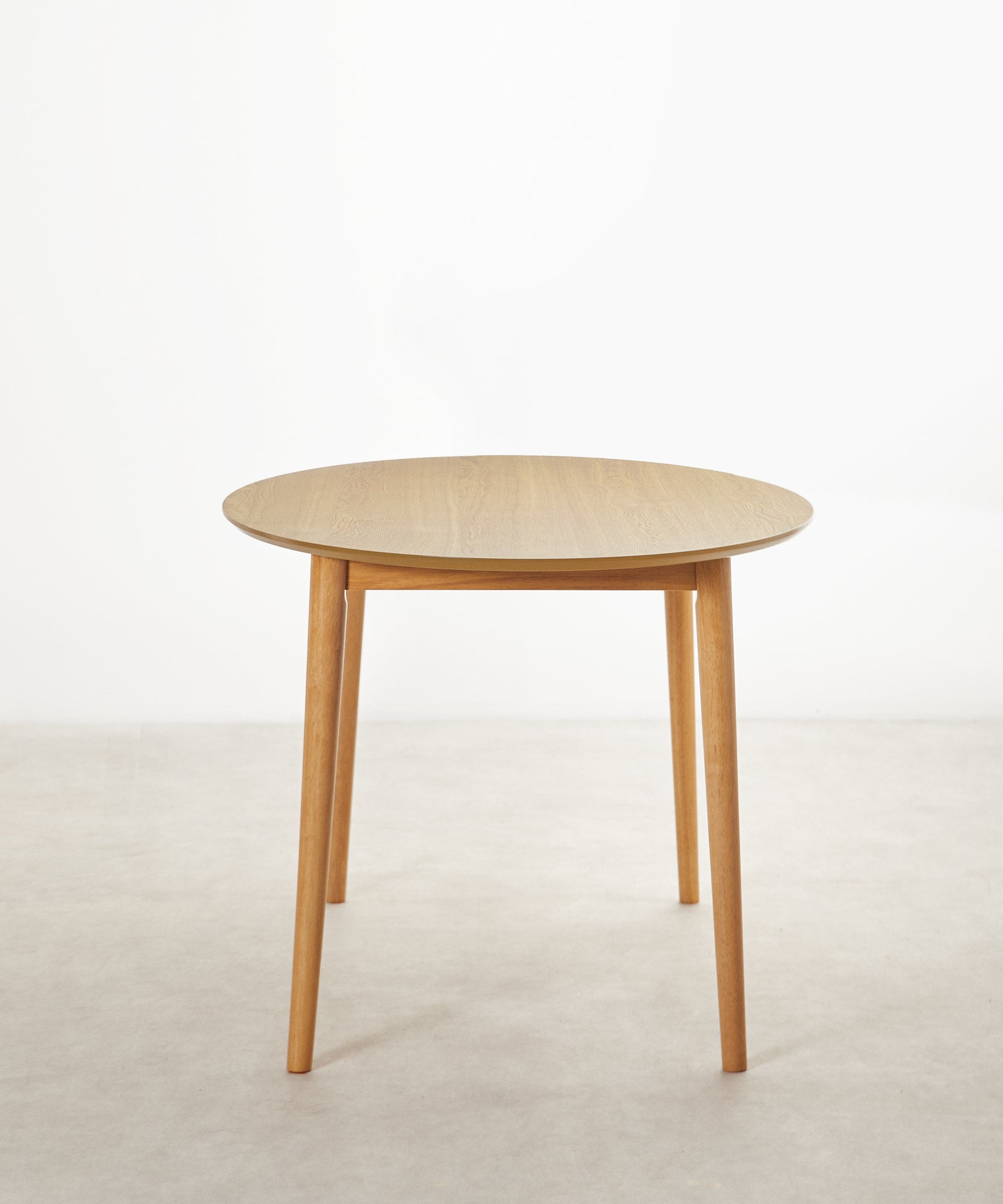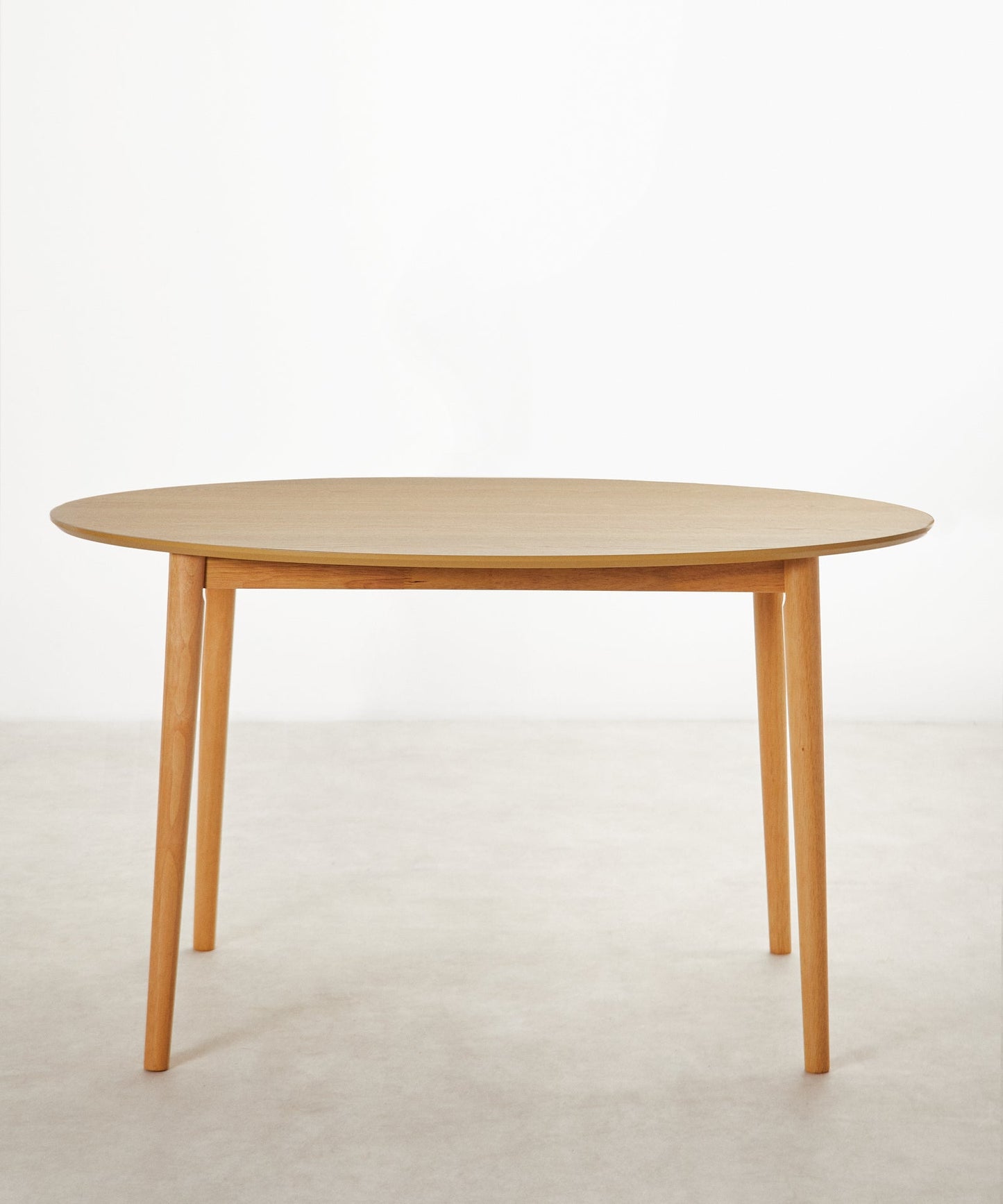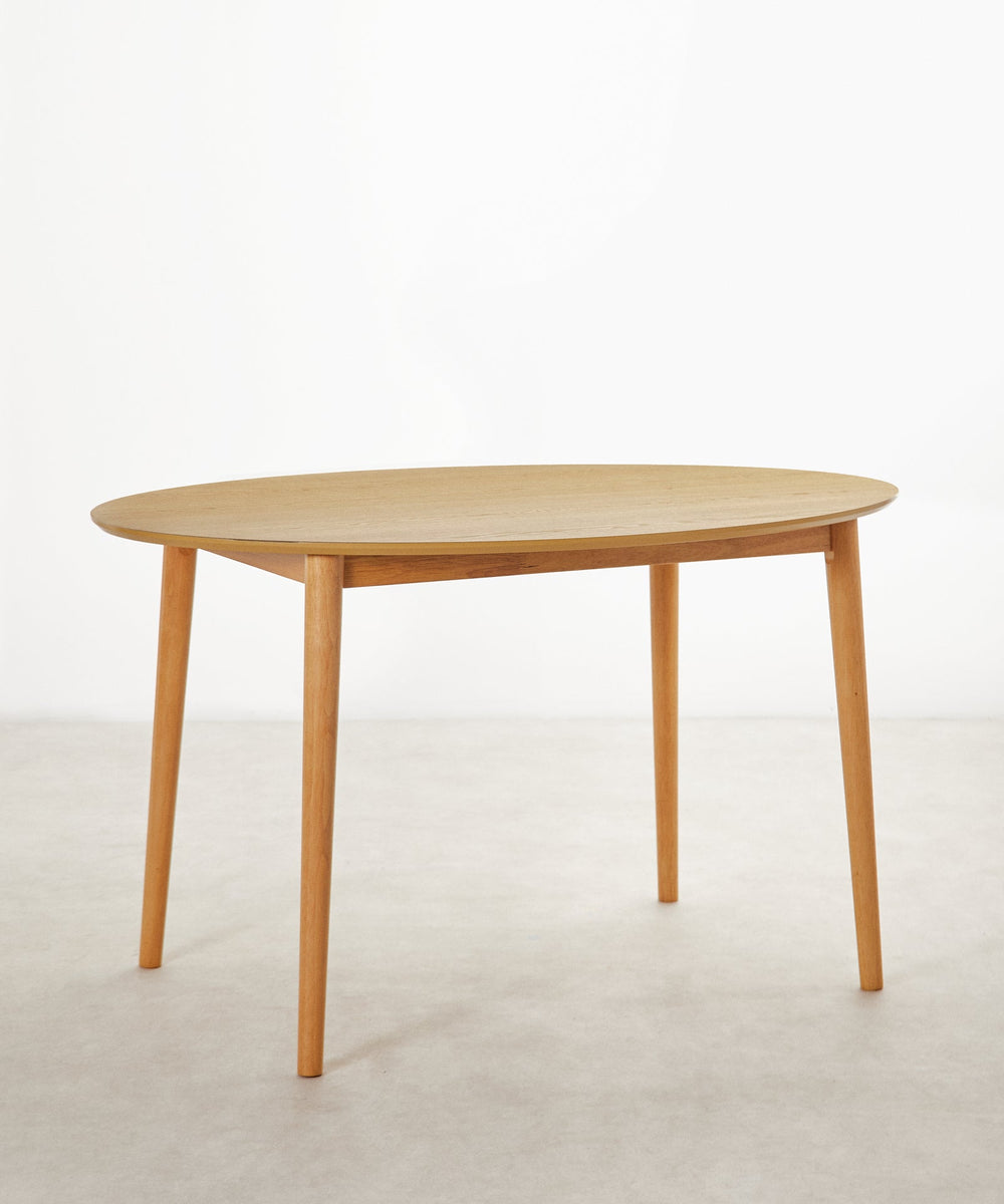 The oval tabletop is made of MDF with an oak veneer, offering an elegant, durable, and easy-to-maintain finish. The solid wood legs ensure stability and strength, while the rounded edges add visual softness and everyday safety.