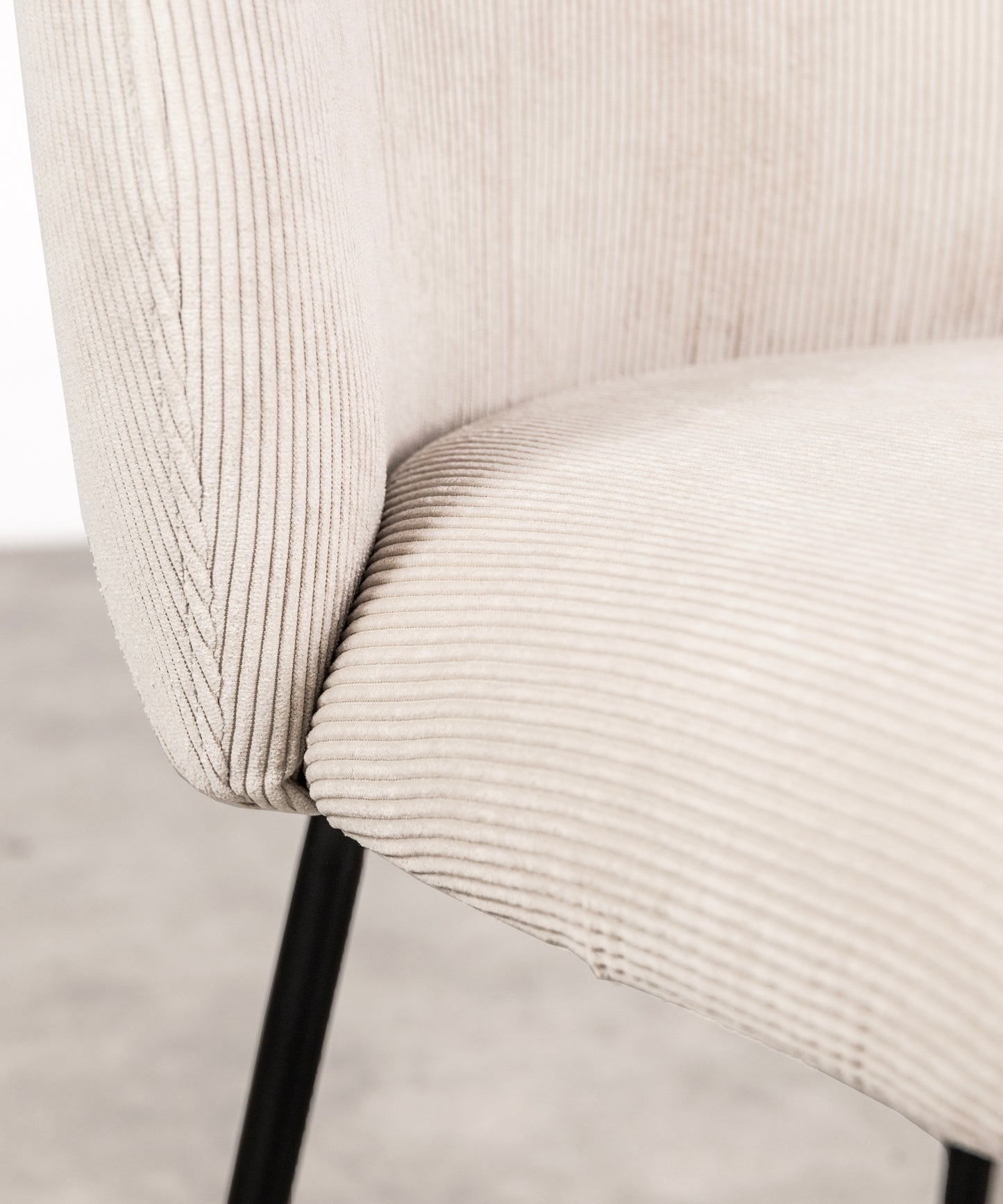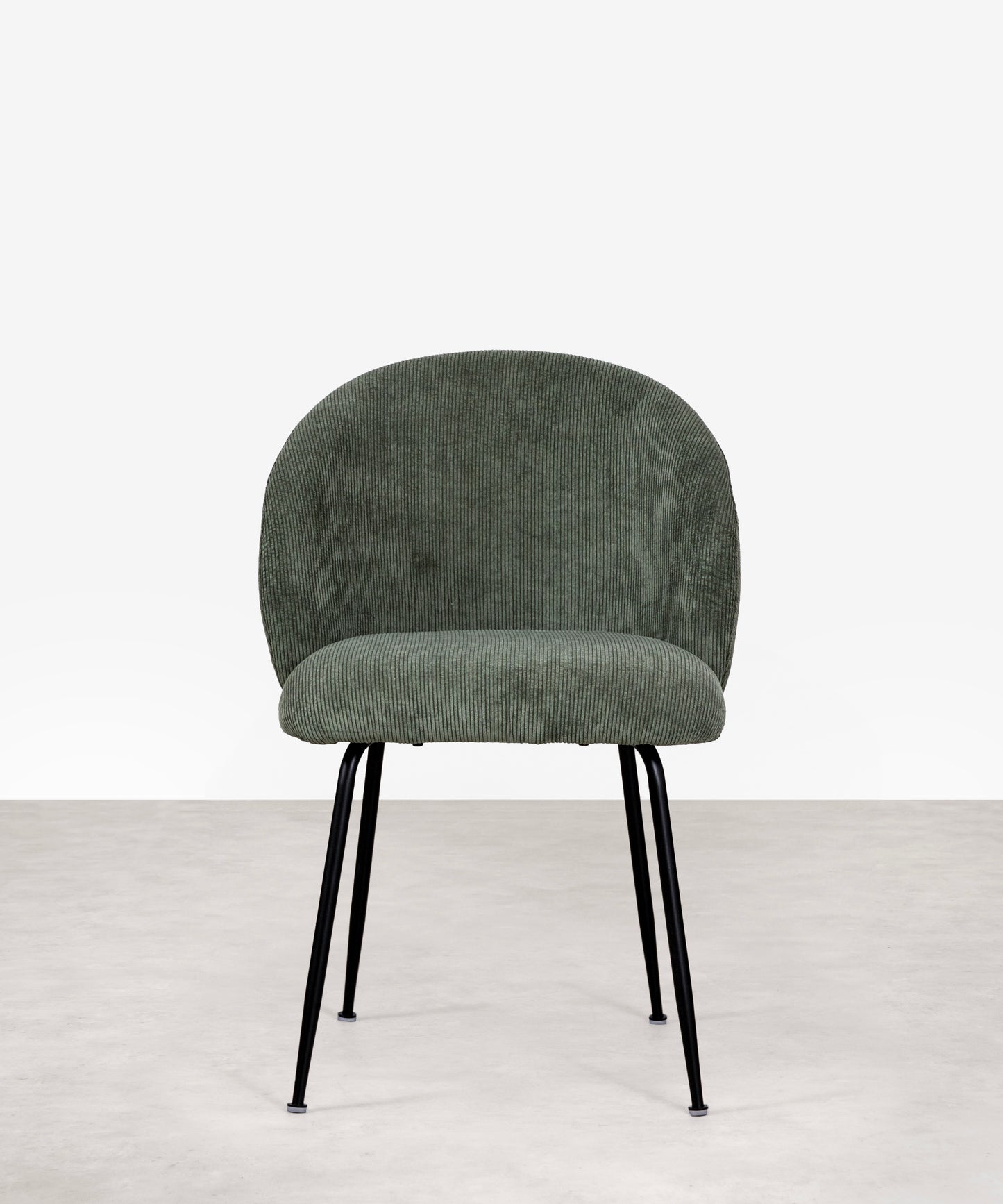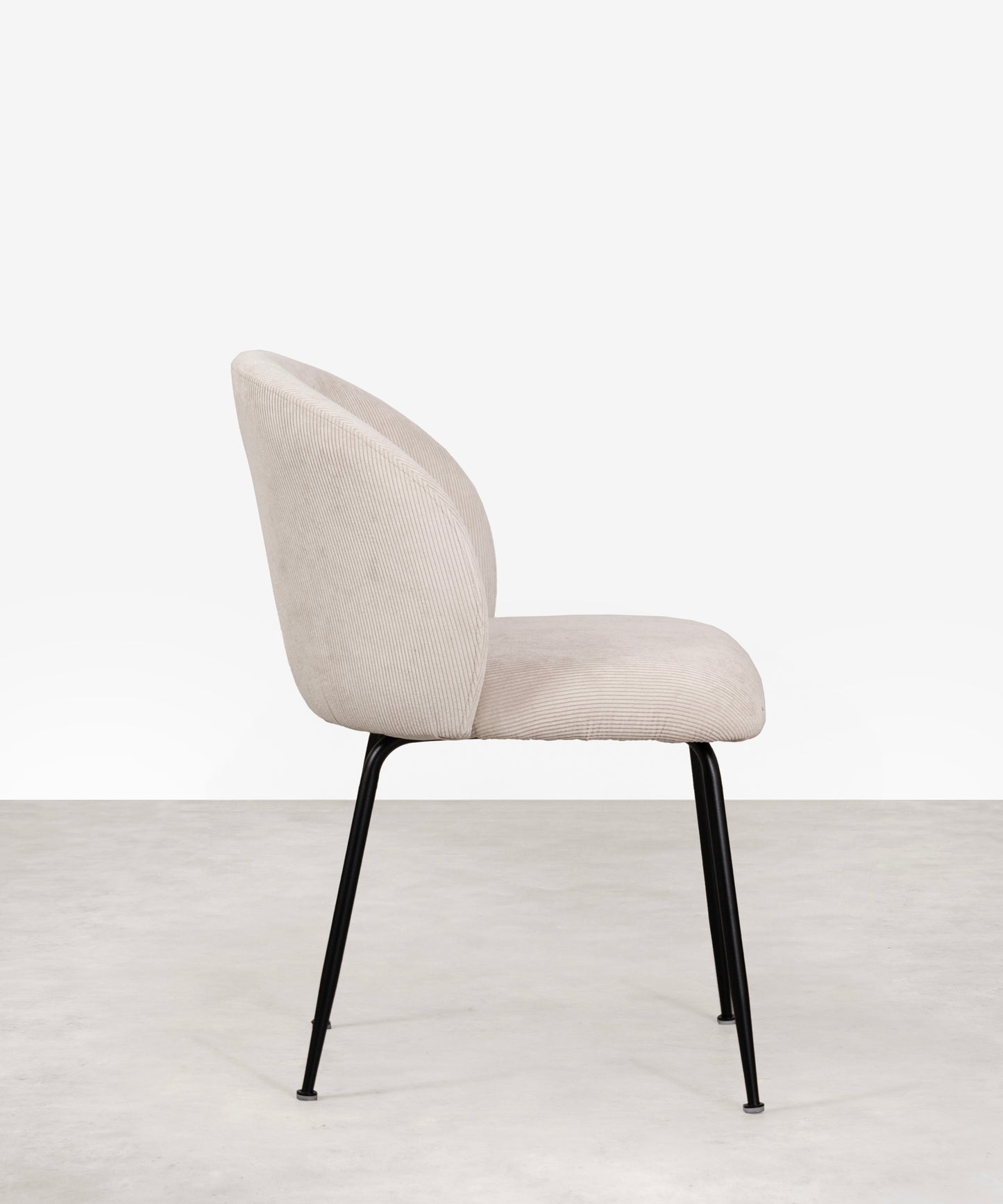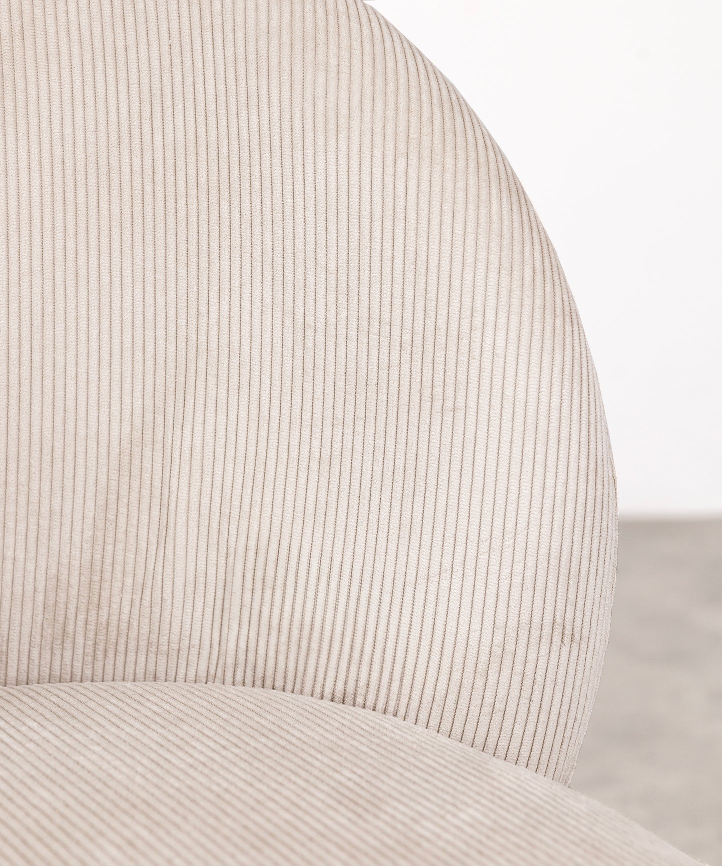 The Agnes chair combines a modern design with a classic touch, thanks to its corduroy upholstery Its rounded and enveloping shape ensures a comfortable and ergonomic experience