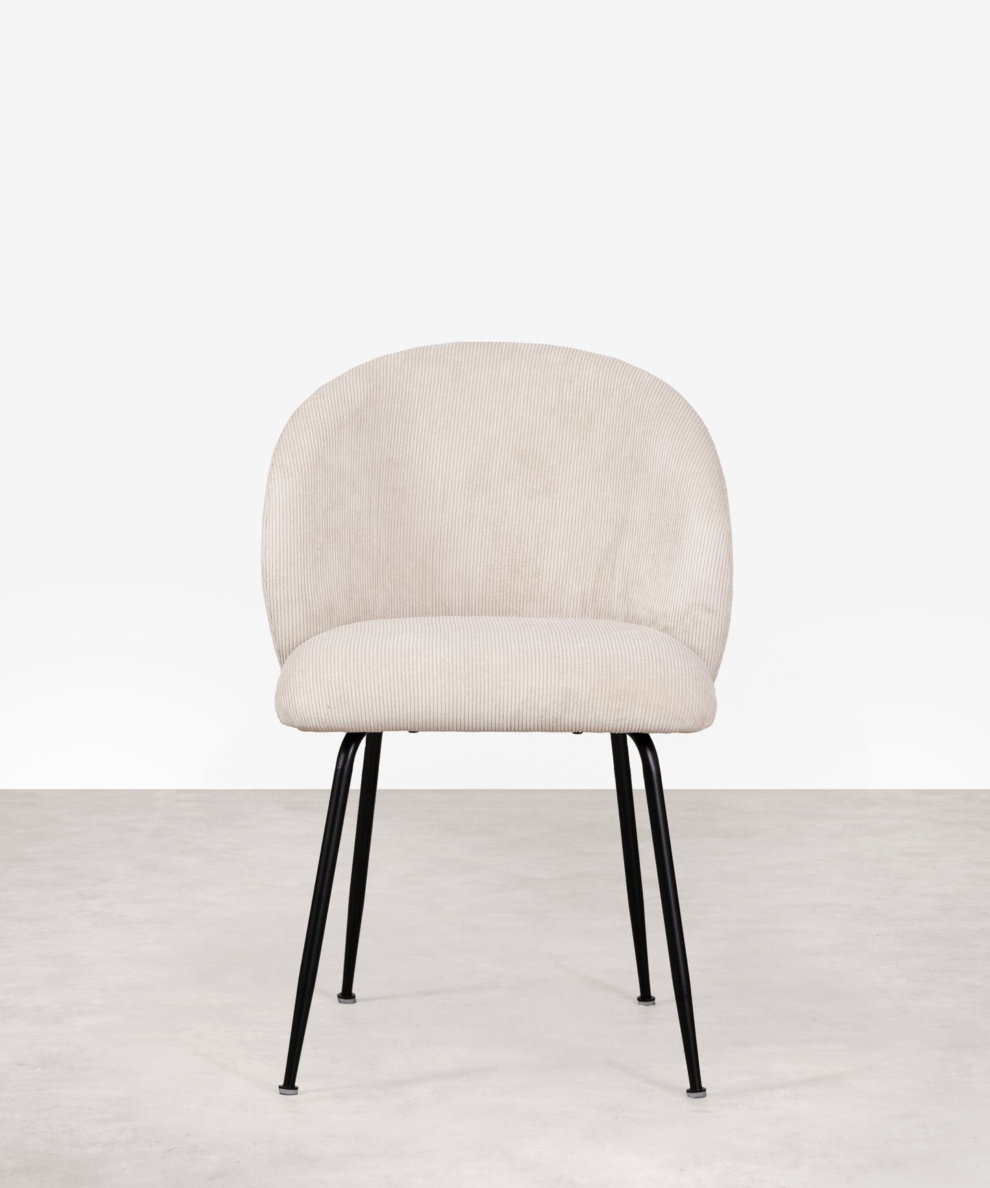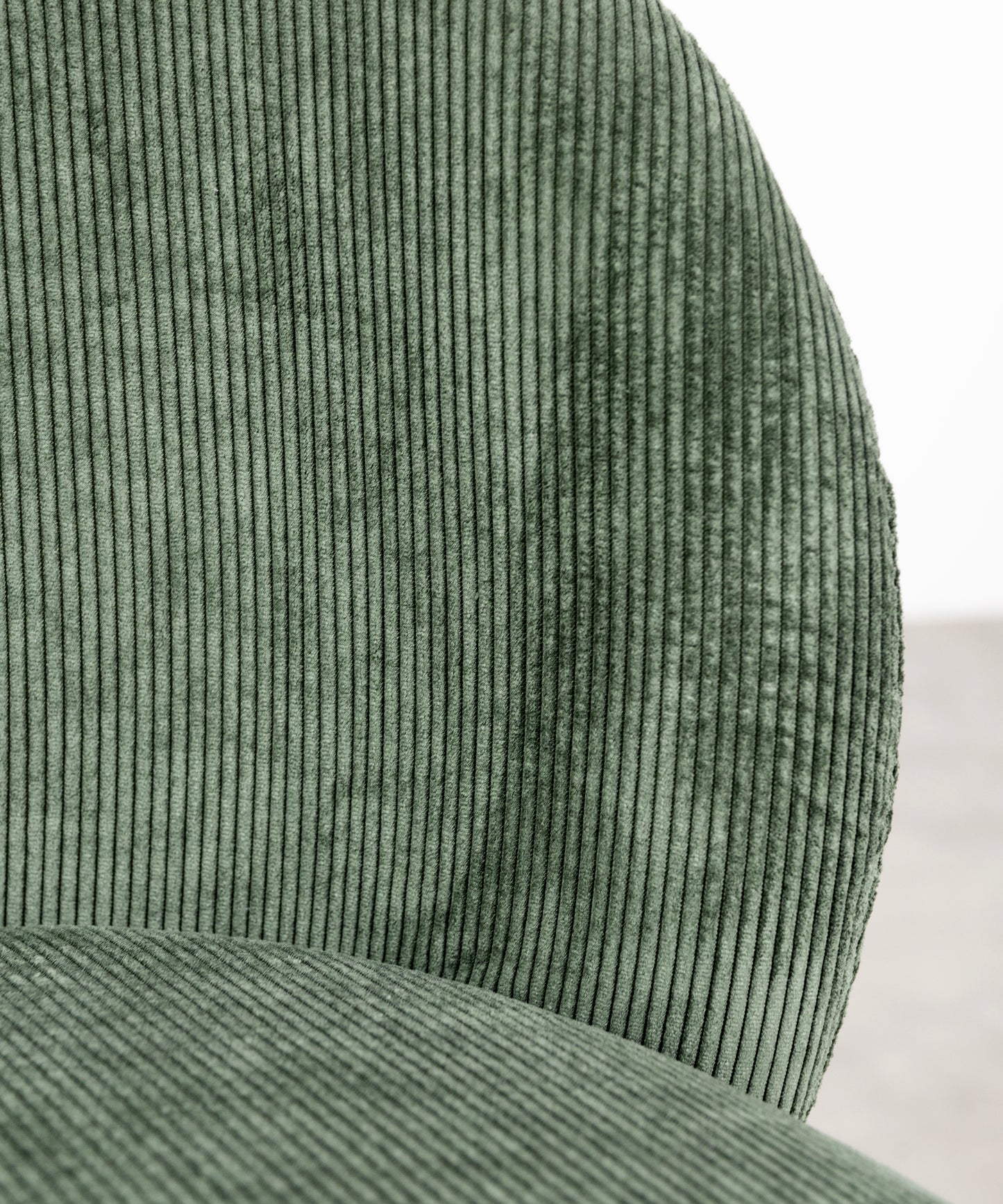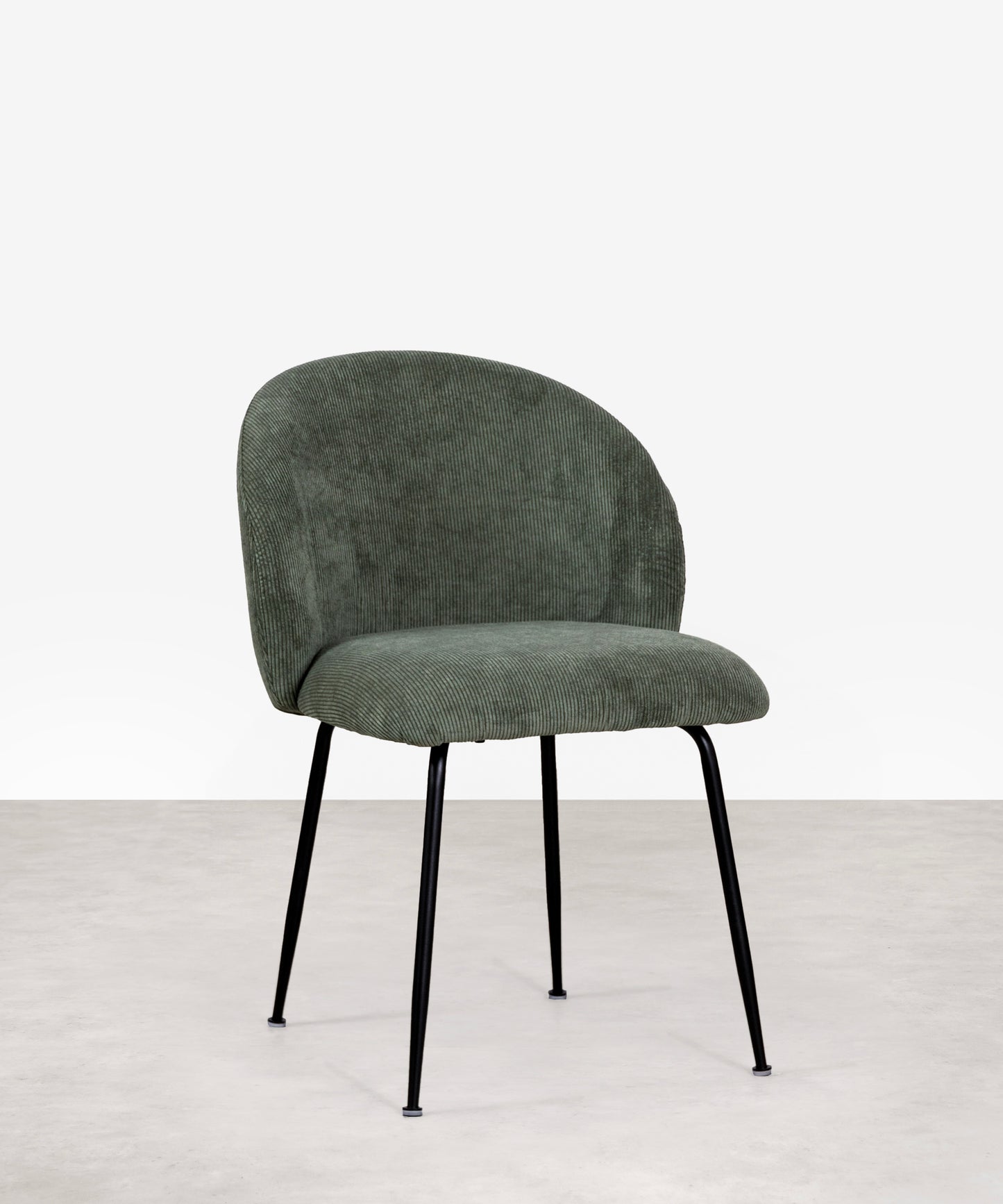 The Agnes chair combines a modern design with a classic touch, thanks to its corduroy upholstery Its rounded and enveloping shape ensures a comfortable and ergonomic experience