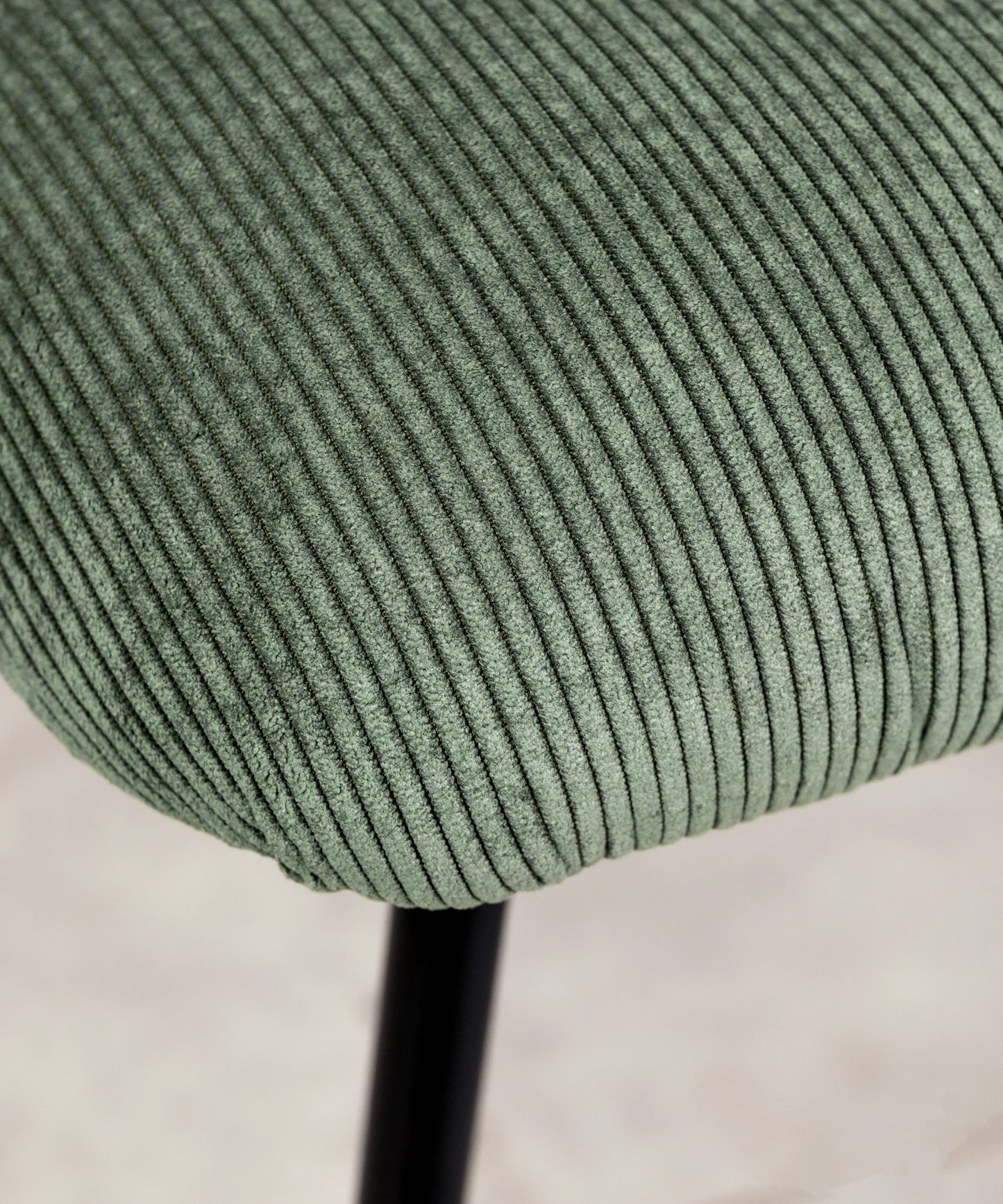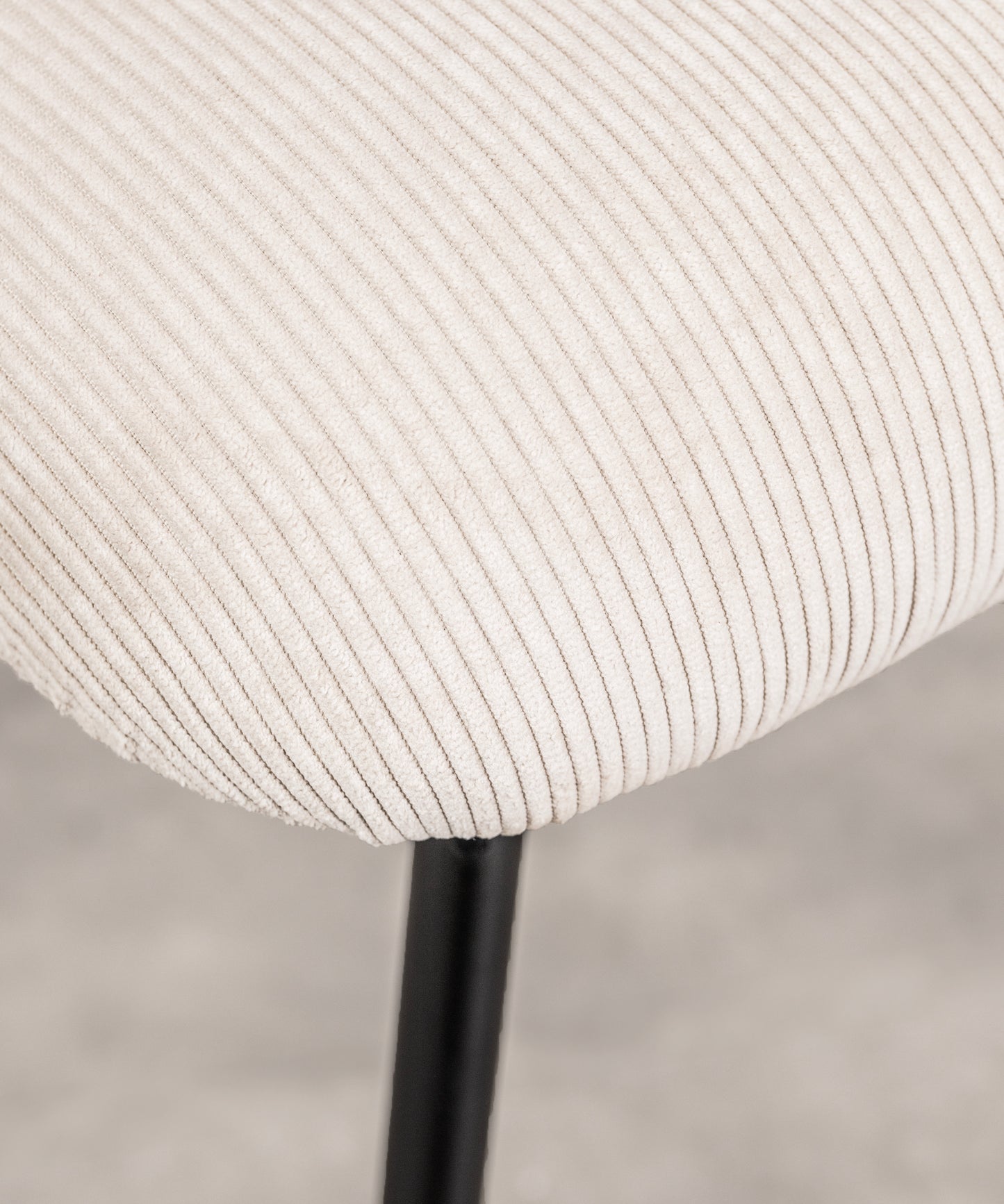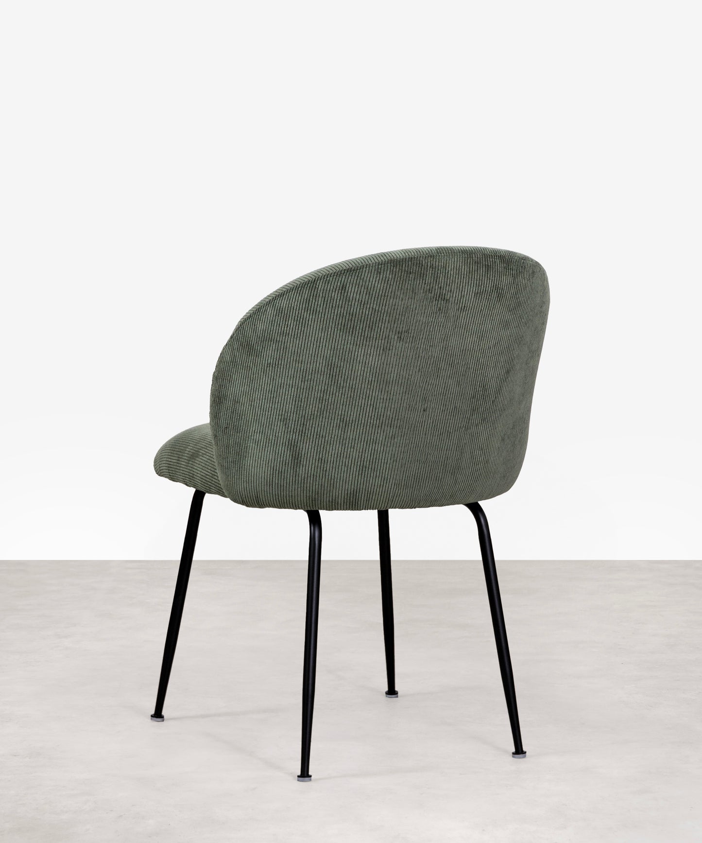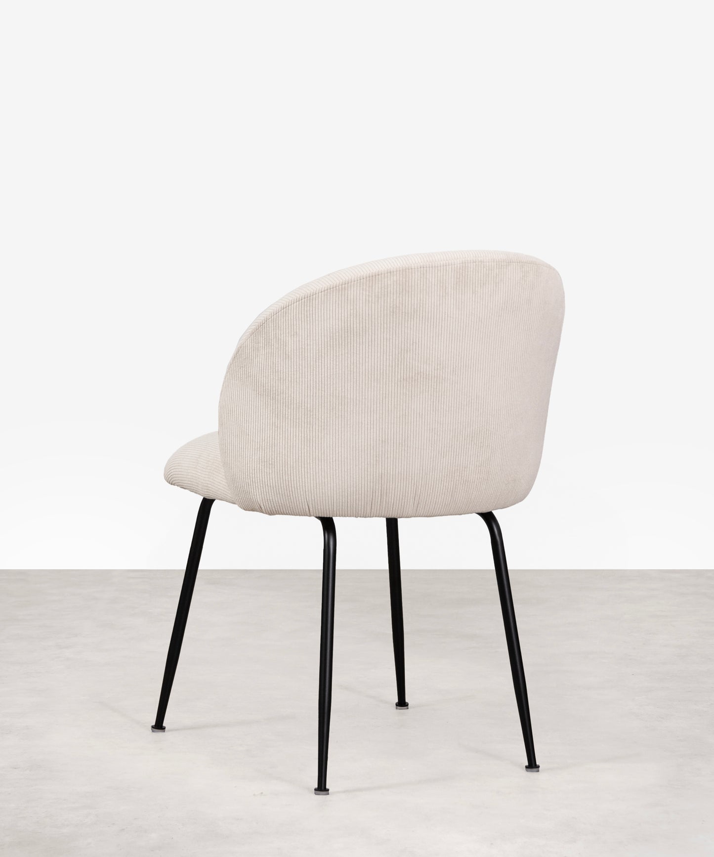 The Agnes chair combines a modern design with a classic touch, thanks to its corduroy upholstery Its rounded and enveloping shape ensures a comfortable and ergonomic experience