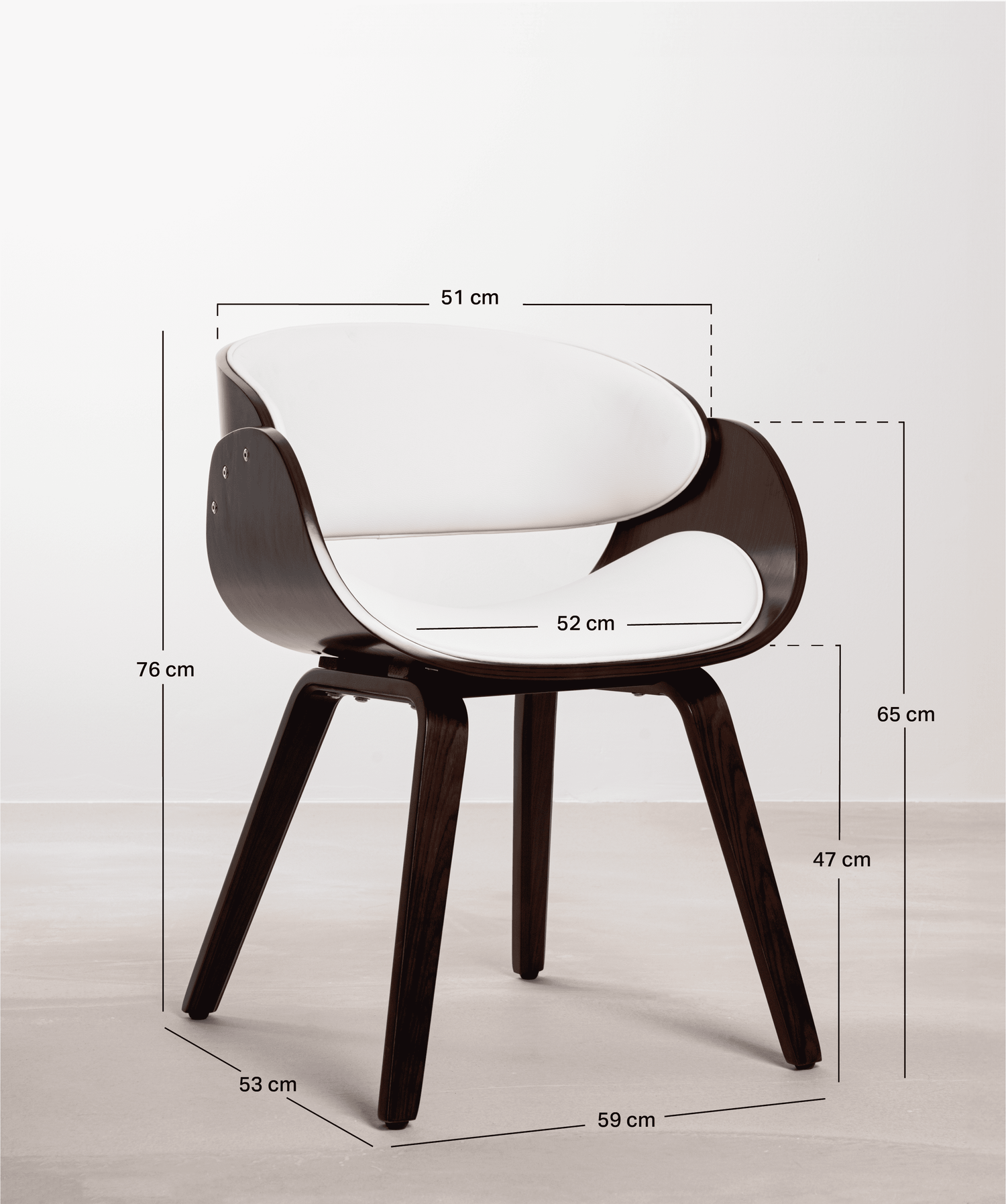 Consists of a wooden structure whose visible grain gives it a warmer and more natural appearance. A combination of Scandinavian and vintage style, with atypical curves and rivets on the back. You will definitely love it.
