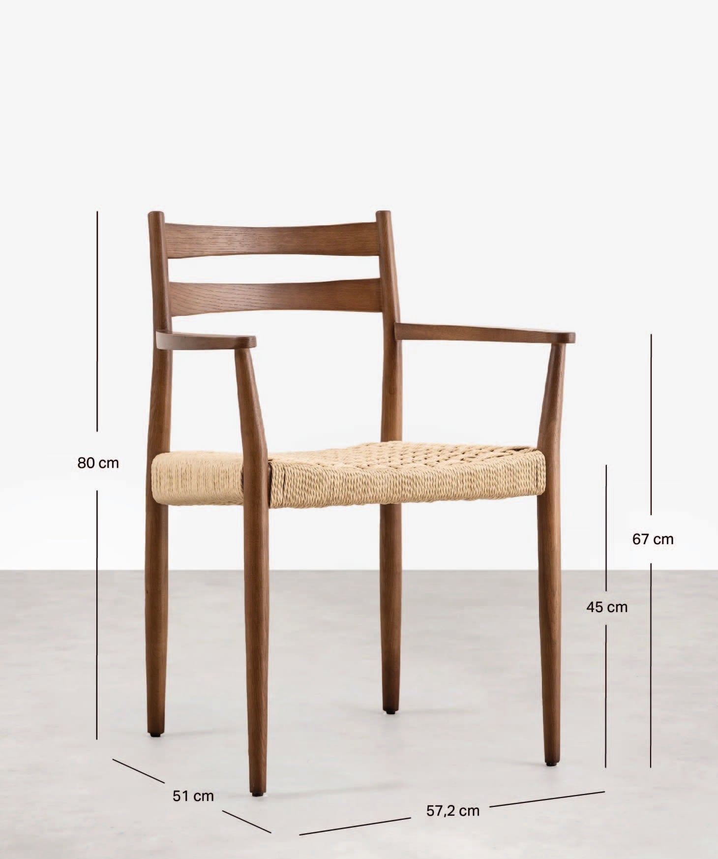 Dining Chair in Wood and Braided Rope with Armrests Nona Arms