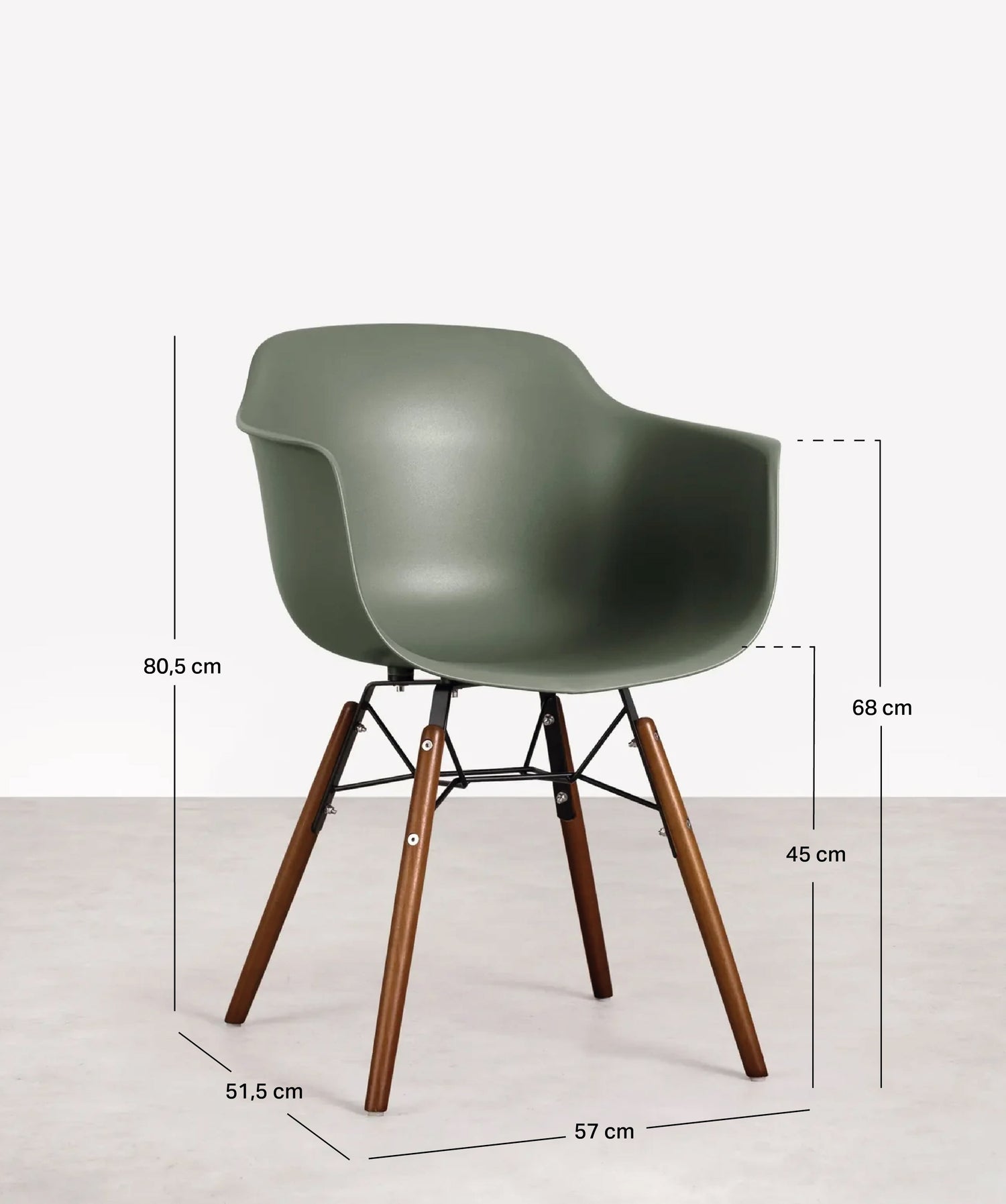 Polypropylene and Wood Chair with Armrests Elon Arms