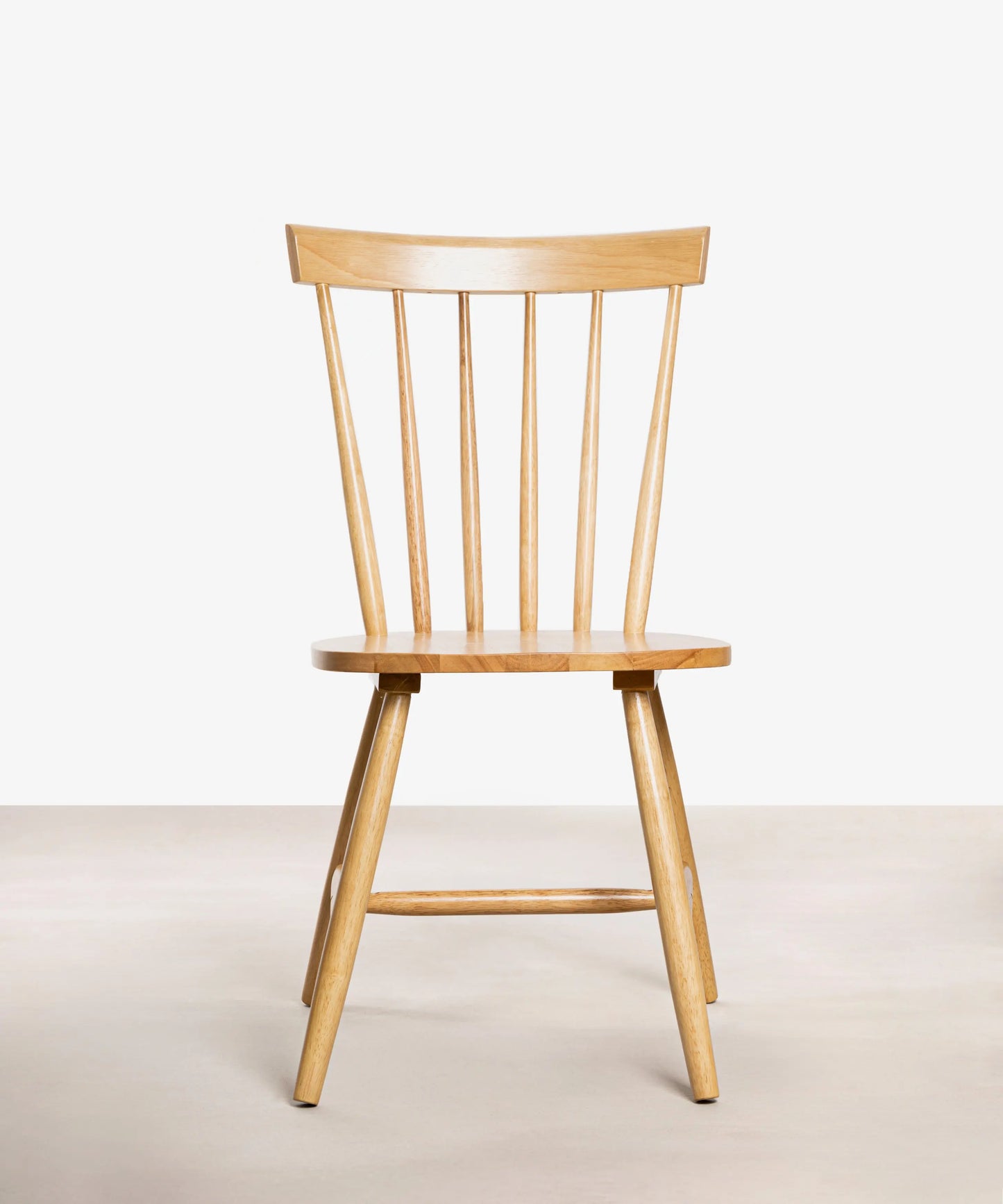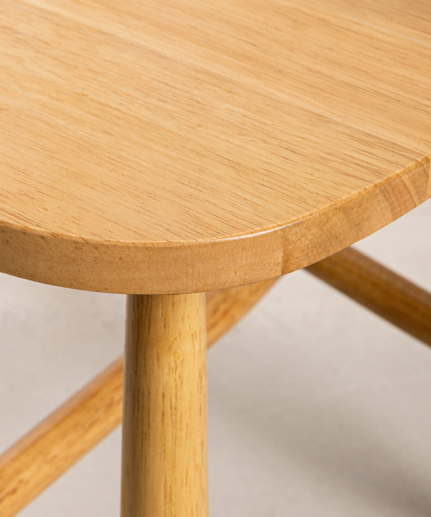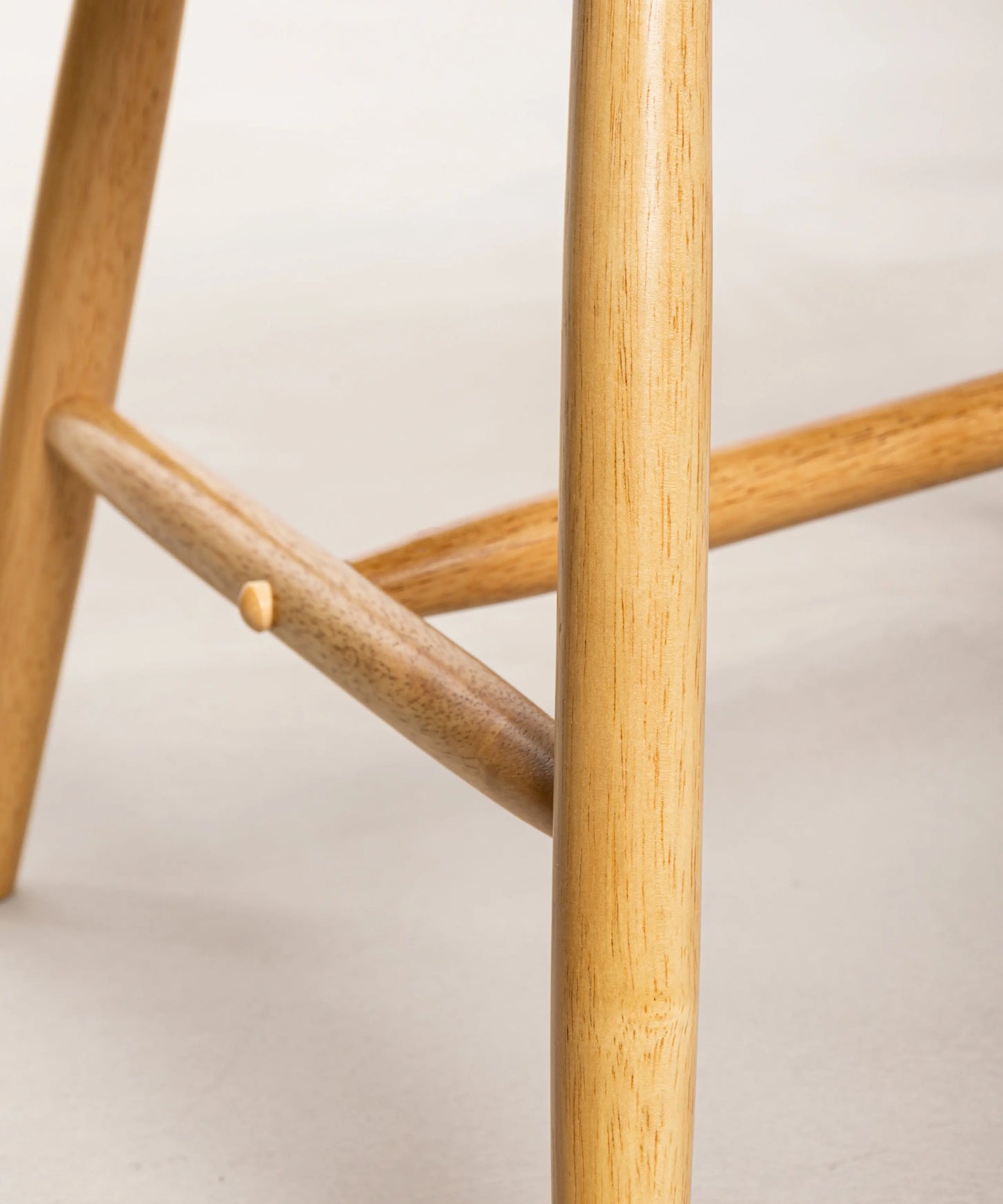 Its backrest with rods and its characteristic legs evoke the Nordic style of the 50s. Each rod is hand-carved, thus highlighting the authentic character of these chairs. Its oak wood structure is light and elegant.