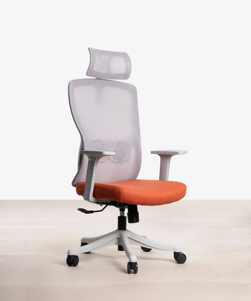 It combines a sturdy frame made of high-quality polypropylene with a soft polyester mesh backrest and a comfortable fabric seat. Ergonomic desk chair with lumbar support for correct posture.