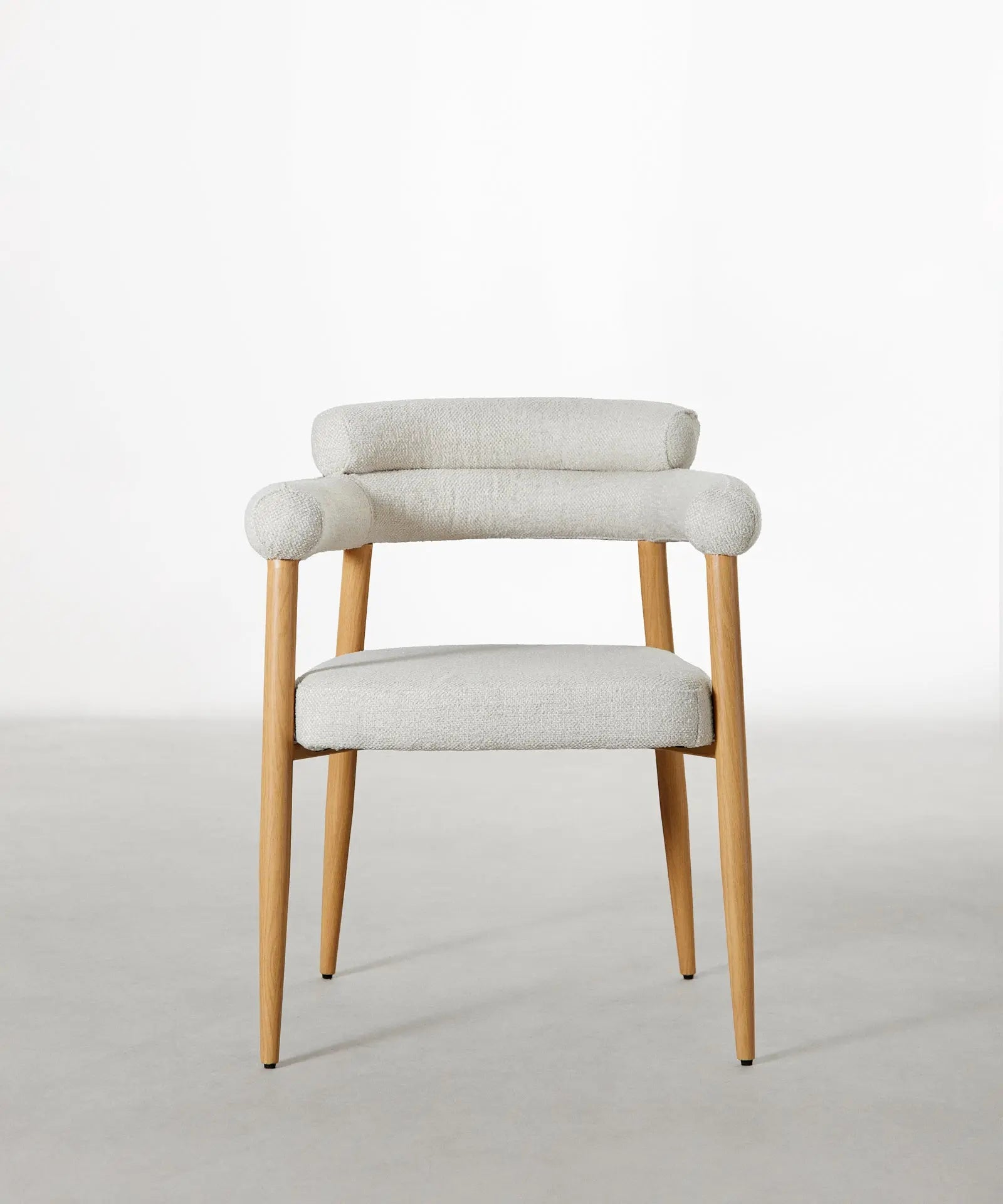 The Serena Chair combines a contemporary design with the elegance of natural materials. Its metallic structure adds warmth and sophistication, while the upholstered seat and backrest offer a harmonious and versatile contrast that adapts to different decorative styles.