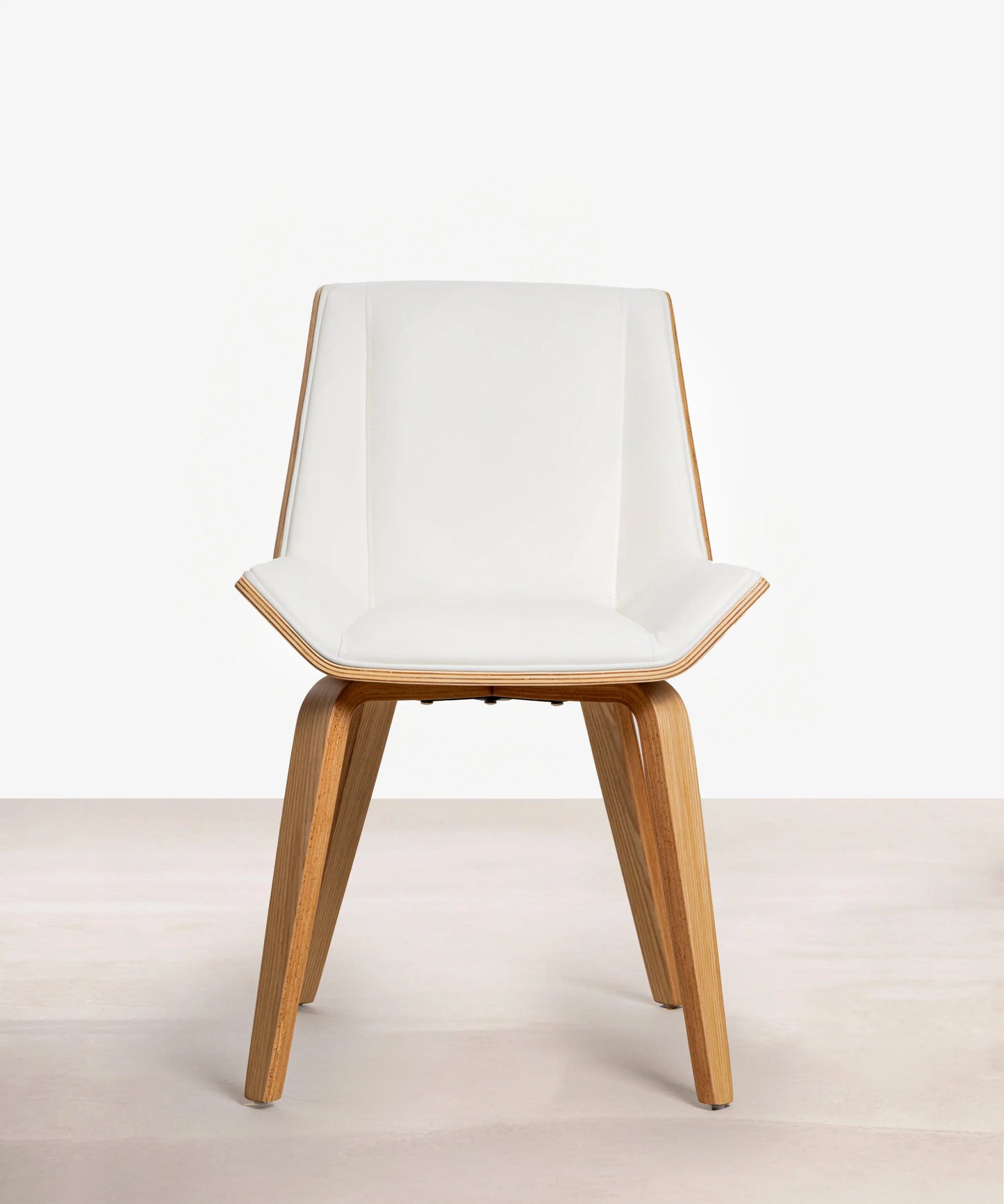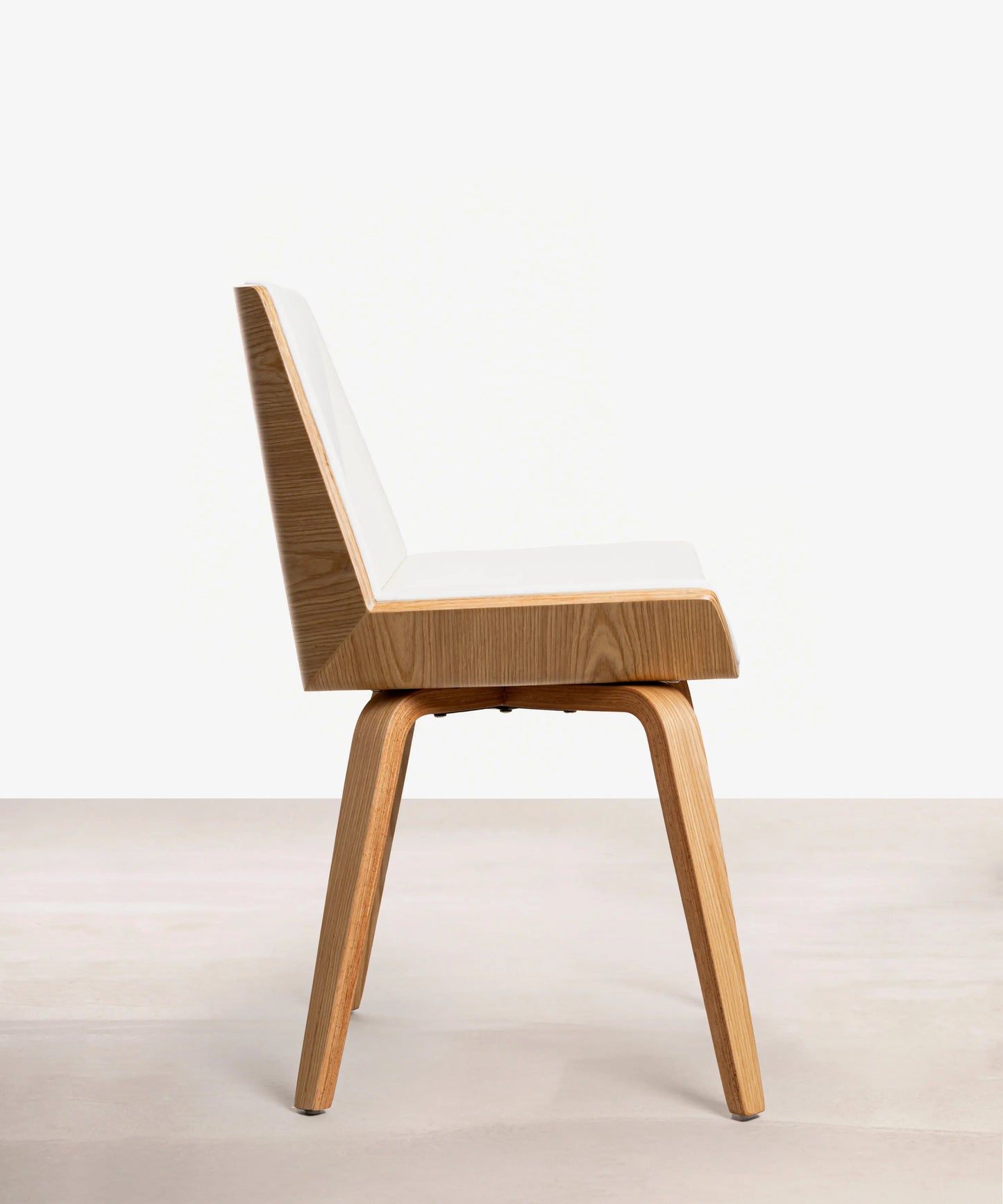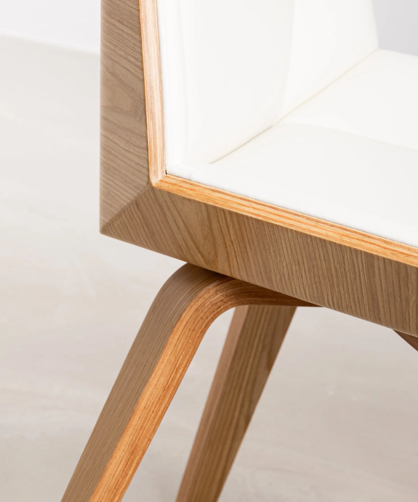 The Lyssa Chair consists of a wooden structure whose visible grain gives it a warm and natural appearance. Its particular design of symmetrical lines is a combination of Scandinavian and contemporary style.