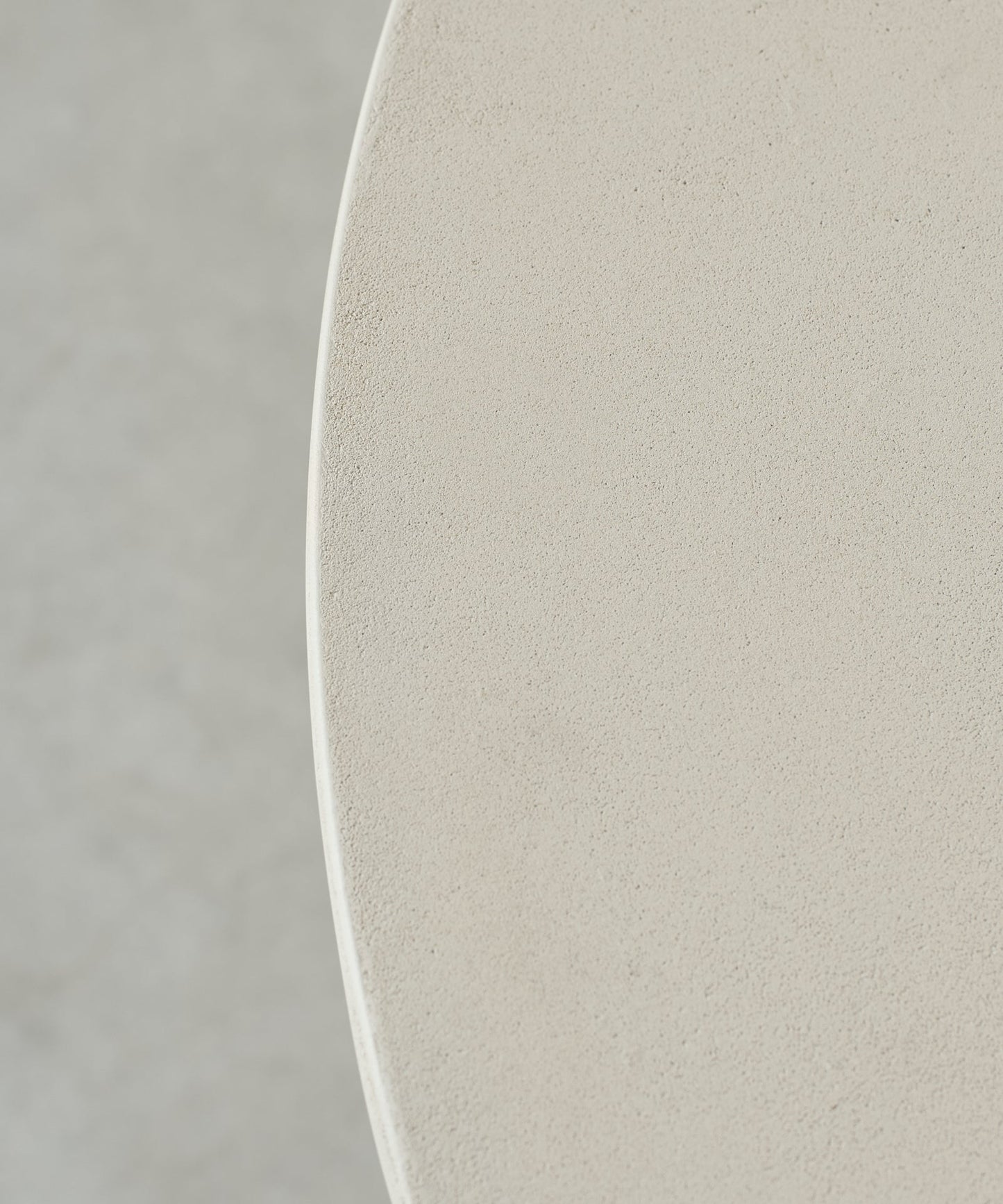 It is handcrafted in microcement, giving it a unique and high-quality finish. Perfect for dining rooms or meeting spaces looking for a timeless piece with personality.