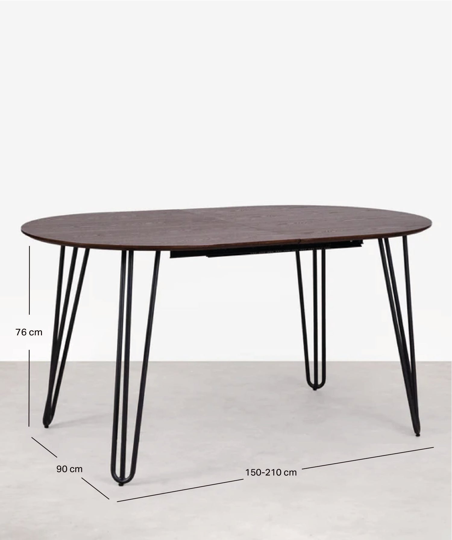 Extendable Oval Dining Table in Wood and Metal Karen (150-210 cm)