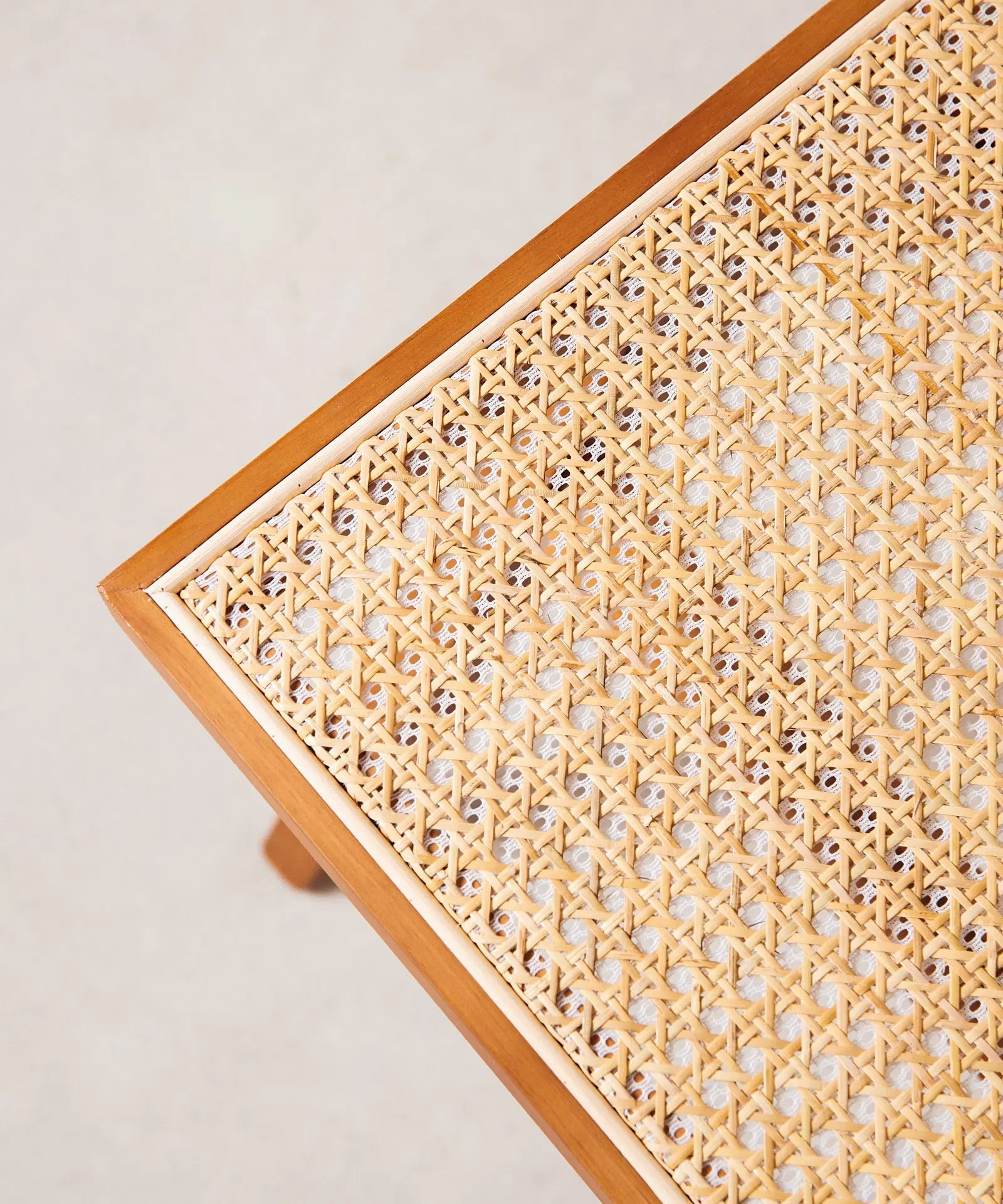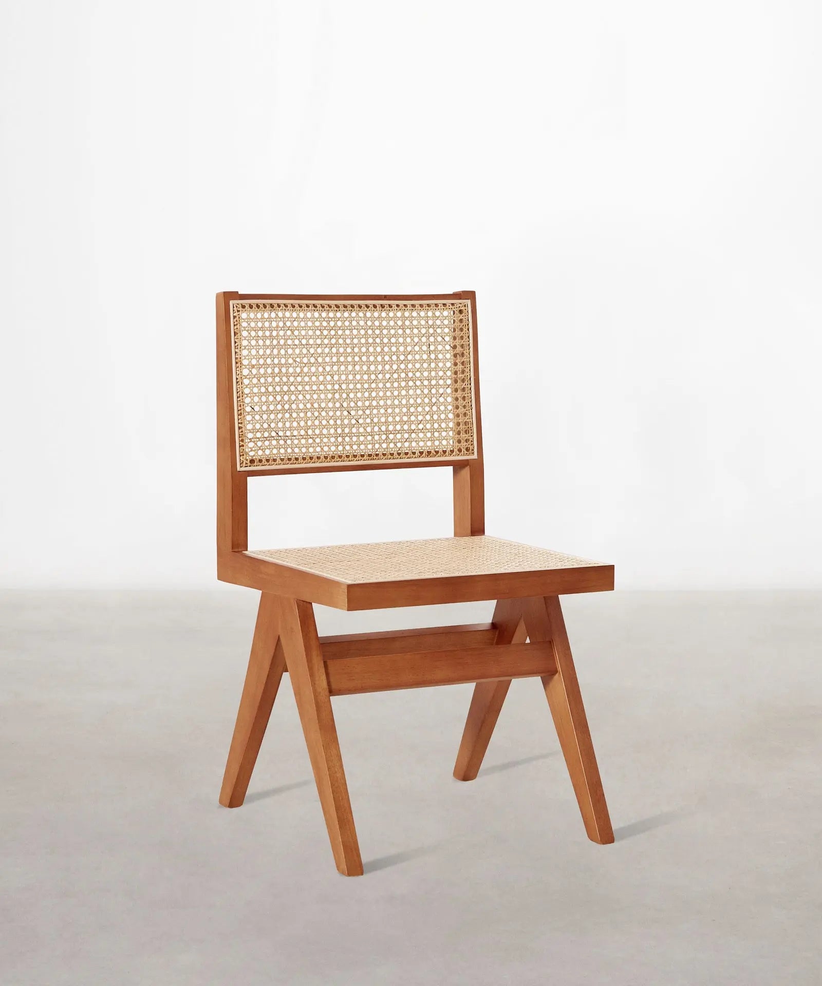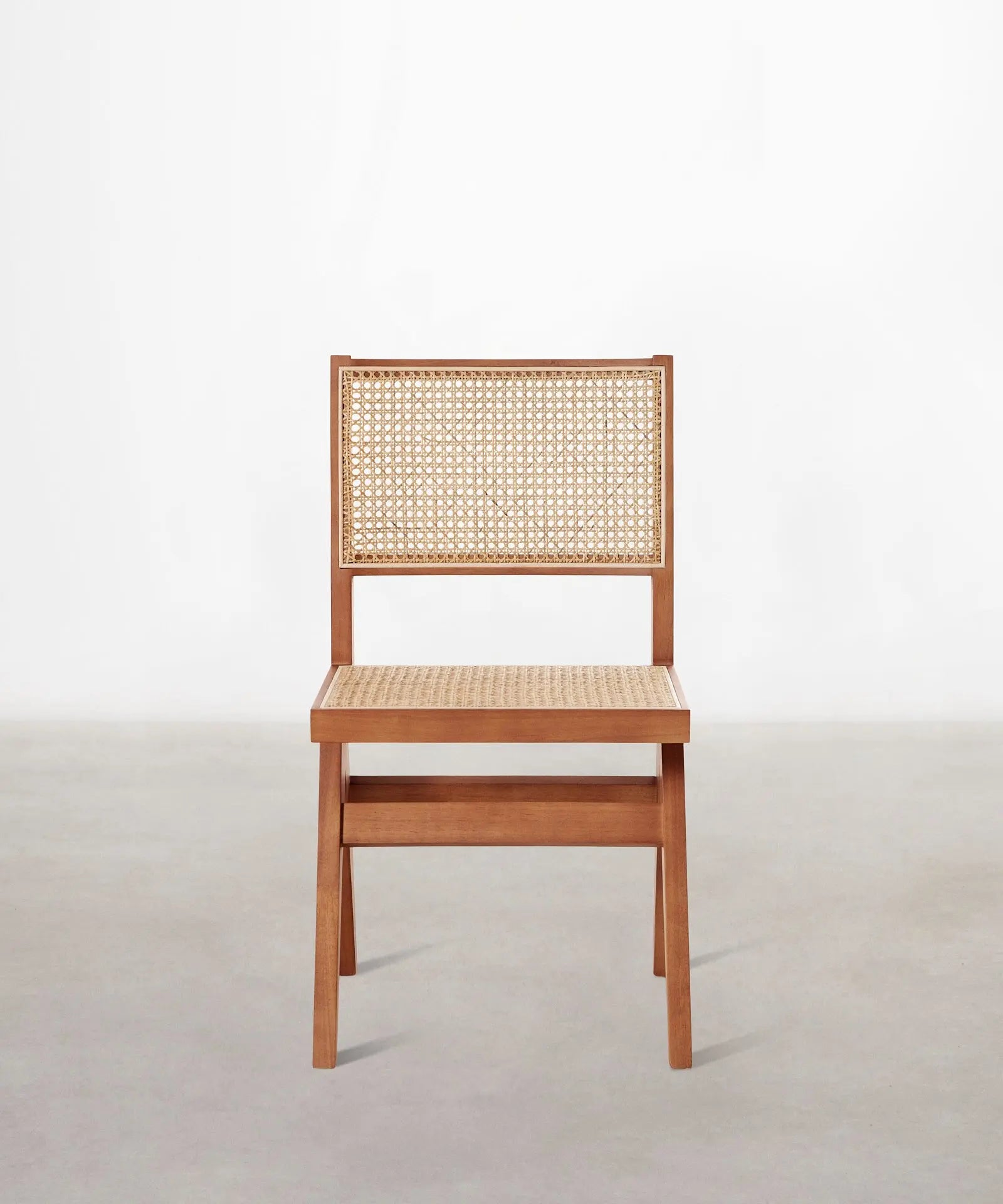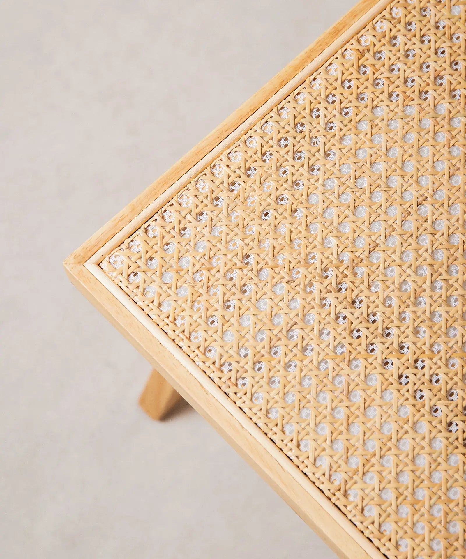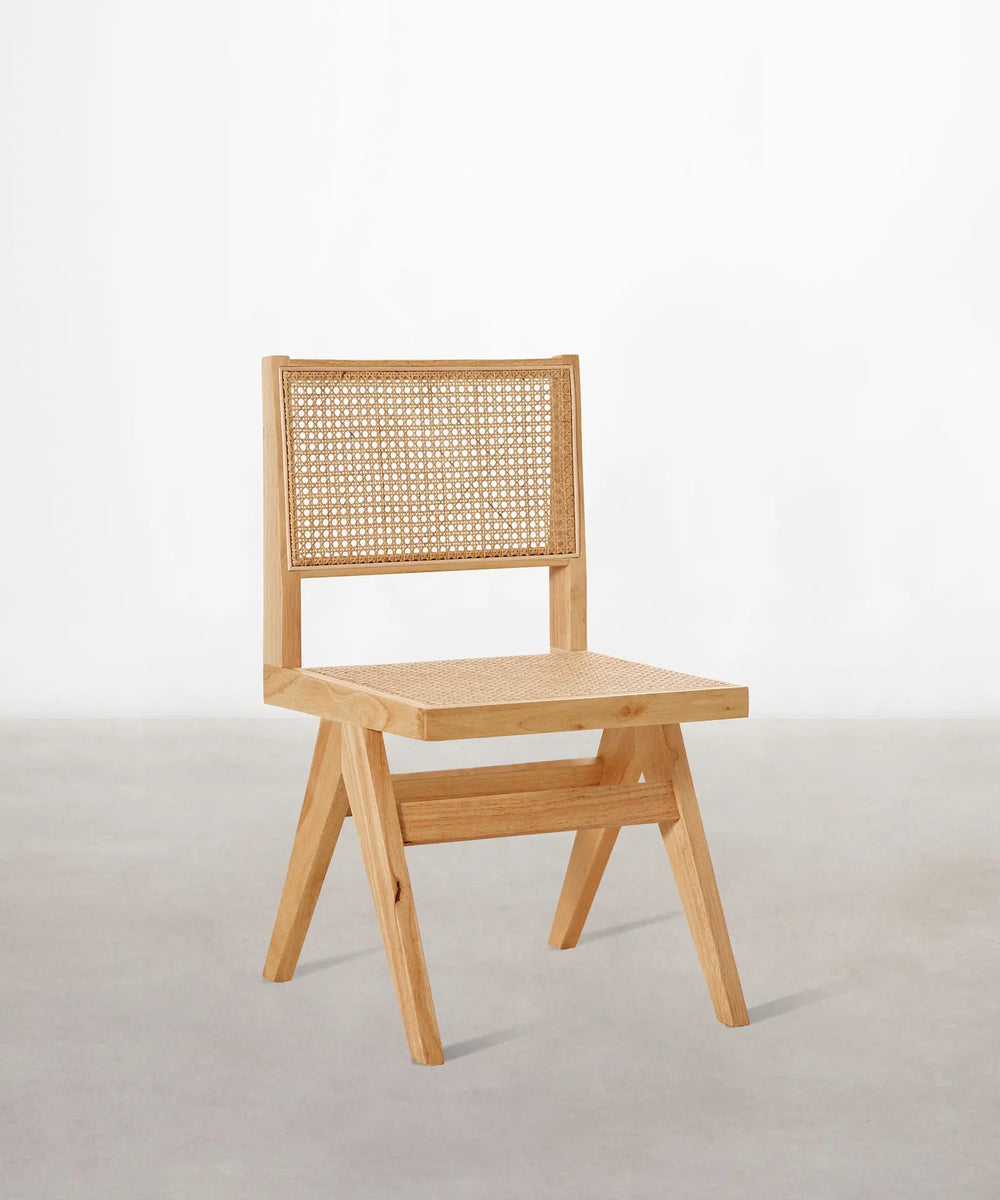 Its structure and backrest are made of robust natural ash wood that combines perfectly with its rattan-finished seat.