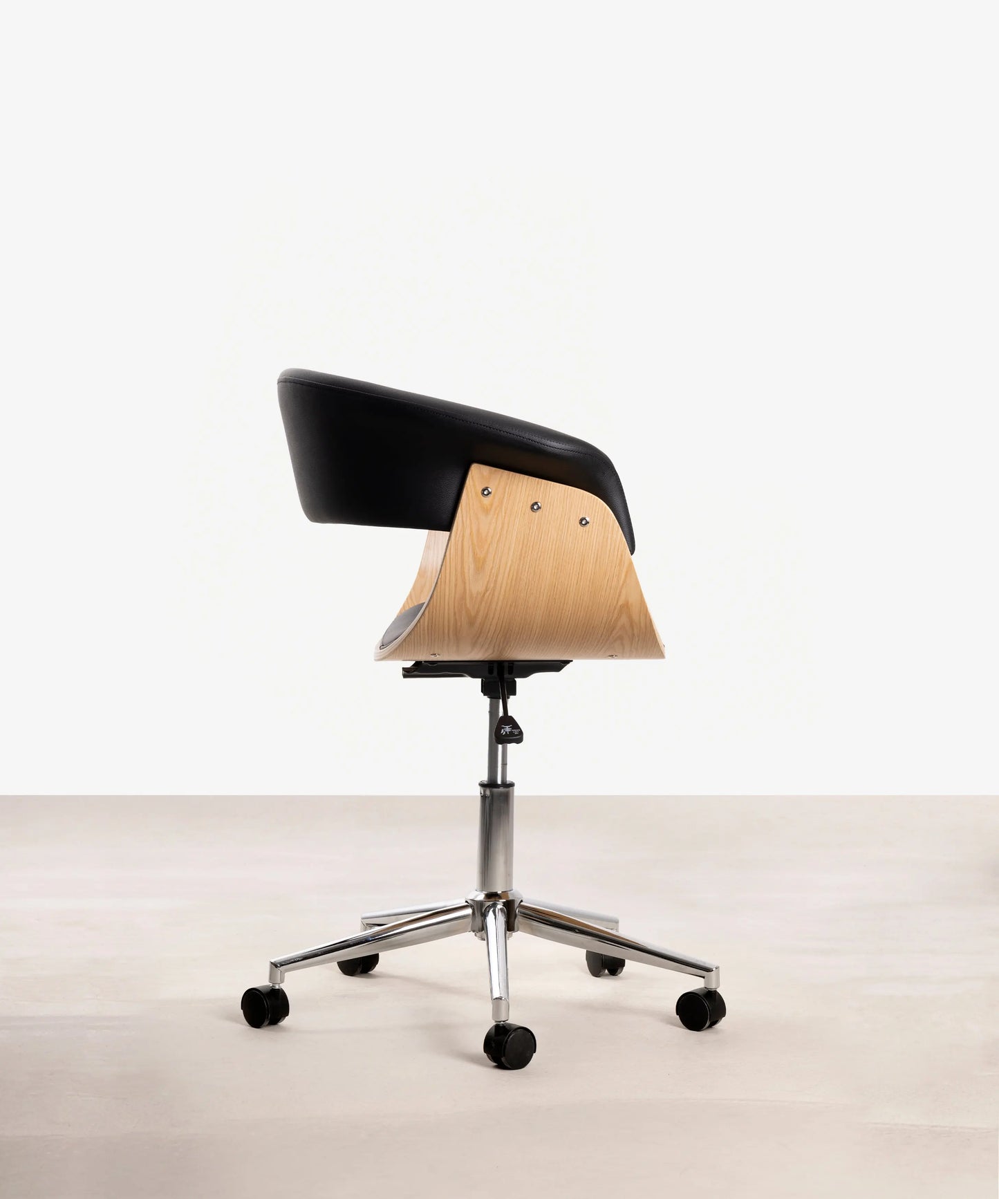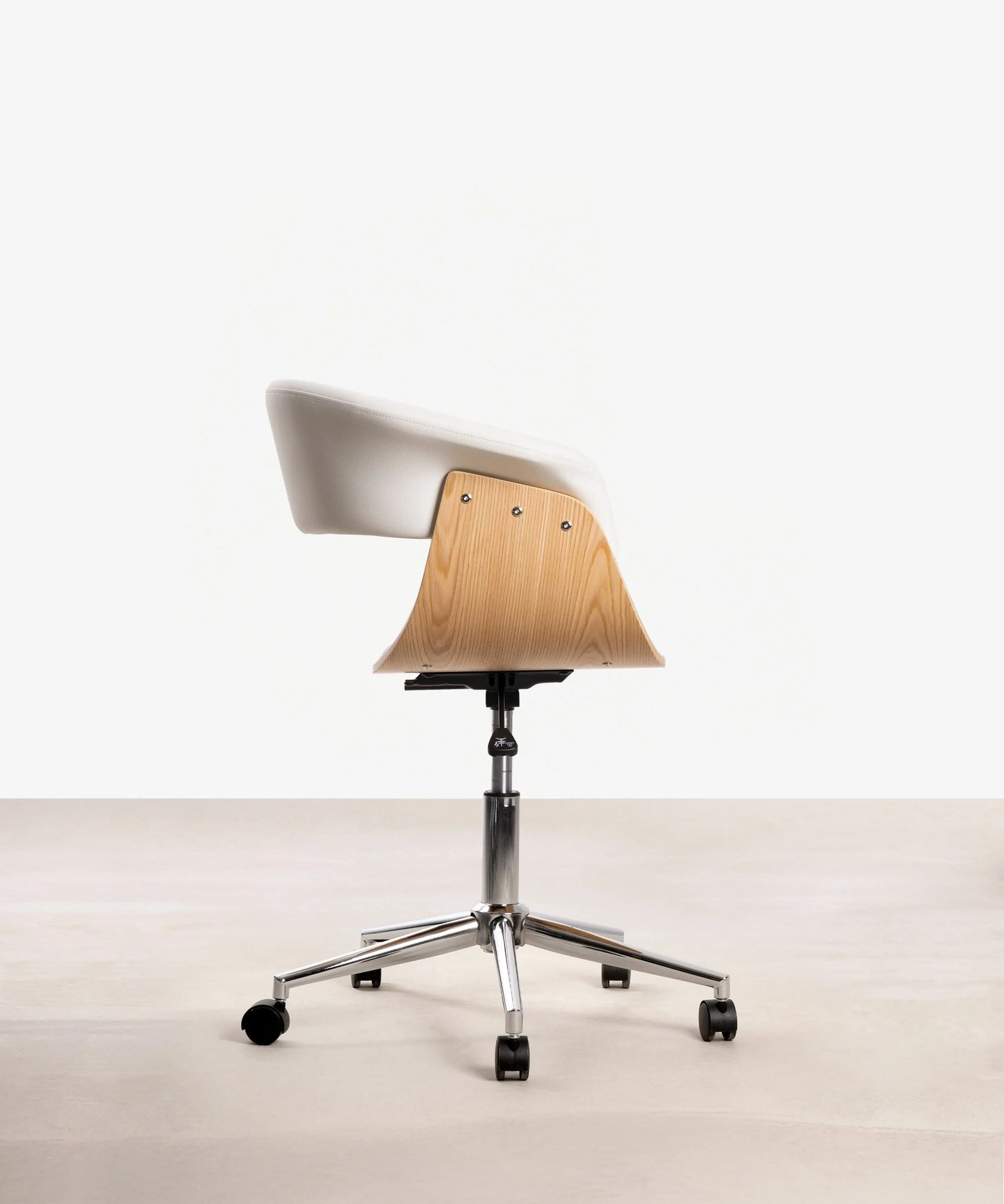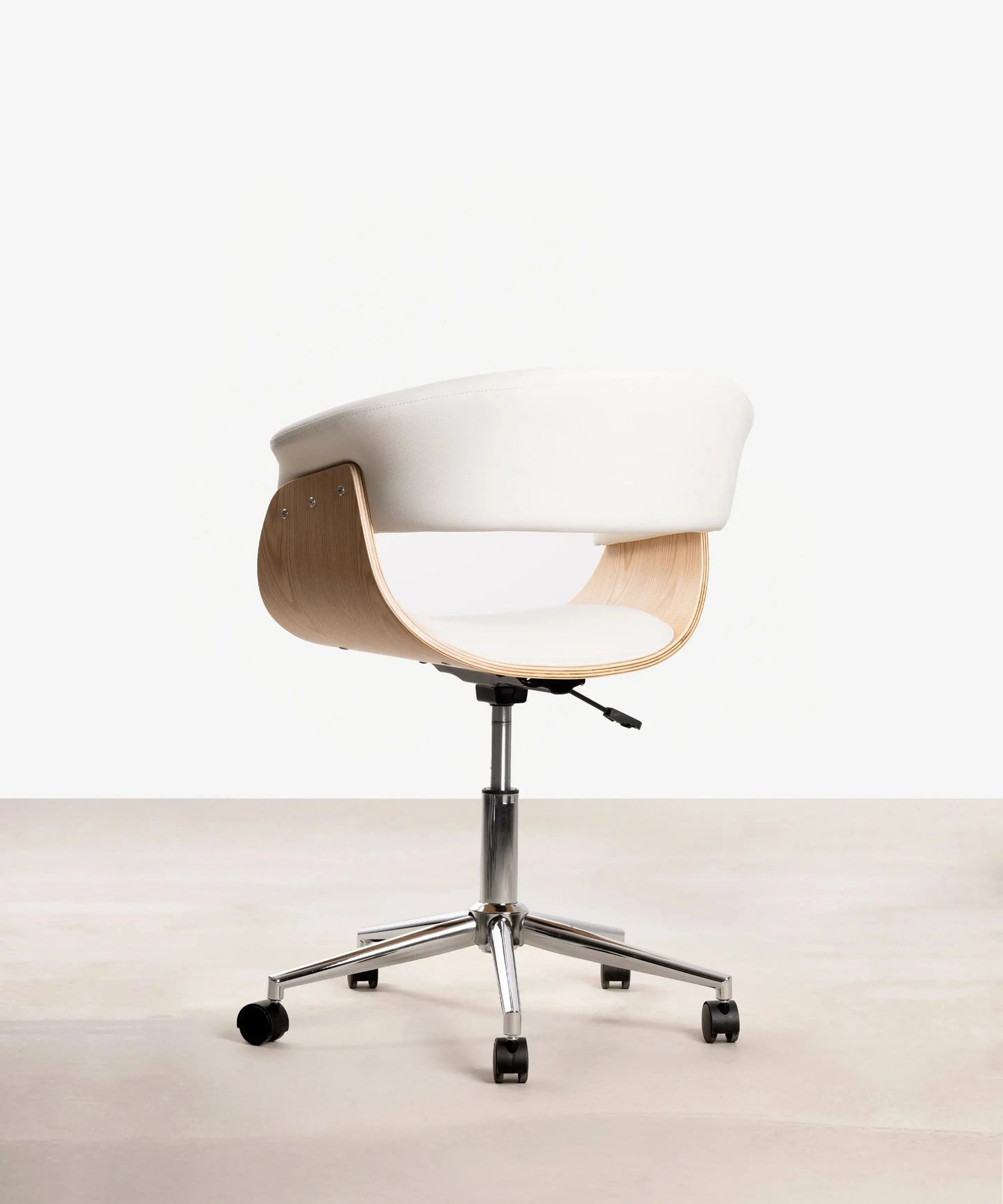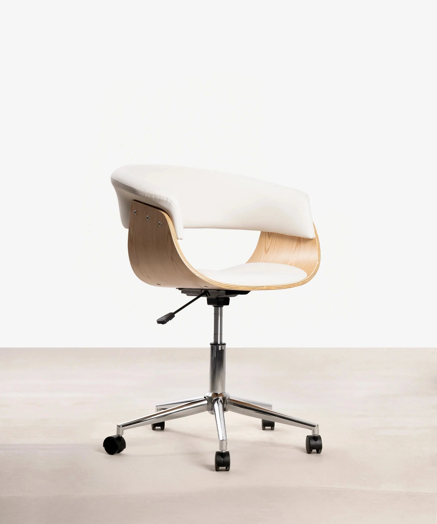 The Beckett Desk Chair consists of a natural wood structure whose visible grain gives it a warm and natural appearance. Its scandinavian and vintage style gives rise to atypical and sophisticated curves.