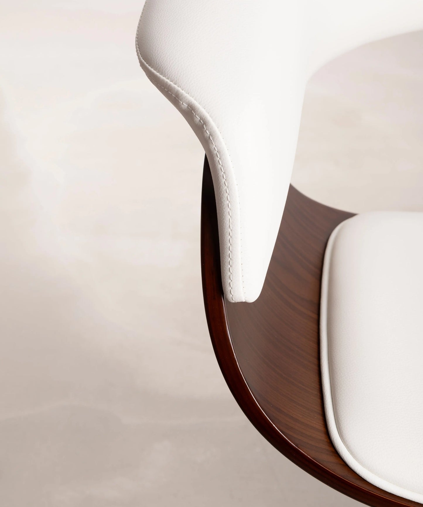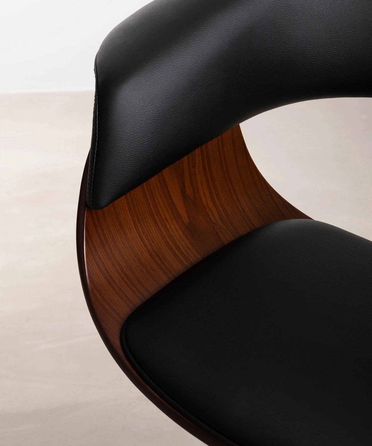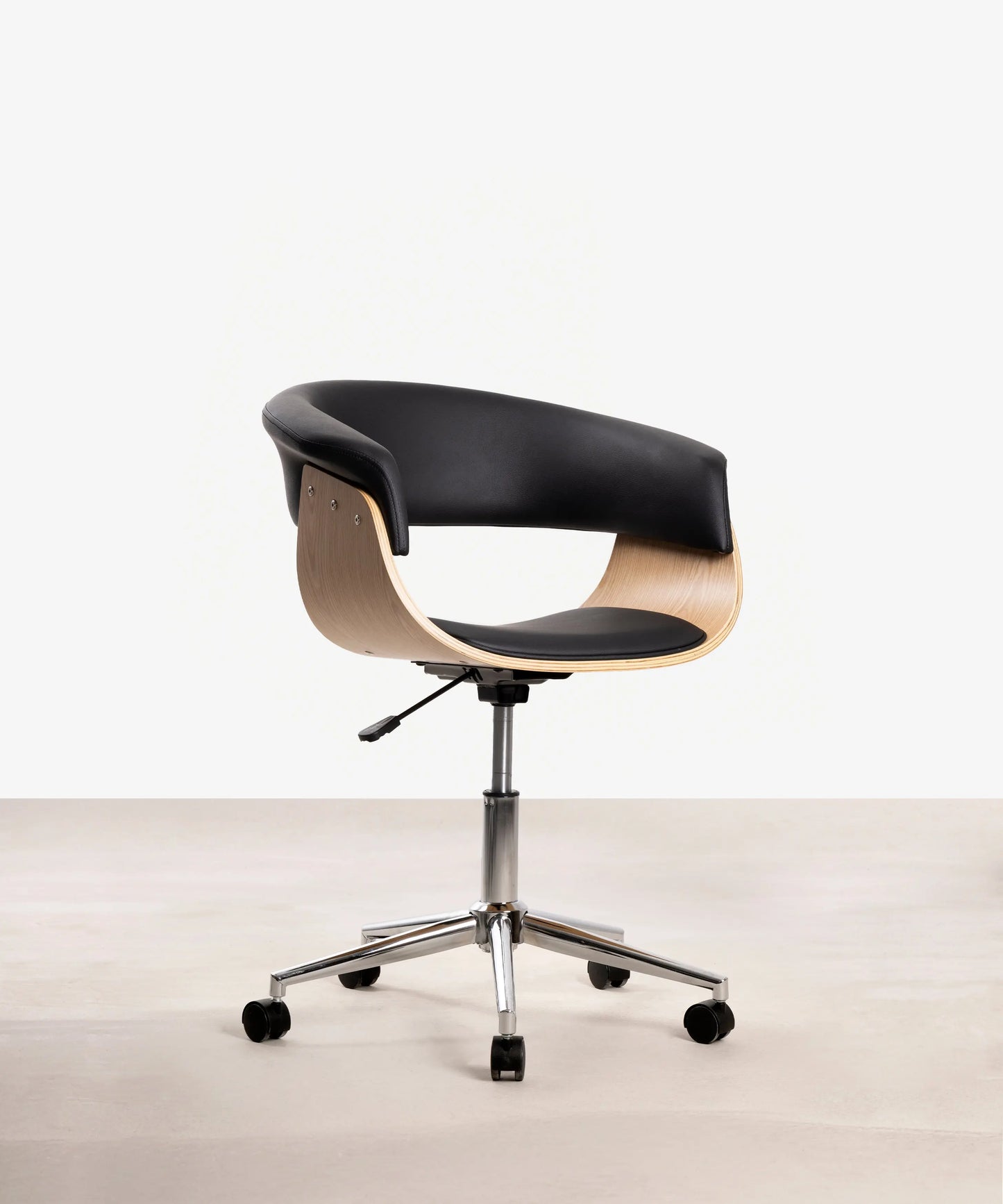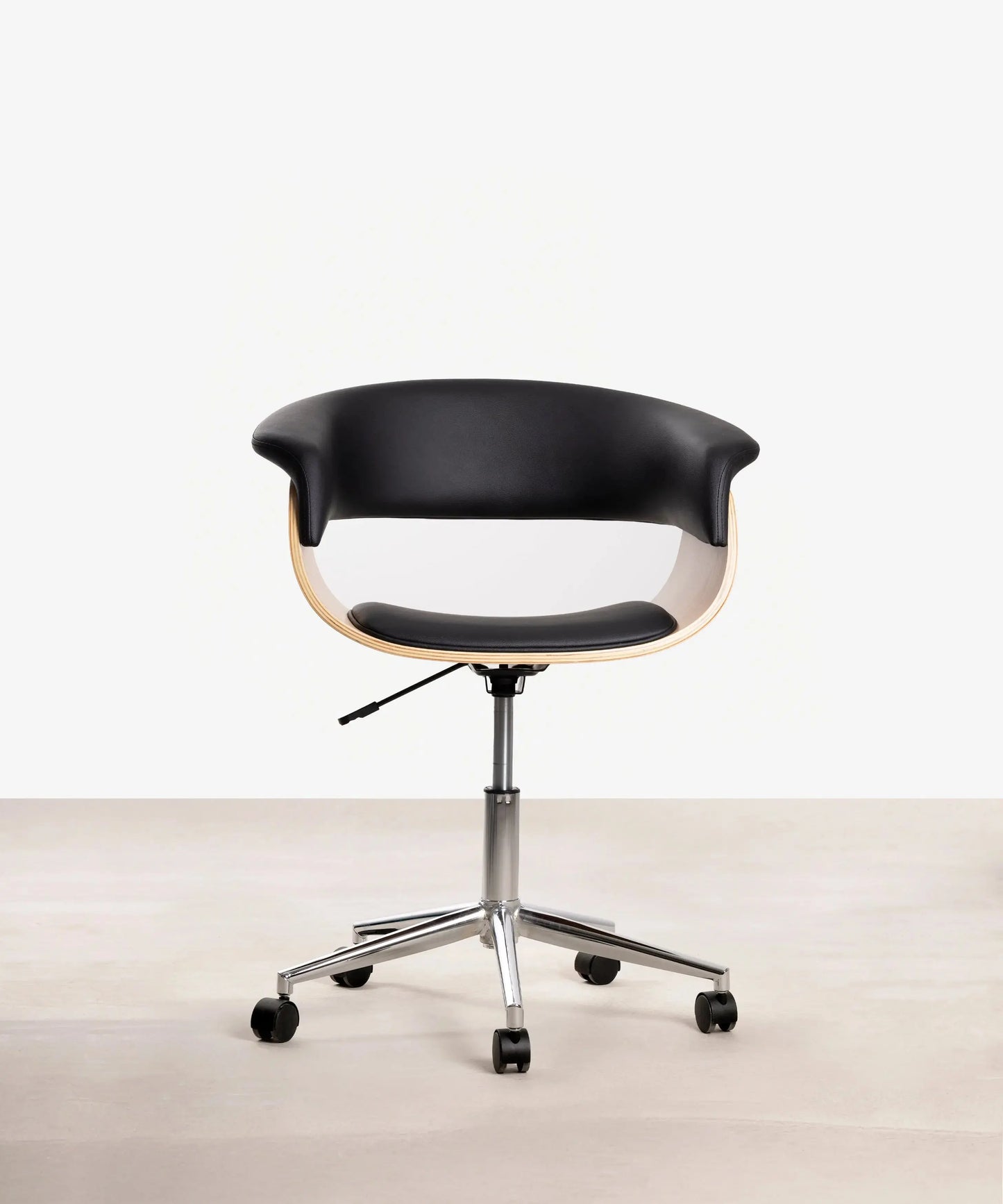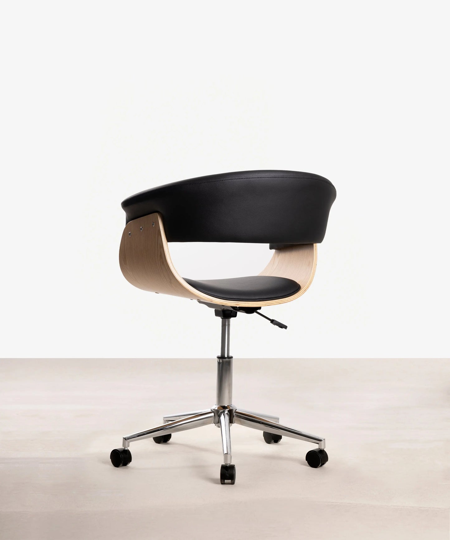 The Beckett Desk Chair consists of a natural wood structure whose visible grain gives it a warm and natural appearance. Its scandinavian and vintage style gives rise to atypical and sophisticated curves.