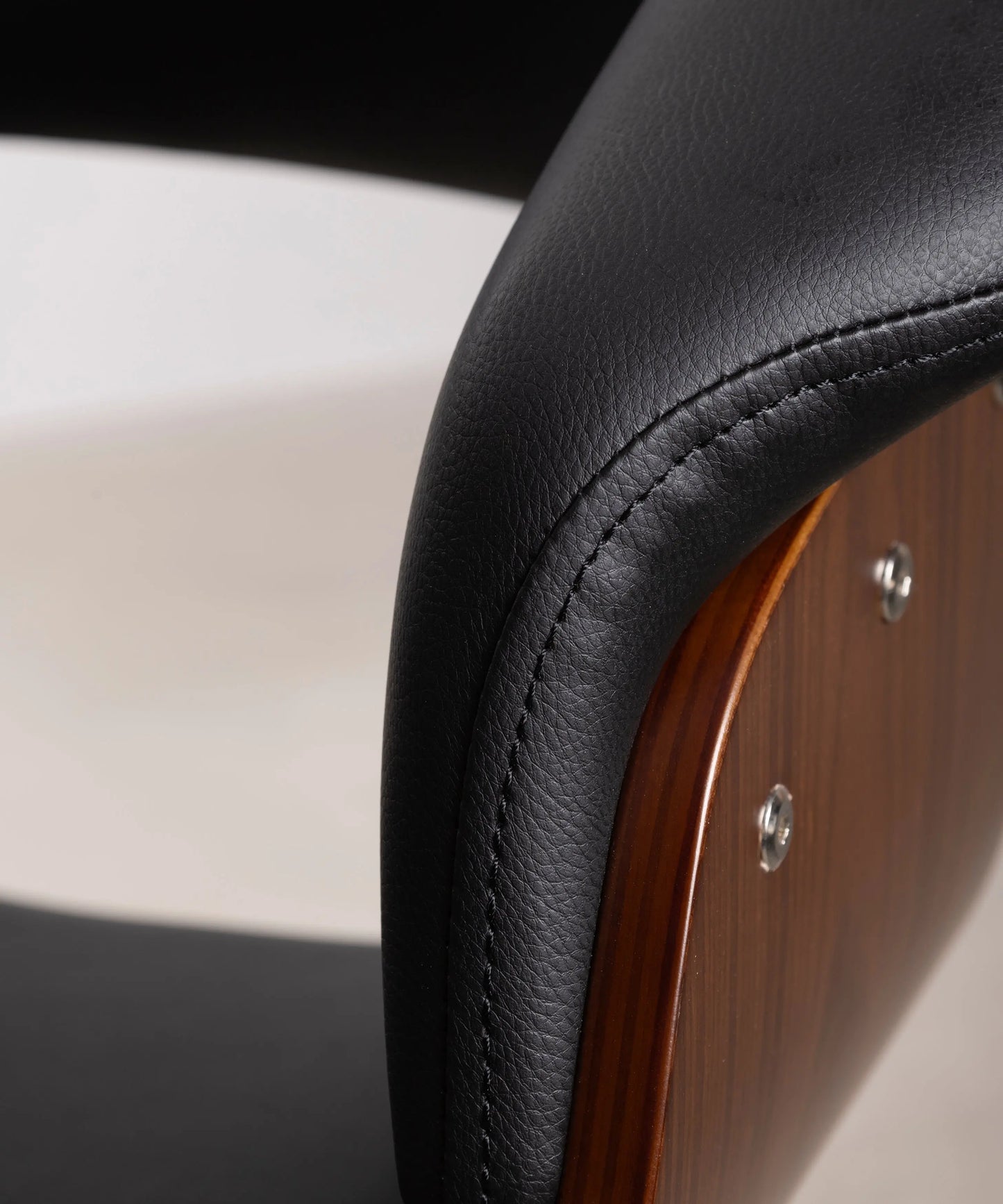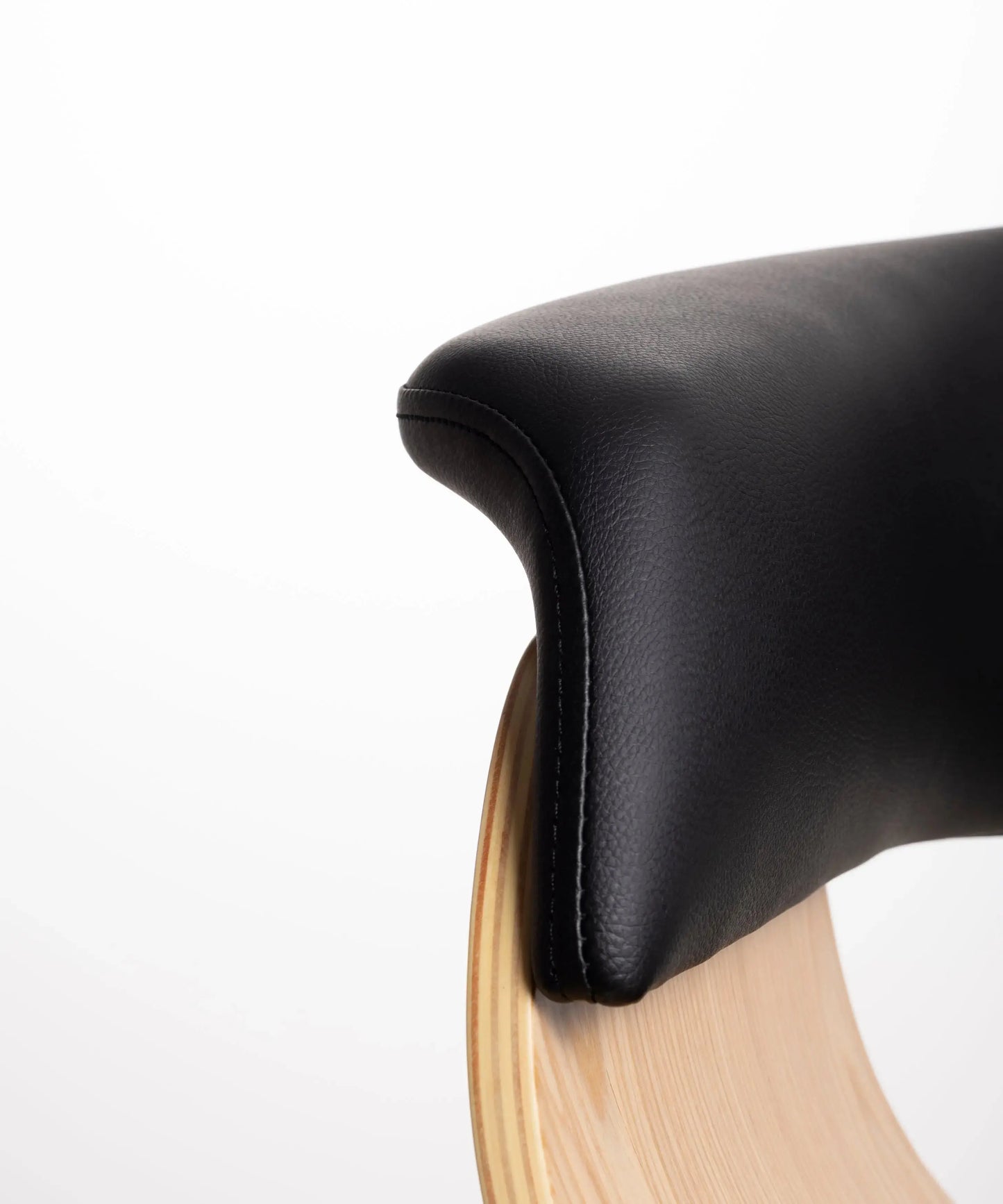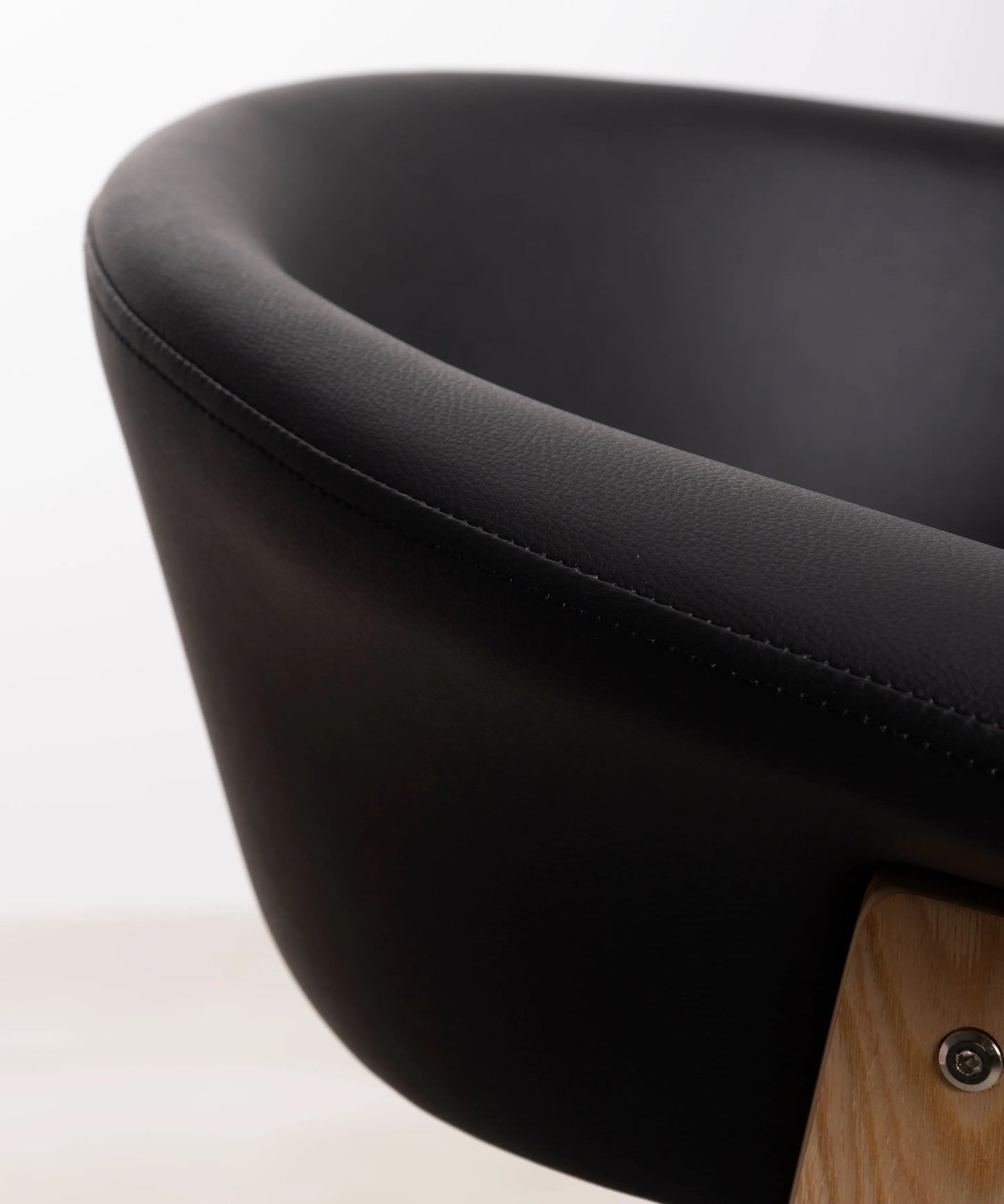 It is upholstered in high quality leatherette. Its padded seat and back offer great comfort.
