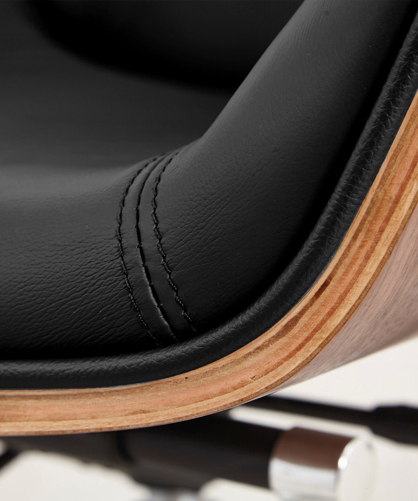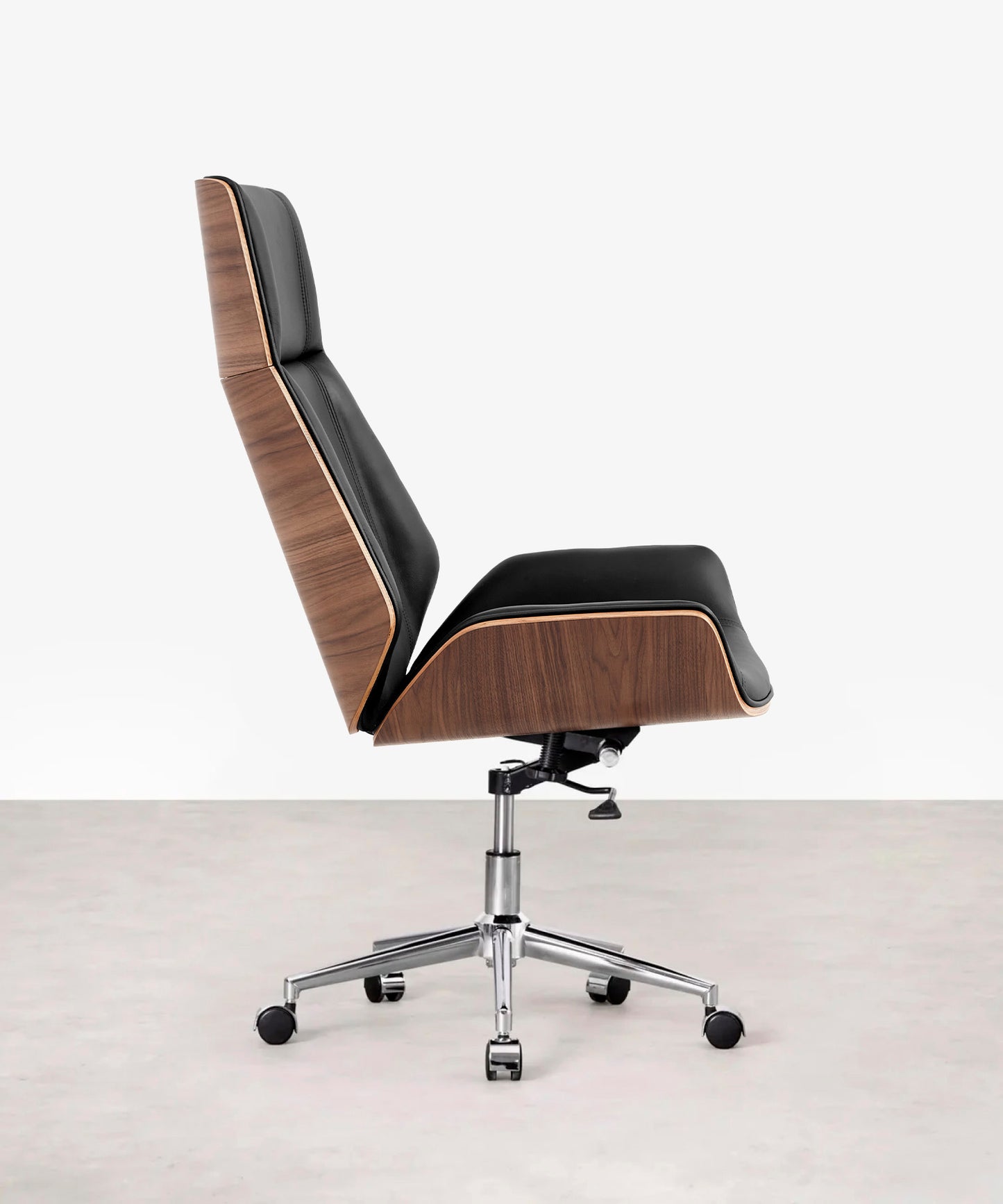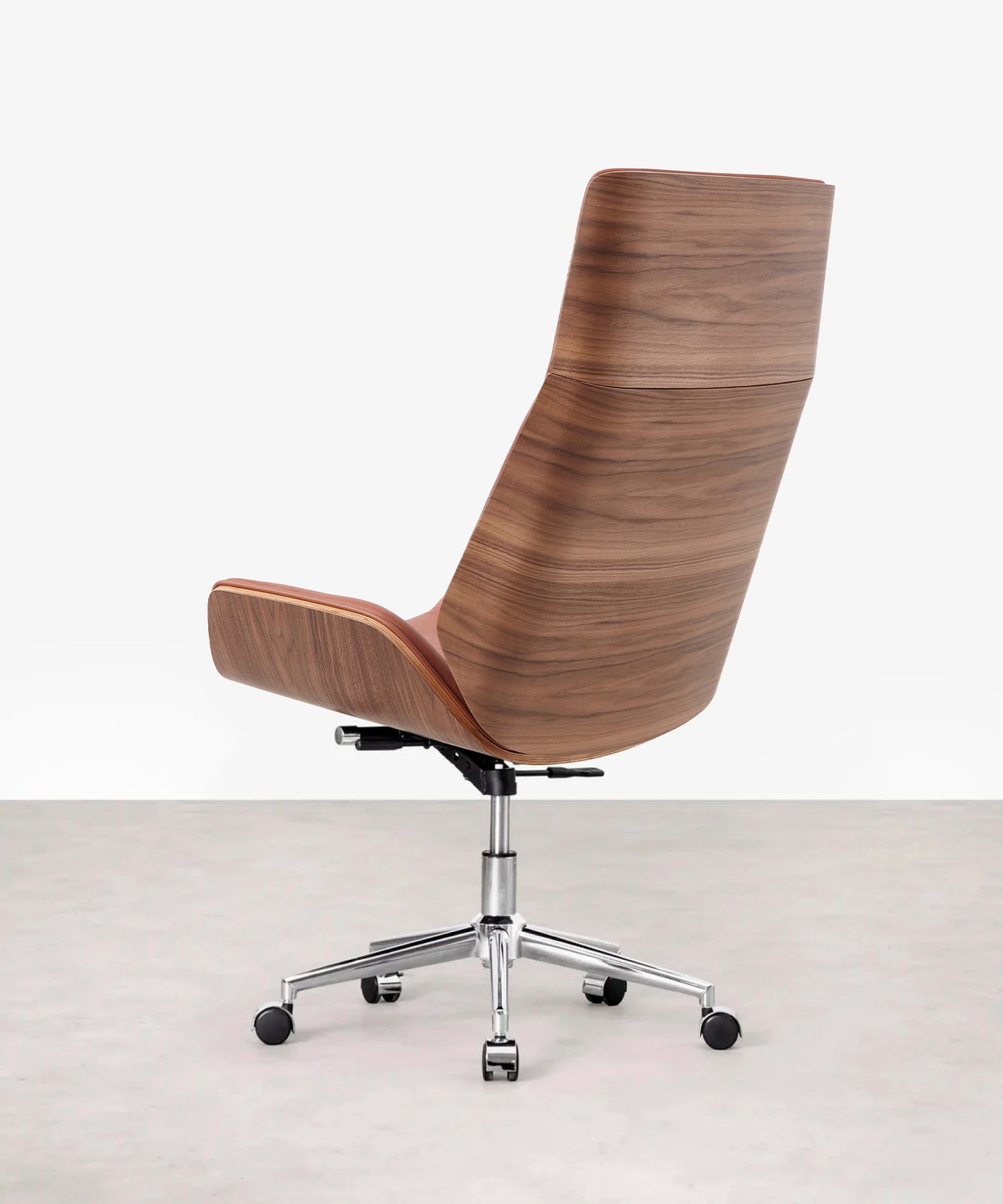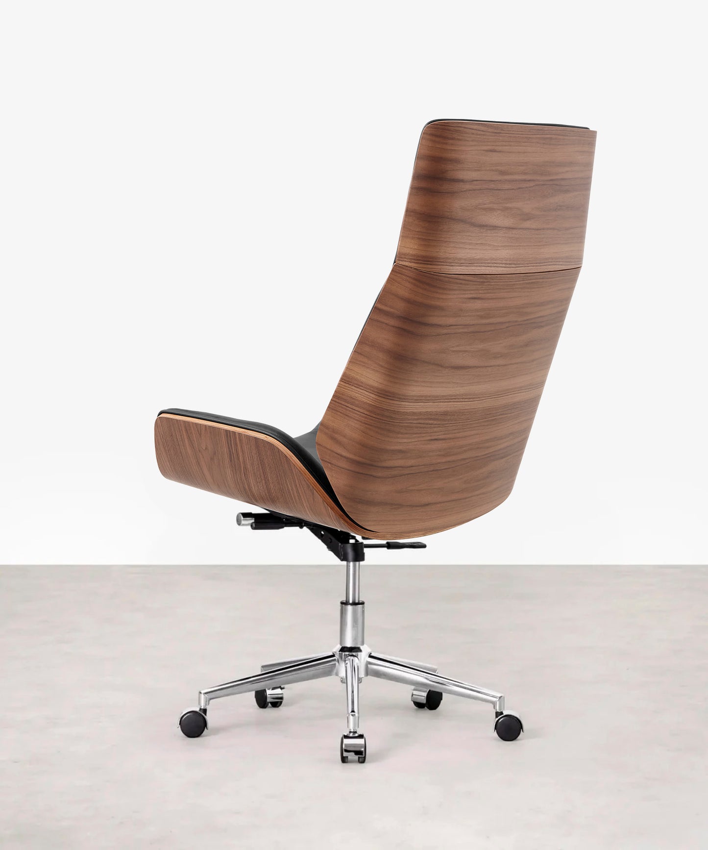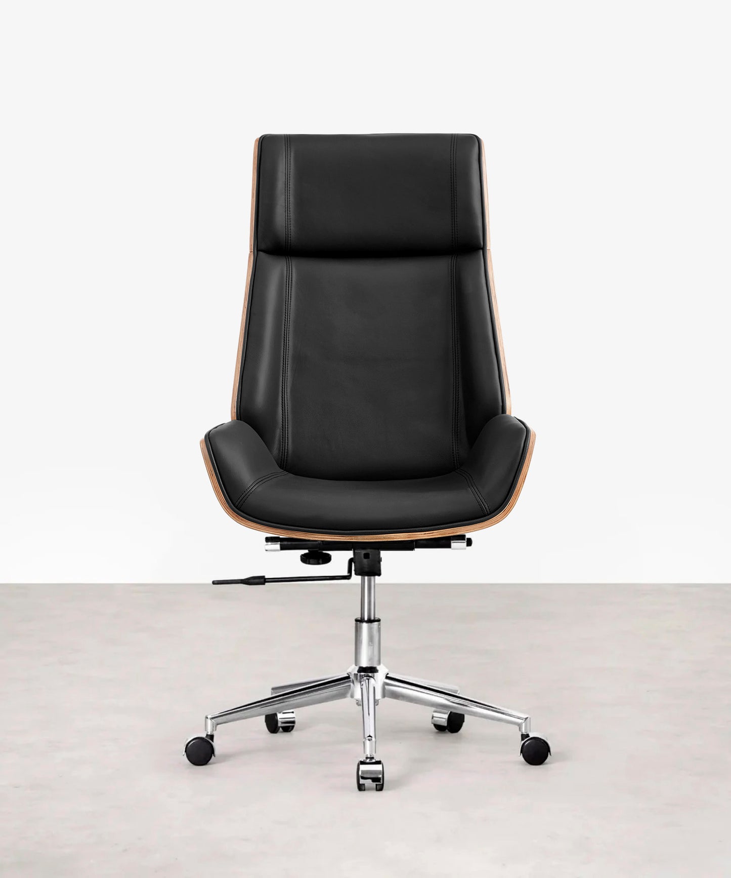 The chair’s structure is reinforced with a laminated wood frame. Its high backrest and padded seat provide comfortable, posture-friendly support, perfect for long workdays.