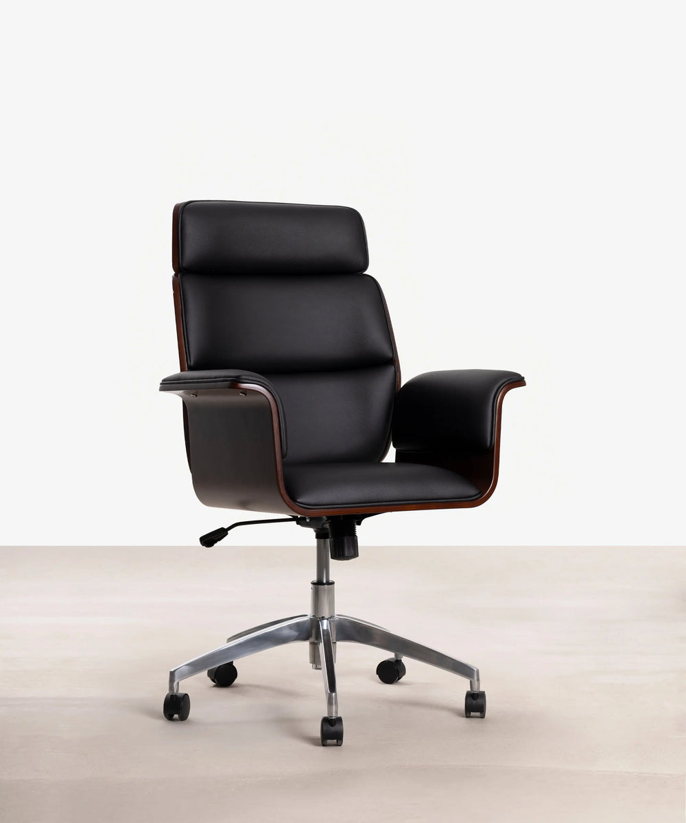 Faux Leather and Wood Desk Chair Shiro