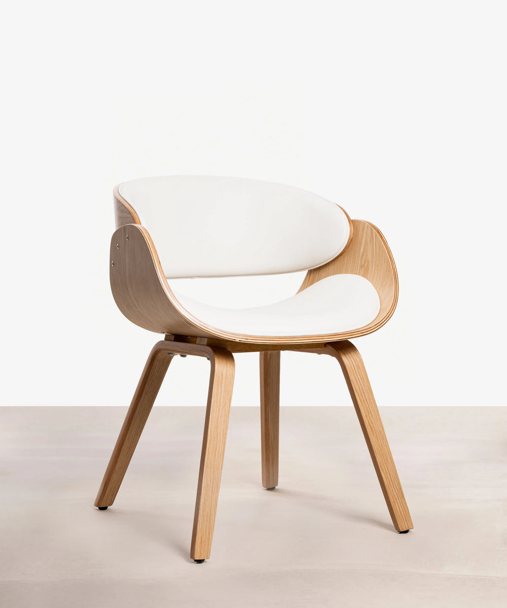 Consists of a wooden structure whose visible grain gives it a warmer and more natural appearance. A combination of Scandinavian and vintage style, with atypical curves and rivets on the back. You will definitely love it.